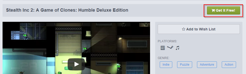 - Пройдите по ссылке Stealth Inc 2: A Game of Clones: Получить игру бесплатно .