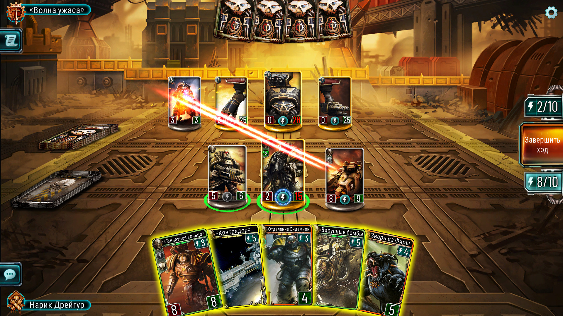 Жестокая карточная игра основанная на Warhammer: The Horus Heresy!. Погрузитесь в Эпоху Тьмы! Возьмите свой болтер, создайте непобедимую колоду и примите участие в гражданской войне, что погрузила Империю Человечества в смуту. Соберите все главные армии той эпохи, начиная с Легионов Космического Десанта и заканчивая войсками Марса и прислужниками Хаоса, каждая из которых обладает уникальными механиками и стилями ведения боя. На пути к Терре вы сразитесь в самых важных битвах Ереси Хоруса. От ваших действий будет зависеть то, в каком направлении будет развиваться игра, потому, готовьтесь творить историю!========================= Игровые механики =========================. ВЫБЕРИТЕ ИЗ БОЛЕЕ ЧЕМ 100 ЛЕГЕНДАРНЫХ КОМАНДИРОВ. Ваш командир находится в авангарде вашей армии. Примите на себя роль одного из десятков персонажей, каждый из которых обладает уникальными способностями, особыми картами и пафосными фразами. От вашего выбора будет зависеть стратегия и тактика будущей колоды. Останетесь ли вы верны и будете защищать Империум Человечества, или присоединитесь к силам Воителя? Выберите, на чьей стороне вы вступите в бой!СОЗДАЙТЕ СИЛЬНЕЙШУЮ КОЛОДУ ДЛЯ СВОЕЙ АРМИИ. Найдите себе любимую армию среди всех главных фракций Ереси Хоруса. Вас ждут 18 Легионов Астартес, Кустодес и Сёстры Безмолвия, сражающиеся за Империум, Рыцарские Дома и прочие слуги Омниссии, а так же Демоны Губительного шторма наряду с другими прислужниками Хаоса. Имея в распоряжении более 1300 превосходно нарисованных карт, у вас будут поистине безграничные возможности для фантазии!ОВЛАДЕЙТЕ В СОВЕРШЕНСТВЕ ГЛУБОКИМИ МЕХАНИКАМИ, ПРИВЯЗАННЫМИ К ИСТОРИИ КАЖДОЙ АРМИИ. Каждая армия обладает особыми чертами, олицетворяющими их уникальный подход к войне. От тщательно продуманных тактик Детей Императора, желающих сделать совершенный ход, до прямолинейного и кровавого подхода Пожирателей Миров, каждый матч — новая история. Найдите ту, что подходит вашему стилю!========================== Игровые режимы ==========================. РЕЙТИНГОВЫЙ РЕЖИМ: СМОЖЕТЕ ВЫ СТАТЬ МАГИСТРОМ ВОЙНЫ?. Побывайте на самых важных полях битвы Ереси Хоруса, начиная с Исствана и заканчивая Калтом. В итоге достигните Терры и сразитесь за то, чтобы стать Воителем! Докажите свою храбрость в ежемесячных сезонах дабы получить большое количество наград и эксклюзивные рубашки для карт, в знак своих заслуг.ОДНОПОЛЬЗОВАТЕЛЬСКИЕ КАМПАНИИ: УЗНАЙТЕ ИСТОРИЮ И ПОПОЛНИТЕ КОЛЛЕКЦИЮ. Примите участие в ключевых битвах Ереси, описанных в романах-бестселлерах, и проявите себя в важных стычках между Лоялистами и Предателями по всей галактике. Начните с колодой из 15 карт и встретьтесь с серией врагов, каждый из которых будет сильнее предыдущего. Разблокируйте новых командиров, карты и улучшения по ходу прохождения, прежде чем встретиться с эпичным последним боссом!РЕЖИМ ДРАФТА: ОГРАНИЧЕННЫЕ ПО ВРЕМЕНИ АРЕНЫ ОСНОВАННЫЕ НА ЗНАМЕНИТЫХ СРАЖЕНИЯХ ИЗ ИСТОРИИ. Проявите свои навыки сбора колод в ограниченных по времени сценариях основанных на важных битвах Ереси Хоруса. В каждом событии принимают участие разные командиры, некоторые из которых являются эксклюзивными для событий. Получайте индивидуальные награды и помогайте своей Ложе занять первое место в таблице лидеров события! Более того, ваши победы приносят очки или лоялистам, или предателям, в зависимости от того, за как