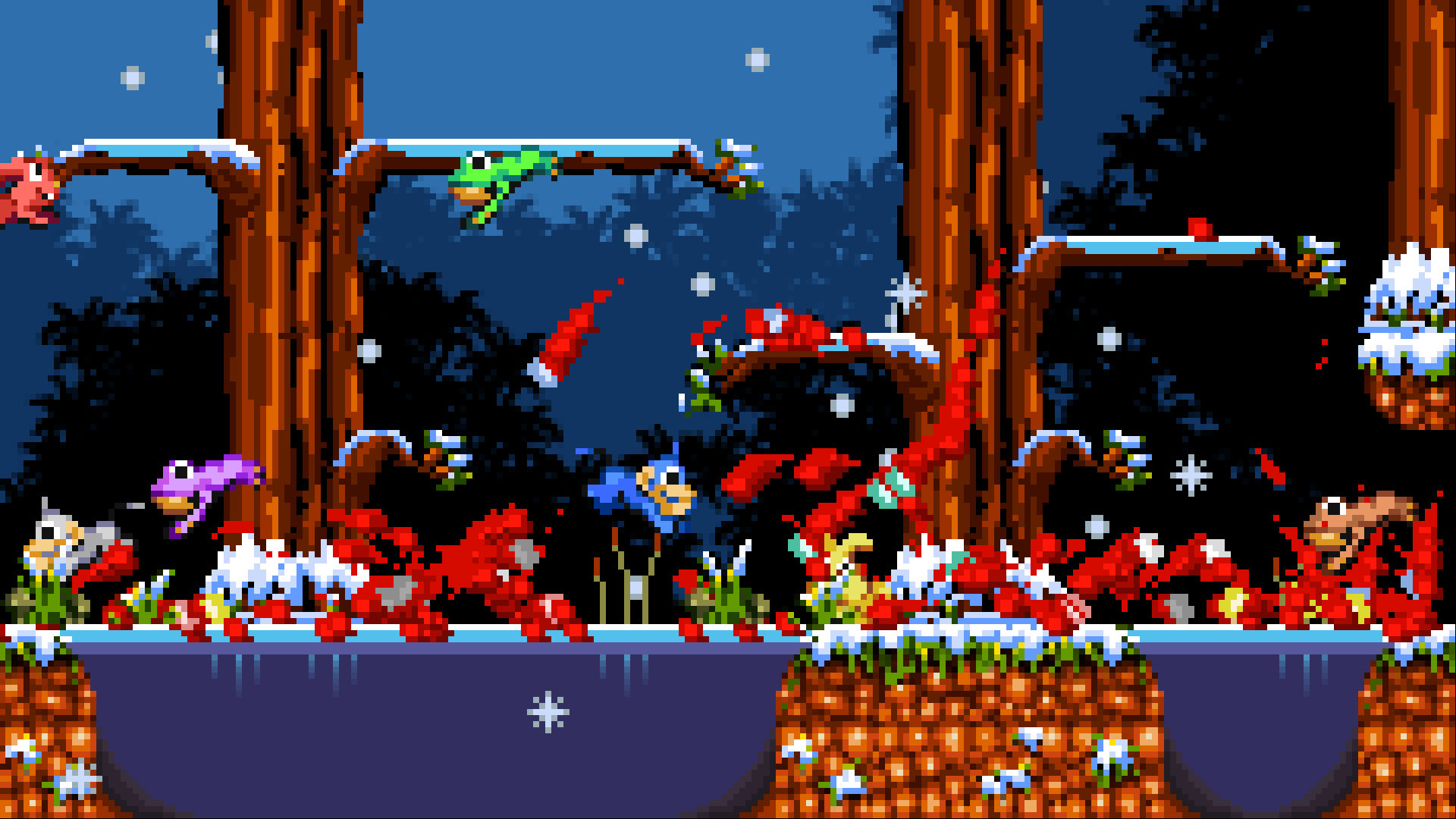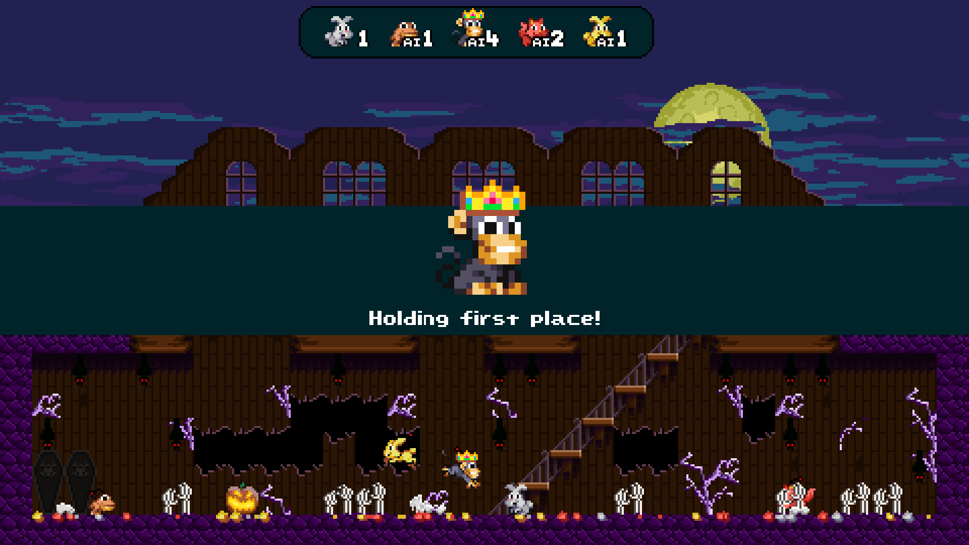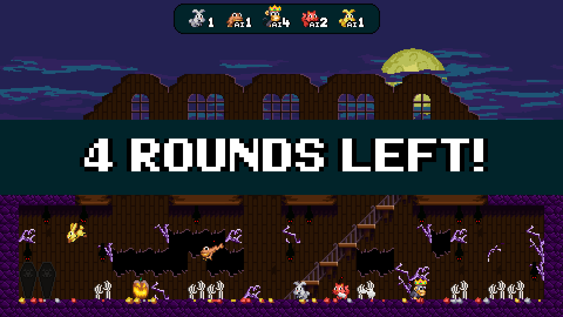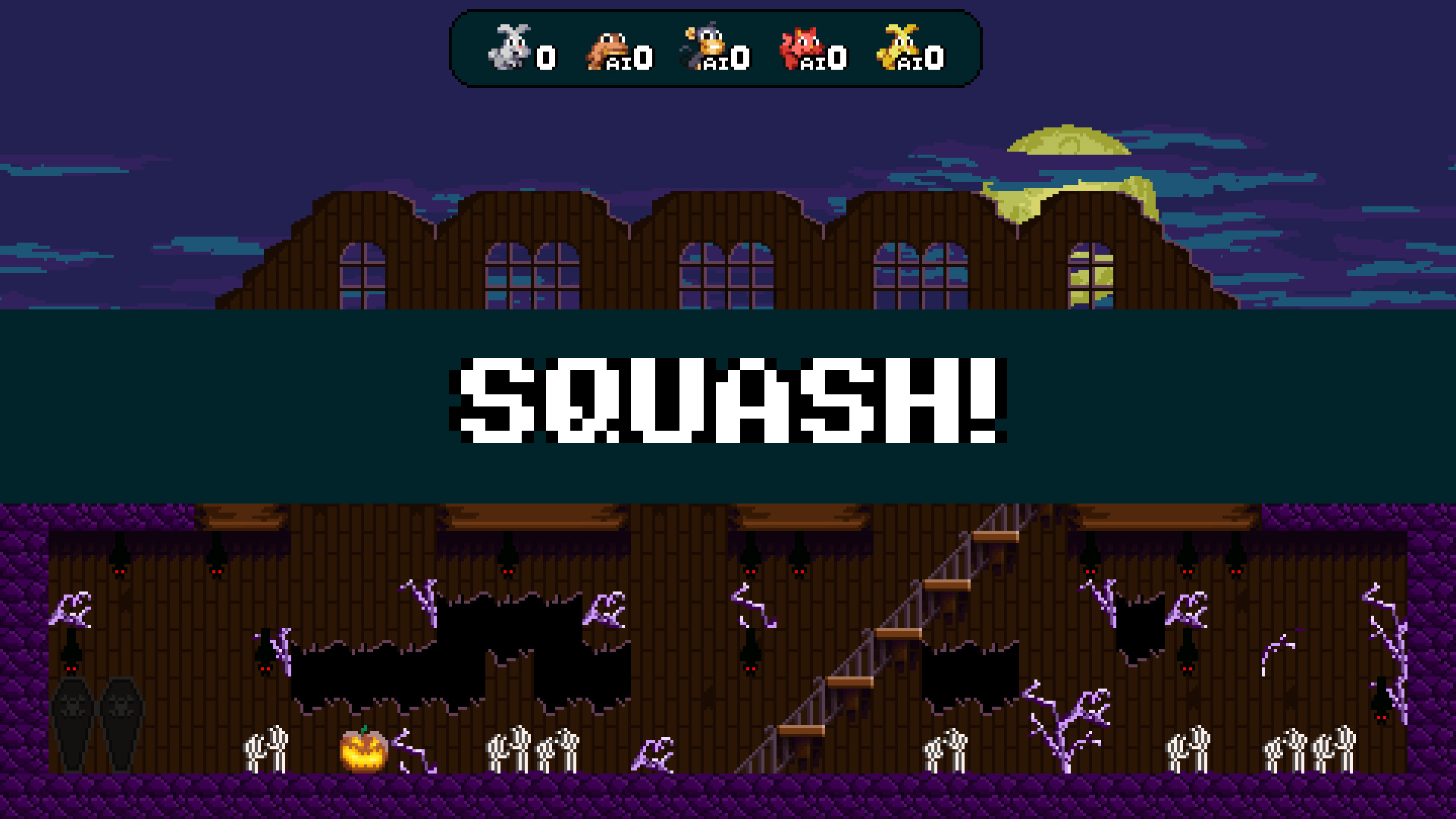 Overview. HopSquash! is a spiritual successor to the classic DOS game "Jump 'n Bump!" It's a simple little game for people of all ages to play together. Give a controller to a non-gamer friend and watch them get caught up in it! Just move and jump! Great for parties! And parents, you choose to have candy or confetti instead of blood, as this is a great game to play with the family too! Never run out of controller options - Mix and choose; keyboard adds 2 players, mouse adds 1 player, gamepads can add one player each, or can be split to add 2 players each! No settings, just grab a controller, and start pressing buttons to join in!(Permission was given by Andreas Brynervall, artist for Jump 'n Bump, to refer to HopSquash! as a spiritual successor to "Jump 'n Bump"!)Features. Full gamepad support, and up to 8 players local multiplayer! Including split gamepad mode with 2 players per gamepad, so 2 gamepads means 4 players; 4 gamepads means 8 players! Selectable animal characters, and 8 colours to customise them with 36 levels, with 6 themes (Meadows, Candy, Haunted House, Forest, Desert, Farm) Each round takes place over 5 randomly selected levels before the final results are shown (round duration and number of rounds are configurable)PARENTS! You can turn the blood off. If you'd like your kids to play (as has been requested several times) you can change the "Squash Mode" between Blood, Colours or Candy.Legacy version. HopSquash! went through a major overhaul where it was moved from the Godot engine to the Unity Engine, and more features were added. But the "Level Editor" and some other minor features were dropped. When you first start the game on Steam, you'll be asked to run HopSquash! (the current game) or HopSquash! Legacy.Legacy version is missing a lot of improvements, has less levels, and many frustrating things about the old levels have been fixed in the new version which are not present here.But the Legacy version contains a Level Editor, which didn't get ported across to the new version. NOTE: The Mac version doesn't support level editing in either version of the game.The Legacy version is also compatible with 4:3 monitors and custom arcade cabinets. Custom arcades cabinets use an IPAC which lets you convert button presses into keyboard key signals. By default, this game allows for 2 players on the keyboard, but by editing the settings.conf file and setting "keyboard_only=true" will add 2 extra players on the keyboard, controlled by the keys YHGJ and P;L'. You can bind these keys in your IPAC settings to your joysticks and buttons, which will allow you 4 players on your home made arcade cabinets. (Not enabled by default because having 4 players on an actual keyboard is not only impractical but will hit the simultaneous key press limit on standard keyboards.) What is Jump 'n Bump?. I love Jump 'n Bump, and I have recently thought that it's a shame it's locked away in its DOS form and is limited to only using 1 gamepad. And as good as that original level is, wouldn't it be cool if there were more levels? And more players possible? And a built in level editor so that pretty much anyone can get in and start making levels without having to learn Photoshop etc? So I set out to make an expanded version, going full time into game development.This was to be called "Super Jump 'n Bump". I got in touch with one of the original creators, Andreas Brynervall (artist) and his only requirement for me to sell this commercially is to not use the original name or assets, and I can refer to the new game as a "spiritual successor". So now we have HopSquash! Далее