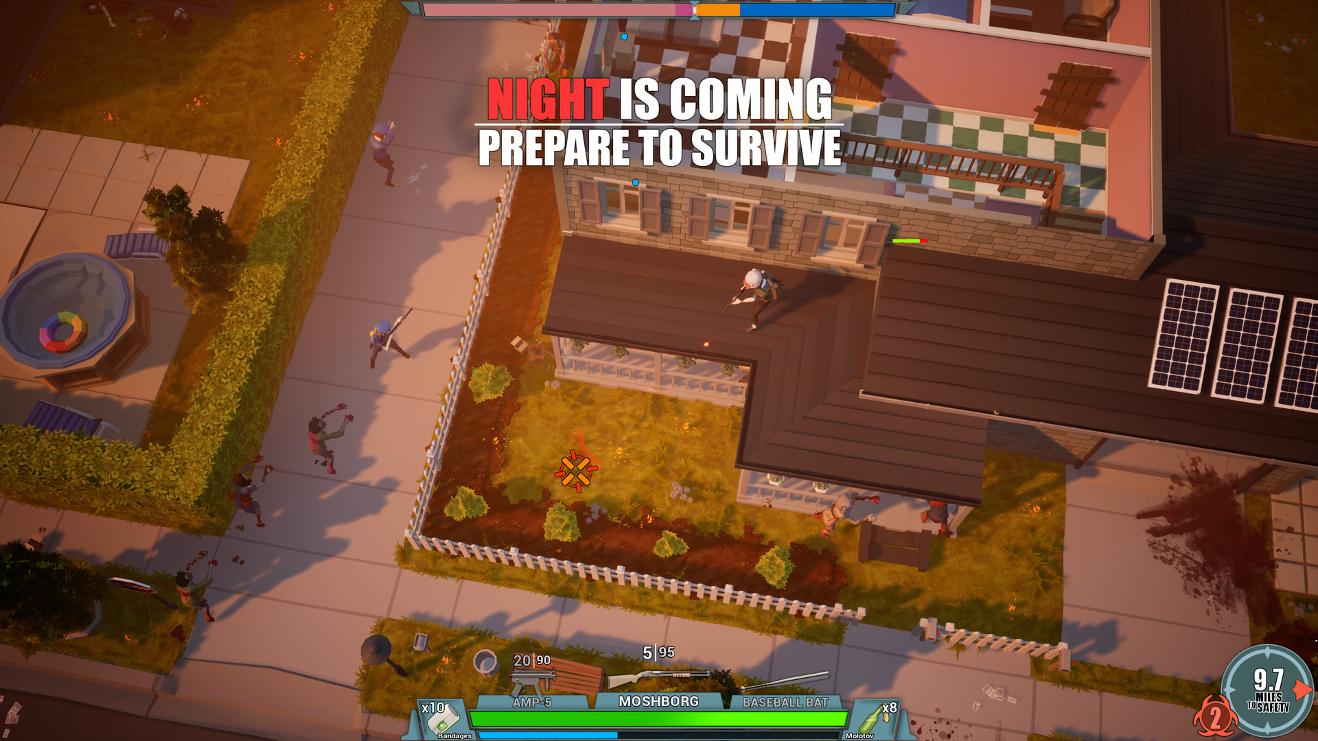 The Apocalypse has arrived and your goal is simple: Make it 10 miles to safety through a limitless procedurally-generated world overrun with The Infected and packed with the tools and weapons to fight them.10 Miles to Safety is a unique isometric action/strategy game where 1-4 players must explore, loot, craft and build to survive, all the while trying to make their way through a giant randomly-generated world towards ultimate rescue and escape. As you move nearer your goal you'll find the infected slowly evolving and becoming more dangerous, but also find more powerful weapons, gear, blueprints and crafting recipes to aid you.LOOT DURING THE DAY. The world is full of the tools you'll need to survive: Loot every house, shop and vehicle you find to scavenge weapons, materials, ammo, blueprints & recipes.TRY TO SURVIVE THE NIGHT. More dangerous creatures hunt in the darkness: Stay in the light and construct barricades, traps & crafted gadgets to make it through the night.SET YOUR OWN PACE. Advance towards rescue and the infected grow endlessly more lethal. But range far and wide - or even retreat - to upgrade your weapons and gear & stock up on resources before moving ever onwards.OVER 20 UNIQUE WEAPONS. Take the fight to the infected using Shotguns, Assault rifles, Grenade Launchers, Flamethrowers, Katanas & more - many upgradeable with attachments hidden throughout the world.1-4 PLAYER CO-OP. You are not alone: Up to 3 friends can drop in at any time to aid you on your journey - though be warned that the world will become more lethal with every additional survivor in your group.EVENTS AND MISSIONS. On your journey you'll come across survivors to save and infected to kill in special events and missions. Completing these risky trials rewards you with bonus gear, blueprints or even AI companions who'll fight by your side.CHOOSE YOUR CHARACTER. Choose from one of five starting characters - each with distinct advantages leading to wildly different ways of playing the game - and unlock more by completing challenges and achievements. Далее