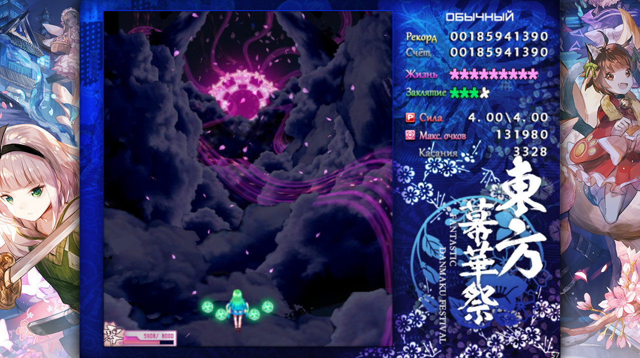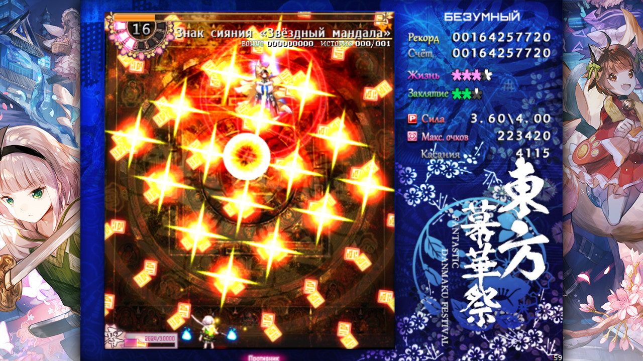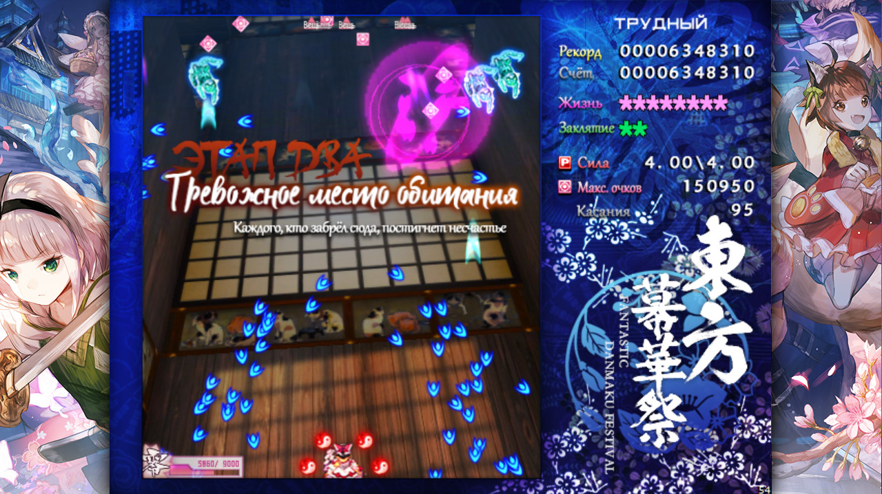 “Touhou Makuka Sai ~ Fantastic Danmaku Festival partⅢ” уже на подходе! Touhou Makuka Sai ~ Fantastic Danmaku Festival part II — это стрелялка-даммаку. Во второй части Touhou Makuka Sai феномен повторения инцидентов возникает снова. Смогут ли девушки, отправившиеся в Мир мёртвых, разгадать тайну в этот раз?★УПРАВЛЕНИЕ С КЛАВИАТУРЫ. →←↑↓ ПередвижениеZ Стрельба/ПринятьX Карта заклятия(Бомба)/ОтменитьShift ФокусированиеEsc Пауза★УПРАВЛЕНИЕ С ГЕЙМПАДА. Пожалуйста, отключите Steam Input, чтобы избежать невозможности активирования родной поддержки контроллера!Поддерживаются контроллеры Xbox 360, Xbox One и PlayStation 4. Вы можете выбрать настройки по умолчанию в конфигурационном окне лаунчера игры. Также поддерживается большинство других контроллеров, но если Вы потеряете управление, нужно будет настроить порог стика в конфигурации контроллера. ★ПРЕДЫСТОРИЯ. Миновал месяц весны…Внезапно налетела невиданная метель, окутав весь Генсокё холодом, ещё более пущим, чем зимой. Не прошло много времени, как ёкаи забеспокоились, в то время как метель застилала солнце.«Так похоже… Это же не совпадение, правда?»Жрица из храма, ведьма из леса да ветряная жрица собрались вместе для того, чтобы снова исследовать инцидент. Все они о чём-то догадываются, но их сердца полны сомнений и беспокойств.Чтобы разгадать тайну перед тем, как всё не стало хуже, они решили найти корень инцидента, даже будучи под свирепой метелью.★ДИЗАЙН НОВОГО ПЕРСОНАЖА. ○Белоснежный скиталец修普ГипРаса: не известнаСпособность: усыпляет людейПарящий в снежном небе таинственный белоснежный совоподобный ёкай, обёрнутый огромными белыми крыльями. Его защитный окрас замаскирован под снег, поэтому его трудно обнаружить. Выпадающие из подушки перья превращаются в снег, что немного повлияло на усиление снежной бури в Генсокё.Этот ёкай утверждает, что появился в снежную ночь для того, чтобы добыть еды, но тем не менее он настолько ленивый, что может уснуть прямо во время боя. Похоже, что его сила не особо велика.○Сладкая и ароматная фея莉莉·怀特Лили УайтРаса: феяСпособность: предзнаменует приход весныУ входа в Мир мёртвых она устраивает приём гостей, прибывающих на фестиваль, и по этой причине она сильно нарядилась.Она слегка потеряла разум из-за силы неизвестного происхождения и поэтому атакует любого, кто пришёл без приглашения, используя новоприобретённые способности, полученные этой силой. ★О ЁМУ КОМПАКУ. В, казалось бы, обычный день Хакугёкуро, Ююко выдала необычное поручение для Ёму — отправиться в деревню людей за покупками. «Вы знаете, сколько времени мне понадобиться, чтобы достичь деревни?» — жаловалась она, но осознав, что не может перечить Ююко, ушла, не проронив ни слова. Однако, когда Ёму достигла земли, аномальная снежная буря шокировала её.После расспросов группы дровосеков, пришедших в заснеженные горы за древесиной, она окончательно поняла, что на земле сейчас действительно стоит весна.Все магазины оказались закрыты, что окончательно разрушила планы Ёму по закупкам, но что ещё хуже — бесчисленные ёкаи Генсокё разбушевались под снежной бурей… ★ОСОБЕННОСТИ ИГРЫ. — Знакомый сюжет, но с совершенно новой историей; — Красивые и сложные уровни и даммаку, приносящий Вам новый визуальный опыт, отличный от традиционных скролл-шутеров; — Продолжение серии спустя 5 лет, бросающее мощный вызов ограничениям даммаку. Далее