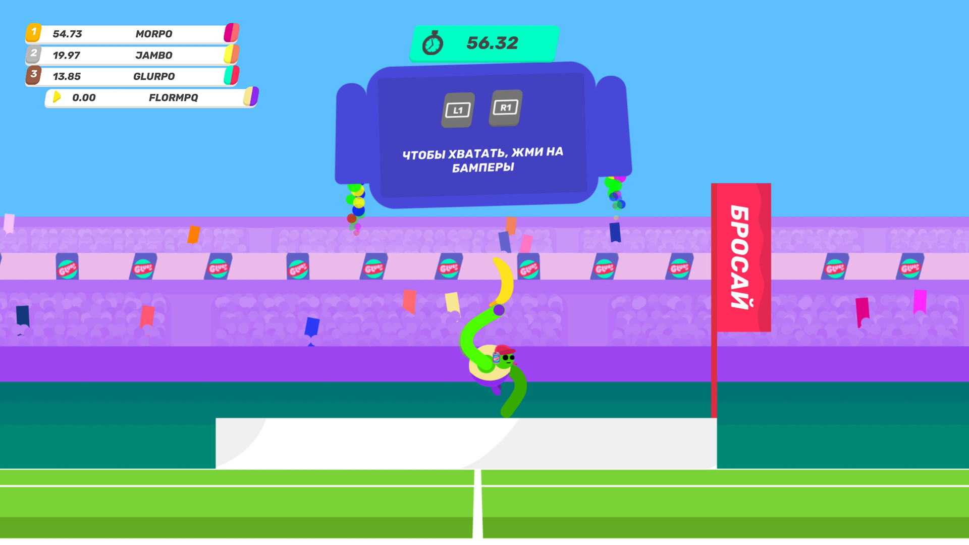 Игра для всей тусовки, приправленная зелёной бурдой под названием GlurpDrink More Glurp — это недоспорт с недофизикой для игры по очереди вместе с друзьями. Где-то в далеком-далеком мире инопланетяне слямзили наши Олимпийские игры. Только вот всё у них пошло наперекосяк..Обсмотревшись прямых трансляций по телеку, инопланетяне вдруг решили, что самая важная часть любого соревнования — это реклама. Поэтому спонсоры будут случайным образом контролировать соревнования и подстраивать их под свою программу, проводя эпичнейшие галактические летние игры.Играй вместе с друзьями. Бегай, прыгай, метай снаряды в улётных соревнованиях, при этом с тобой может состязаться до 20 игроков в локальном групповом режиме! Брось себе вызов в одиночном режиме или выбейся в лидеры в серии испытаний. Смотри на повторах, как упражняются твои друзья, или оттачивай свое атлетическое мастерство ради новых рекордов.Сплошная годнота!. Игру можно проходить повторно сколько угодно раз, ведь в ней почти бесконечное количество комбинации событий и спонсоров. Только привыкнешь к событию — а тебя уже руки-лазеры!Это я! Посмотрите на меня!. Болельщики будут стоять на ушах — всплеск эмоций гарантирован! Состязания не останавливаются никогда, ведь прямо во время игры можно добавлять игроков и убирать их или даже переносить ход. Всё что надо для игры — это контроллер.Будь на стиле. Каждая рука атлета управляется по отдельности с помощью джойстиков. Каждой рукой можно хвататься.. ну и всё. Покажи всем свой неповторимый стиль игры и уникальную технику.Особенности: Локальный групповой режим, где может участвовать от 2 до 20 игроковТысячи возможных комбинаций событий и спонсоровКаждый раз новое соревнование!Одиночный режим испытания с таблицами лидеров онлайн и повторами.Безбашенная физика.ЕЩЕ БОЛЬШЕ зеленой бурды!А теперь слово нашему спонсору. МАКСИМУМ ЦВЕТА, НОЛЬ ВКУСА DRINK MORE GLURP Никогда еще бурда не была такой полезной, как в игре Drink More Glurp. Ведь лучший допинг для атлета — зеленая бурда. Зеленая бурда: максимум цвета, ноль вкуса!*******************PC Gamer“The soundtrack of Drink More Glurp is the hoots and gasps of your friends, and when someone figures out a new trick, or overcomes the seemingly impossible, the mood is absolutely electric.”EDGE magazine“We can see this becoming a party favourite” “The sponsorship structure is a stroke of brilliance.”RockPaperShotgun“When I won a round, I chugged my whole can of glurp and loosed a dreadful, ululating bellow like a wookie”Kotaku UK“Simple concepts matched with a constantly changing rulebook make this an outstanding party game.” Далее