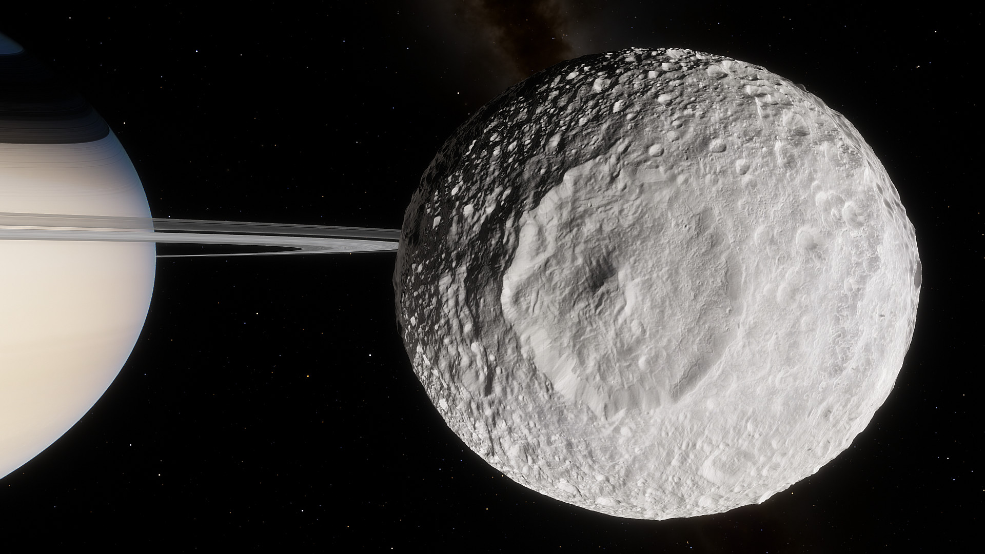 This Saturn System HD DLC (addon) contains high-resolution textures for Saturn and its major satellites - Mimas, Enceladus, Tethys, Dione, Rhea, Titan, Hyperion and Iapetus. It improves the level of detail of these objects compared to the default SpaceEngine installation, and replaces their default low-quality JPEG textures with high-quality PNG ones.Credits:Saturn texture: Solar System ScopeTitan texture: Ian Regan (infrared global map, radar polar regions close-ups), merged by retro-visorOther satellites: NASA Cassini 2014 data release, with processing by John van Vliet, Robert Skuridin "PBC" and Vladimir Romanyuk "SpaceEngineer"Satellite elevation maps (artwork): "Kexitt", Vladimir Romanyuk "SpaceEngineer", and Tristan Audam "Voekoevaka"Source data:Icy satellites albedo maps: NASA Cassini 2014 data releaseImage resolution: 8192x4096 (Mimas), 16384x8192 (Enceladus, Tethys, Dione, Rhea, Iapetus)Effective resolution: 0.15 km/pix (Mimas), 0.1 km/pix (Enceladus), 0.2 km/pix (Tethys, Dione), 0.3 km/pix (Rhea, Iapetus)Titan infrared albedo map and radar close-ups: CassiniImage resolution: 35953x17958 (reduced to 32768x16384)Effective resolution: 0.45 km/pix (reduced to 0.49 km/pix)Hyperion albedo map: CassiniImage resolution: 2048x1024Effective resolution: 0.83 km/pix Далее