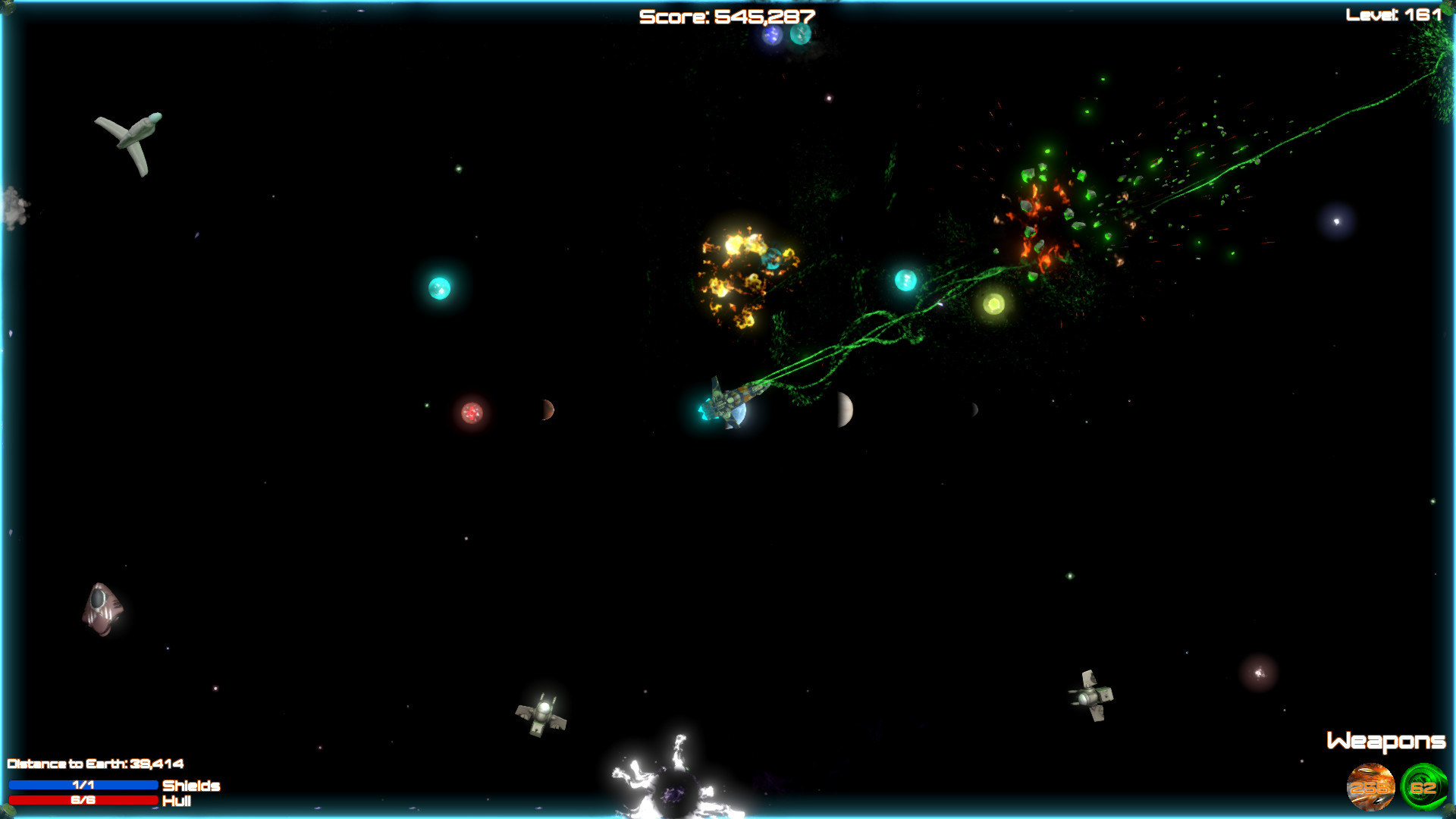 Overview. The shoot 'em up / bullet hell game you will have fun playing!Are you gonna shoot? YES!Are you gonna blast? YES!Are you gonna make a big bang? YES!Are you gonna make a big boom? YES!So what do you get? Shooting Blaster Big Bang Boom!A shoot 'em up / bullet hell game you can play (maybe want or even need to play!) when you got nothing better to do, you're just bored and want to kill time, or you're waiting for something special.. like Mass Effect 10 or Baldur's Gate 9, or maybe just the booming party you'll have tonight.This game is meant to be relaxing and easy going with a nice collection of soft music included. There's also a rock soundtrack if you'd like to dive into a more upbeat tune. Get to your ship and blast those aliens out of the sky.. or space!One other thing.. you can ram your enemies! They'll be a lot more affected than you will be!Enjoy this fun little take on a good ol' arcade game of a not-so-distant era..! Shmup it up!Gameplay. Planet Earth has been conquered by alien invaders! Your mission is to reach your home and reclaim it for the human race. Beware! The alien force is numerous, and survival will be a difficult task. Good luck, pilot! The fate of the human species rests in your capable hands.Features. HD graphics shmup that can be played on almost any computer Attractive ships, weapons and explosions animations 200 levels of addictive fun gameplay Many types of enemies and power-ups Ram your enemies if you're out of options Ship unlockable progression Custom difficulty level Full controller support Steam achievements, stats and leaderboards Steam cloud support Manual available for consultationPlayability. This game is for PCs of any caliber, new or rusty. Please see the FPS table below to get a sense of gameplay smoothness you may experience.FPS TableNote 1:All settings that can drain FPS have been turned on: Anti-aliasing, Bloom, Sun; the most GFX expensive weapons were used as soon as made available (Missiles, Rail Gun, Phaser). This means there is a good chance you will get higher FPS on your machine, and a smaller chance you will get lower FPS, depending on gameplay luck, and of course player weapon preference.Note 2:No hardware has been overclocked. All hardware settings are stock / original. All machines have the latest OS update and drivers installed as of the date of testing (March 17, 2020). All tests have been performed on traditional HDDs. No hybrids or SSDs. If you plan to run the game off of an SSD, you may see improved performance.All things considered, we believe you can run this game on almost any PC with hardware up to 10-15 years old. :) Далее