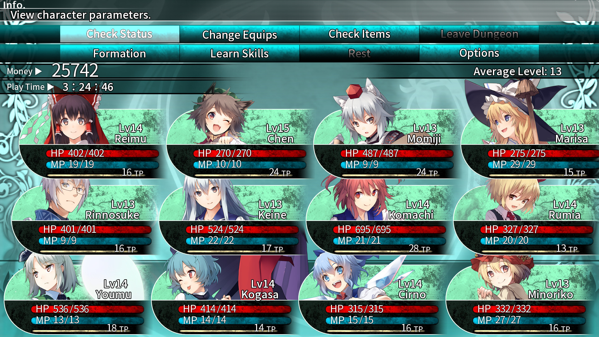 "There's no way we can leave something as ridiculous as the Ame-no-Murakumo being stolen alone."Challenge the mysterious great tree that suddenly appeared!The Dungeon Crawler, Labyrinth of Touhou - Gensokyo and the Heaven-Piercing Great Tree is finally on sale!Challenge the Great Tree with the maidens of Gensokyo!. The huge tree that suddenly appeared, the theft of Ame-No-Murakumo, and then..?Find the mastermind behind all the recent incidents!Choosing from many Touhou Project characters, form and develop a large team of 12, and challenge the powerful foes that stand in your way.Many tricky boss battles will be waiting through your journey.Choose from over 50 characters to make your perfect party, and head towards the great labyrinth that pierces the skies!Lose your way, and yourself, as you utilize the plethora of customization features to spoil your favorite characters rotten!Both the acclaimed "Labyrinth of Touhou 2" and its expansion Plus Disk have been combined into one massive game.Character graphics have been redrawn, the game is now in full HD, and movement speed and consecutive battle bonus have been increased to enhance the game experience.Conquer the Great Tree that spans across more than forty floors, the randomly-generated endless dungeon, as well as two incidents in Gensokyo!Maps that are easy for even beginners to get into!Enjoy the revised character portraits, and the adorable chibi avatar moving about!Choose freely from a roster of over 50 characters, and use both tactics and character customization to claim victory over more than 100 boss battles!Make use of each character's unique skills, equipment crafting, status increasing items, level up bonuses.. many options are available to build your team just the way you want.You can even use special items to teach them various subclasses.You can also spend money to increase their status! Perhaps when all else fails, the power of money will prevail..?The battles that await you are both beautiful and daunting.Choose the best characters and the right tactics for each battle, or ignore efficiency and use only your favorites, the choice is all yours!Enjoy the tension while facing down these powerful foes! Далее