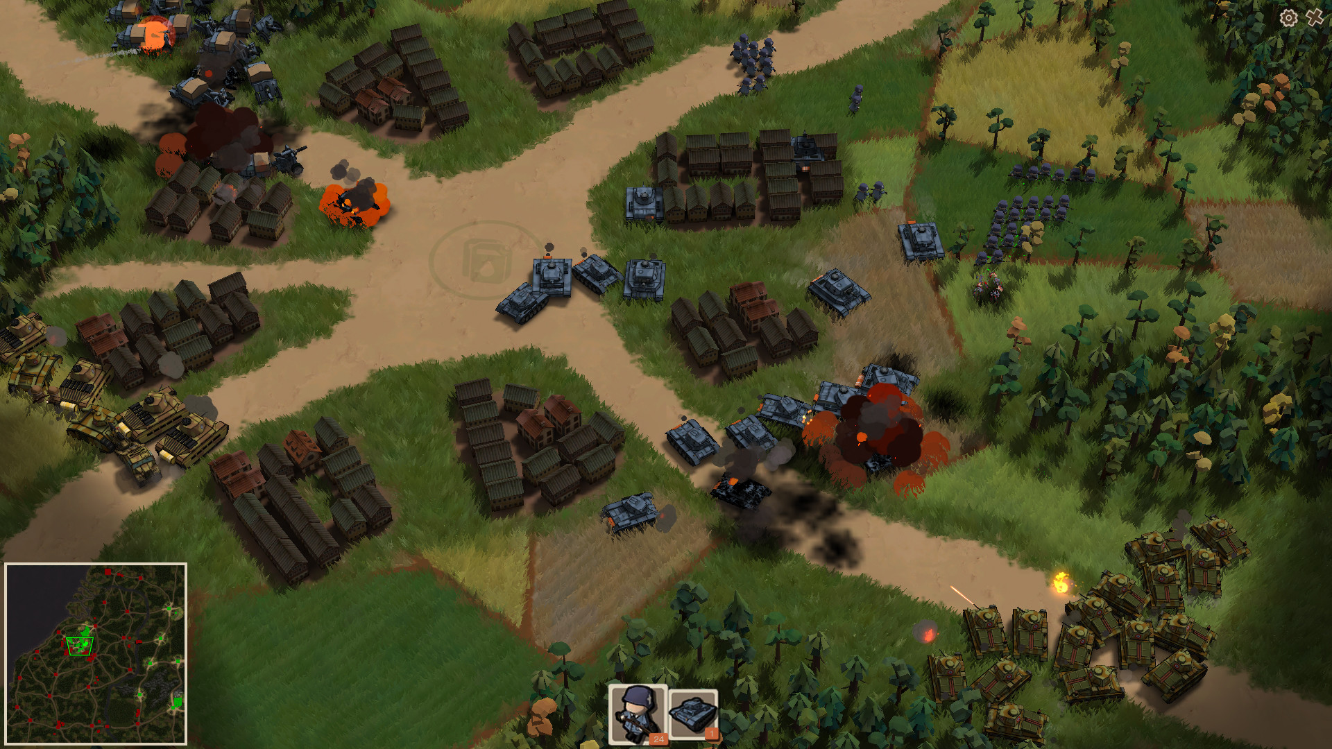 Overview: This game is a real-time strategy game that reproduces the classic battles and events of World War II. The game is divided into two parts: LAN battle and single levels. Features: Single levels are divided into large and small levels. The big levels are adapted from historical battles, Players need to rely on strategy to win. The small levels are adapted from historical events and rely more on the player's micro-manipulation. Unlike other World War II games that either manage troops from a global perspective or focus on individual operations, this game uses the operating methods of traditional real-time strategy games, but pays more attention to thinking about the battle from the overall perspective. In this way, players can see and command their troops how to fight directly, and they can also use the Strategist's thinking to advance and win the game The game introduces some new concepts, such as supply. The troops need to be supplied to act. When the supply line is cut off, the troops will lose their combat effectiveness in a short time. This way, the enemy can be defeated by cutting off the enemy's supply, therefore, more strategies and tactics can be realized The game also reproduces the concept of armor and penetrate. When the enemy's armor is thick enough, your weapon will not be able to penetrate the enemy's armor, and you must go around behind the enemy to attack. The game also supports the weather system, adding more random factors to the battlefield Далее