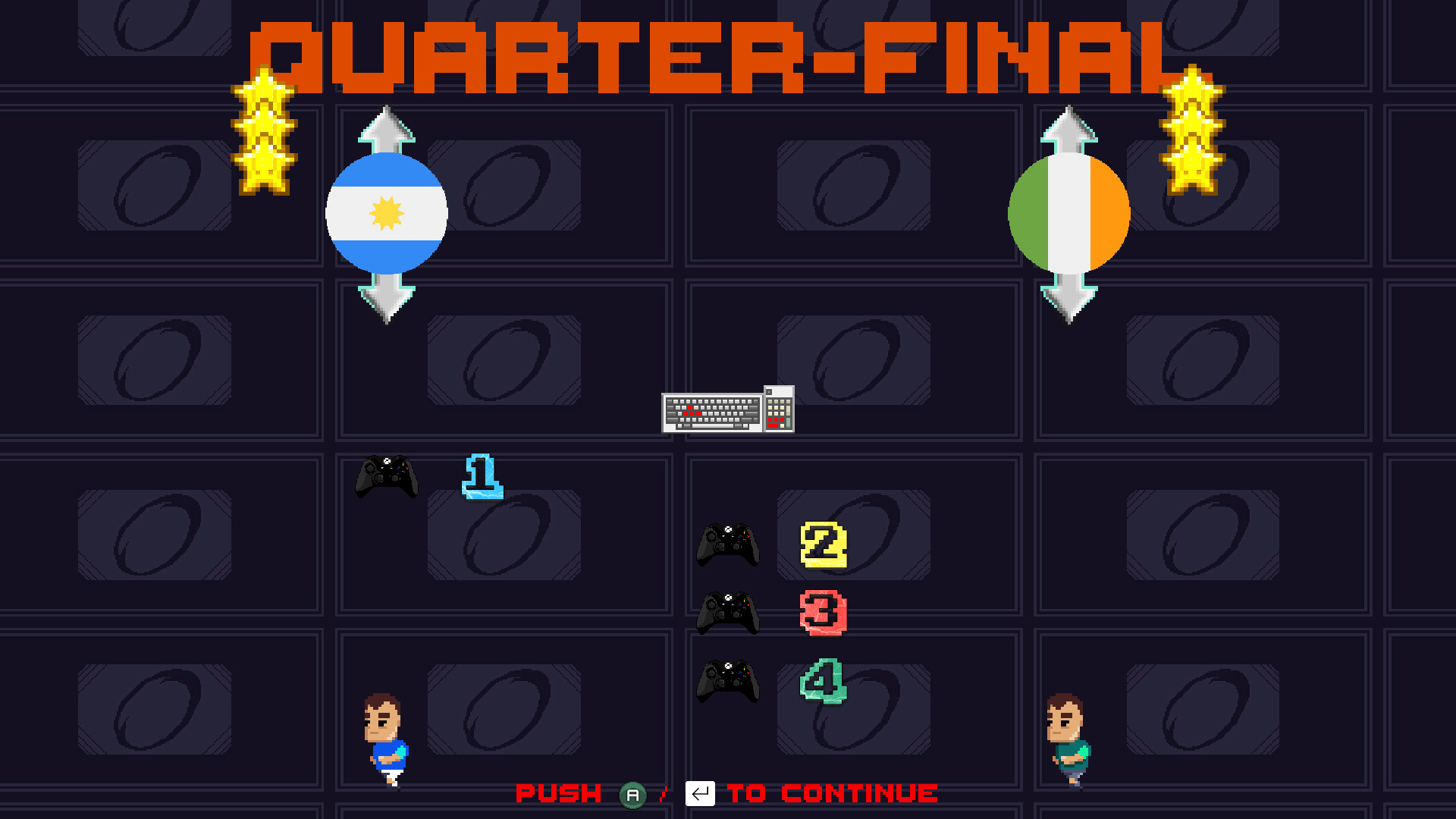 An hommage to classic arcade games from the 90s , adapted to the olympic sport of rugby sevens !Experience Tackles, Rucks, Illegal Tackles Make your way to the score lines and score many tries!-up to 4 concurrent players (need joysticks)-16 teams-International Competions The rules are the rugby seven rules, (i.e you can only pass backwards).The only difference is that in the game you can tackle players without ball :)For a better experience, it's recommended to play with joysticks.
