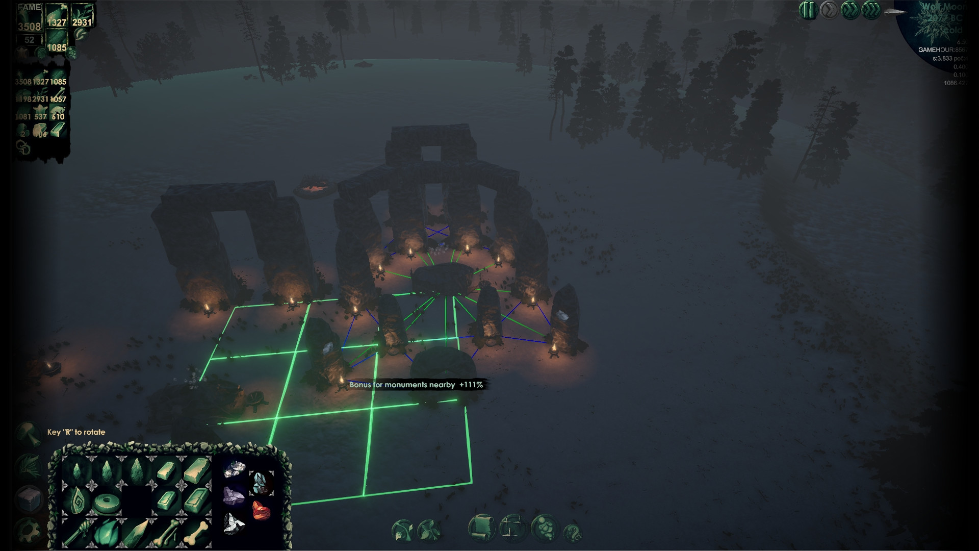 Build a village on hallowed grounds, in the year 2000 BC. Take care of the needs of the villagers and pilgrims that arrive to visit the holy place. Get enough food and other resources to run the village. Build monuments of various shapes from variouse stone types. Provide the villagers with clothing and tools made of flint, bone or bronze.The game begins when the first shaman arrives on the hallowed land. Soon after, the first pilgrims will come. Expand your fame and resources for building other huts, altars and stone menhirs. If the villagers get angry or hungry, they will leave, so take care of their needs. Keep the villagers well fed, warm, relaxed and healthy. Produce jewelry and tools from a variety of materials and provide the villagers with clothing that keeps them warm.Trade tin and copper and make tools and jewelry from stone or bronze. Send the villagers to hunting expeditions. Tame some animals. The Aurochses, predecessors of today's cows, can supply milk and food. Plant herb shrubs and trees.Priests can examine the sun, the moon and the stars. Research will unlock new rituals and larger gatherings. New types of buildings are also unlocked through research. Summon new settlers, their wives, and let the kids train skills with their fathers.Provide food, wood, flint and 11 other ingredients for the villagersThere is more than 25 buildings to build8 kinds of altars for shamans and priestMany kinds of menhirs of different sizes, megaliths and stone lintels. You can select from various types of stone with different propertiesPilgrims will reward you with raw materials and fame if you make sure that the shaman perform ritual they need.There are 5 kinds of shamans and 15 different of rituals.You can have up to 3 priests and unlock 27 stages of research.Trade tin and copper.Call great gatherings.Manufature tools, clothes and jewelry.Tame animals.Plant bushes and trees. Далее