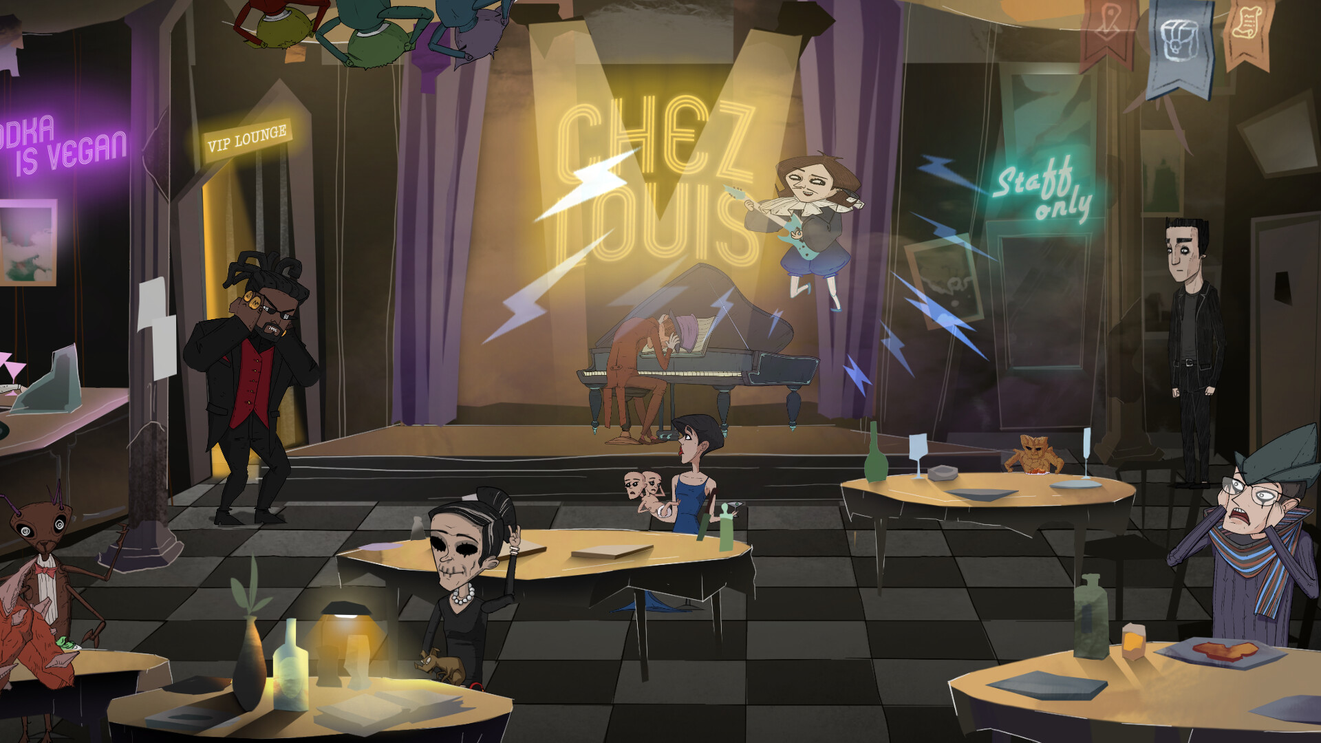 Вотэверленд – это нарисованное от руки приключение в стиле поинт-н-клик с разветвленной системой диалогов, нелинейным геймплеем, различными концовками и уникальной внутриигровой пошаговой настольной игрой.Попытайтесь выбраться из волшебной тюрьмы под названием Вотэверленд вместе с очаровательным призраком Ником. Воруйте и обманывайте или помогайте харизматичным жителям города, чтобы открыть все возможные концовки этой слегка безумной истории.Каждая глава может быть пройдена минимум двумя разными способами: вы можете либо помогать, либо воровать. Насыщенные разветвленные диалоги расскажут вам больше об этом необычном мире, а также будут влиять на отношения с местными и вашим напарником Ником.В этой игре нет определенного порядка глав. Более того, если вы где-то застряли, то всегда можете бросить начатую главу и перейти к другой. А потом еще к одной. И еще.. Ну, вы поняли.В Whateverland 19 мини-игр, однако вы не сможете пройти их все за один раз. Вам предстоит не только сделать татуировку русалу и приготовить первоклассный рамен (обычное дело). На пути вора вы встретите множество замков, которые так и ждут, чтобы их взломали.Винсент – опытный вор, решивший украсть драгоценное ожерелье из особняка одинокой старушки по имени Беатрис. И все шло по плану, пока она она не поймала его с поличным, оказавшись древней, могущественной ведьмой. В наказание Беатрис отправила Винсента в созданный ею параллельный мир, где ведьма держит тех, кто посмел перейти ей дорогу. Первые обитатели этого причудливого мира назвали его Вотэверлендом, и с тех пор это название прижилось. Винсент объединился с обаятельным, но немного надоедливым призраком по имени Ник, и вместе им предстоит найти выход. Получится ли у них? Зависит от вас!Неклассический поинт-н-кликВы можете воровать, или нет. Решать только вамВаши действия определяют концовку и отношение людей к вамСамый надоедливый напарник во вселенной (но мы его все равно любим)Можно разговаривать с людьми. Хотя не факт, что они захотят говорить с вамиСпортивный симулятор пошаговой стратегии внутри игры. С магией!Множество мини-игр. Как минимум 2Живая музыка, записанная настоящим секстетом. Разве не круто?Прекрасный художественный стиль, нарисованный от руки Далее