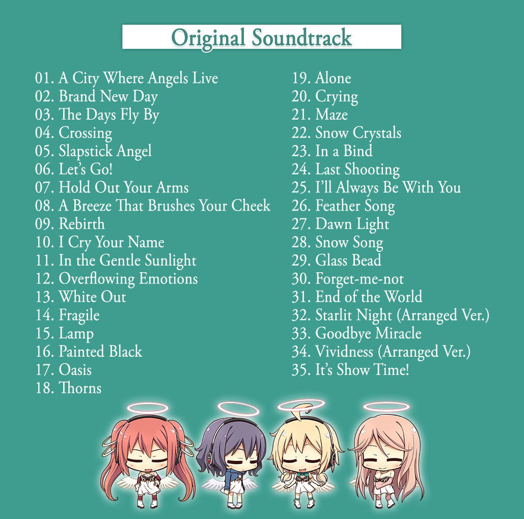 Bokuten Original Soundtrack & Vocal Collection. Features the BGM game tracks & full vocal songs from Bokuten - Why I Became an Angel!- Original Soundtrack01. A City Where Angels Live02. Brand New Day03. The Days Fly By04. Crossing05. Slapstick Angel06. Let's Go07. Hold Out Your Arms08. A Breeze That Brushes Your Cheek09. Rebirth10. I Cry Your Name11. In the Gentle Sunlight12. Overflowing Emotions13. White Out14. Fragile15. Lamp16. Painted Black17. Oasis18. Thorns19. Alone20. Crying21. Maze22. Snow Crystals23. In a Bind24. Last Shooting25. I'll Always Be With You26. Feather Song27. Dawn Light28. Snow Song29. Glass Bead30. Forget-me-not31. End of the World32. Starlit Night (Arranged)33. Goodbye Miracle34. Vividness (Arranged)35. It's Show Time!- Vocal Collection Arrow 2 Heart01. Feather Song02. Goodbye Miracle03. End of the World04. Dawn Light05. GlassBead06. Vividness07. Forget-me-not08. Starlit Night09. Dozing Dreaming10. Snow SongFeather Song Single01. Feather Song02. Feather Song (Off Vocal)03. Feather Song (Off Vocal & Guitar)04. Feather Song (Off Vocal & Bass)05. Feather Song (Off Vocal & Drum)06. Feather Song (Off Vocal & Organ)TARILATTA Single01. TARILATTA02. TARILATTA (Off Vocal)The music files are provided in loss-less FLAC format and MP3! Далее