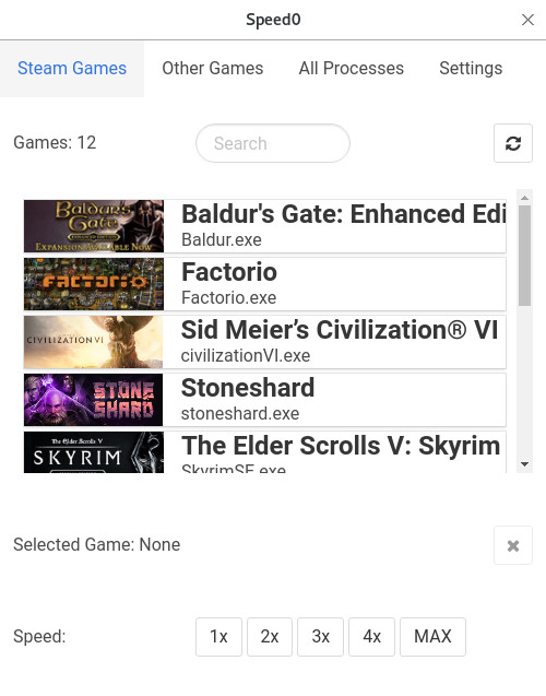 Speed0 speeds up animations in single player games. Speed through unskippable cutscenes, fast forward through dialogue, and speed up gameplay animations in a wide variety of games.It's a simple and reliable asset for developers, streamers, and gamers. Visit this page in the steam community hub to see supported and unsupported games.DIRECT STEAM INTEGRATION. Speed0 automatically detects all of your Steam games.GAME ACCELERATION. Speed0 modifies the way your game sees time pass. Animations finish sooner, NPCs walk quicker, game time passes faster. Because the game itself remains unchanged, you can experience dramatic speedups without any modding.DEVELOPER INTEGRATION. You can bundle Speed0 as part of your game. Accelerate your turn based game in a natural way with minimal overhead. Set triggers and conditionals, and configure the max speed. Compatible with nearly any game engine.The amount of speedup you experience will depend on two things:#1 The speed you choose#2 The game itselfNot all games are compatible, but many are. Here are some examples: Skyrim Intro Cutscene - Before: 4min 40s, After: 40s (700% speedup!) Borderlands 3 New Character Intro - Before: 6min 54s, After: 200s (200% speedup!) Final Fantasy X HD Yunalesca Custcene - Before: 6min, After: 140s (250% speedup!)Streamers. Are you losing viewers? Did you agree to stream a game, but its long plot sequences are causing people to lose attention and unsubscribe? Are you unable or unwilling to stream certain games because they are too "slow" for your audience? Does your speedrun come to a screeching halt as you hit the same ten minute wall of dialogue, every time? Streamers.. keep your audience engaged: use our end user tool to set up hotkey bindings for quick use.Developers. Are you working with a game engine that has frustrating transitions and animations? Do you want to quickly and robustly implement a feature to speed through cutscenes and to speed up combat animations?Developers.. add Speed0 to your game project: we provide a well documented API compatible across a wide range of devices which you can integrate into your software.Gamers. Is that an unskippable cutscene before a hard boss, but the checkpoint is before the cutscene trigger? Do you want to replay some of your favorite games, but dread the endless, unskippable dialogue? Do you play turn-based games, only to throw your hands up in frustration as the enemy turn takes an eternity?Gamers.. Fast forward through slow opening credits, overly dramatic animation sequences, unskippable dialogue sequences, speed past story points you've already heard, and focus on the parts of the game you enjoy. Далее