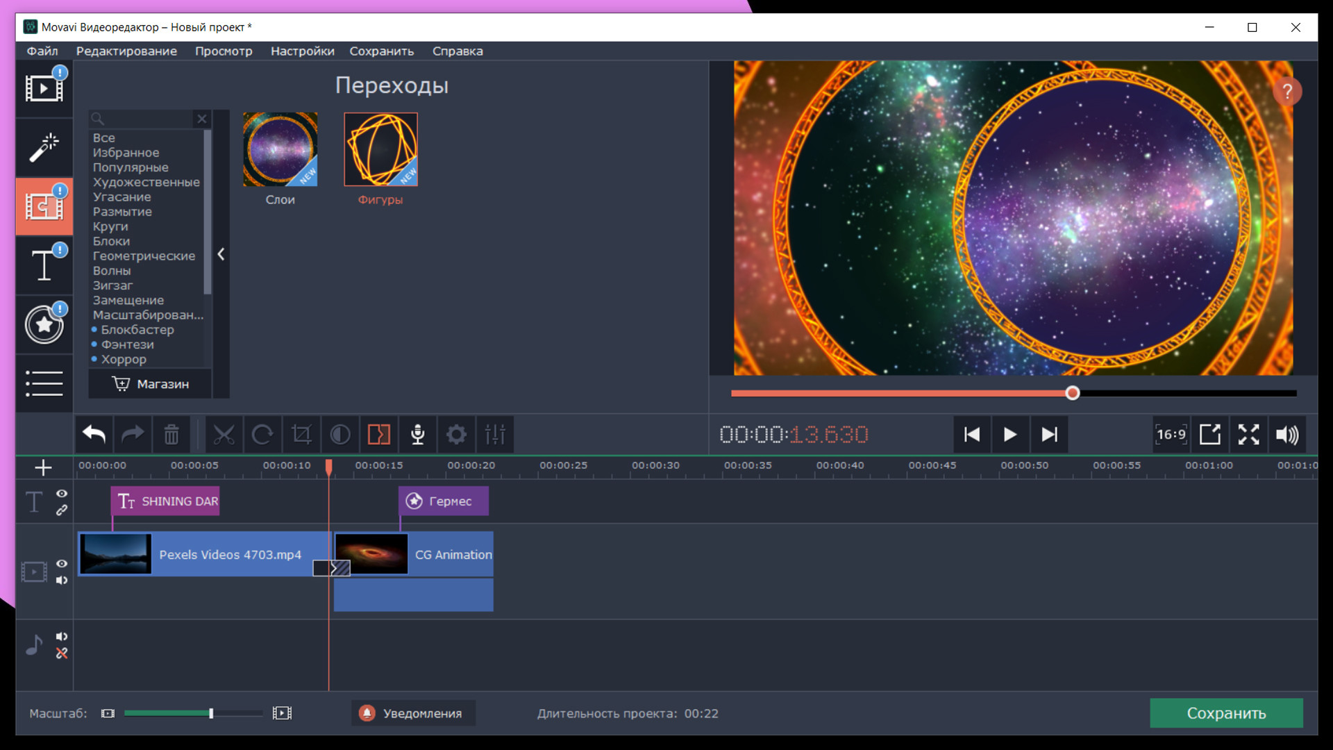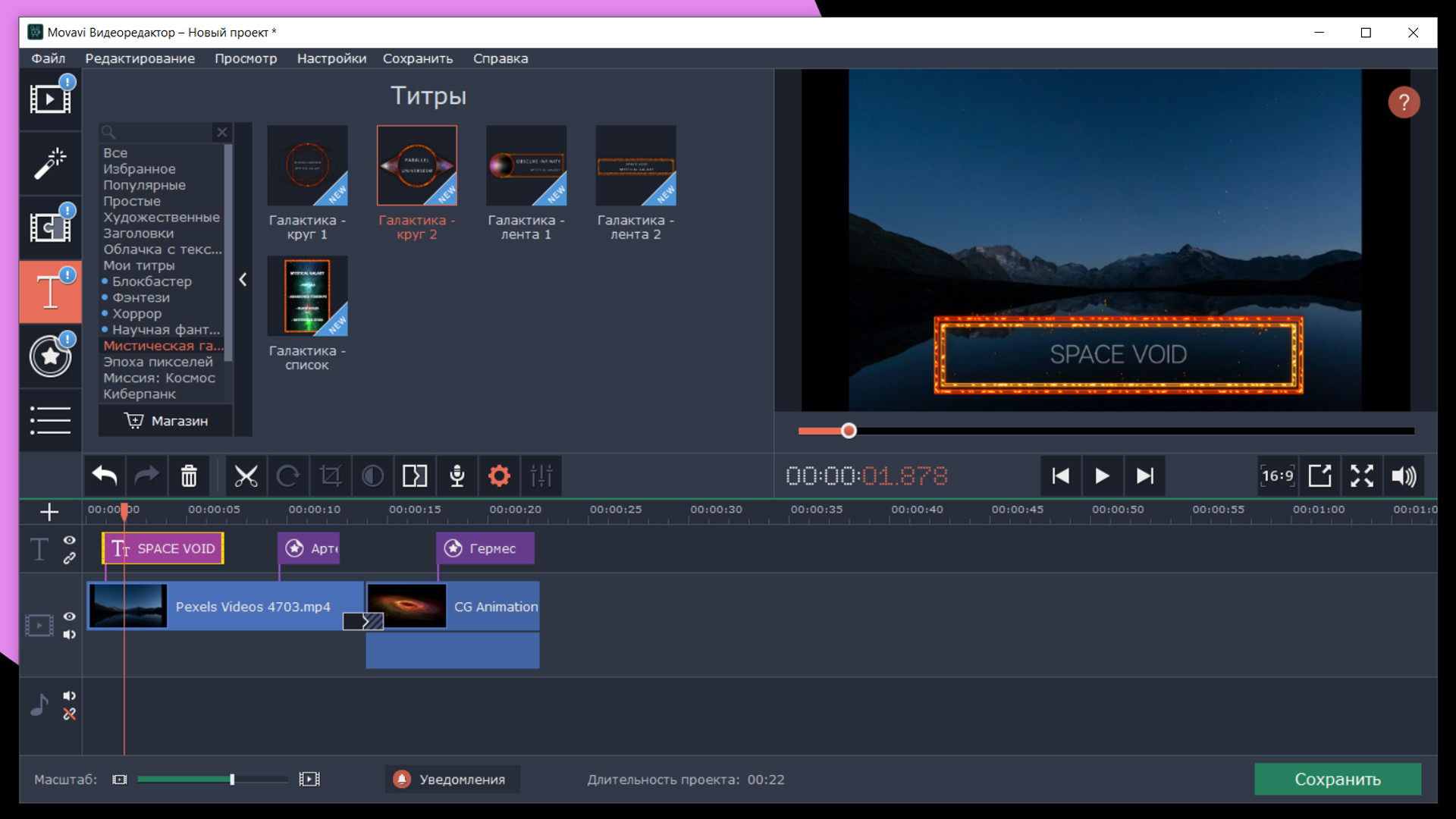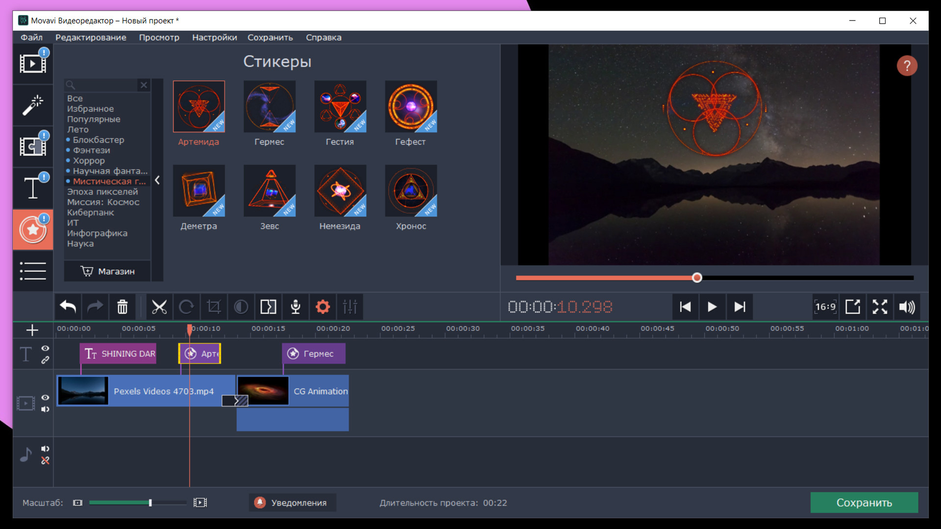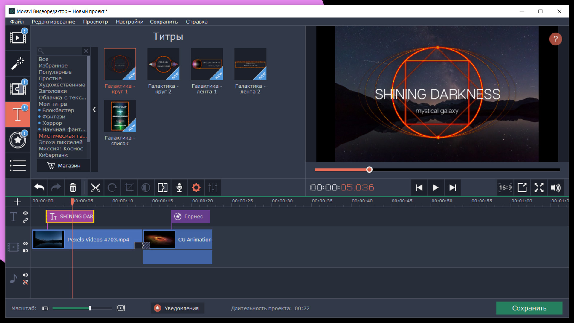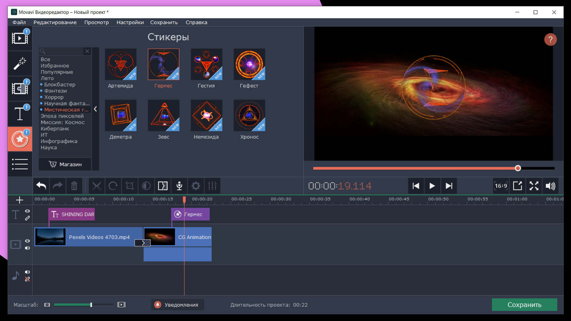 Movavi Video Editor Plus 2020 Effects. Mystical Galaxy Pack