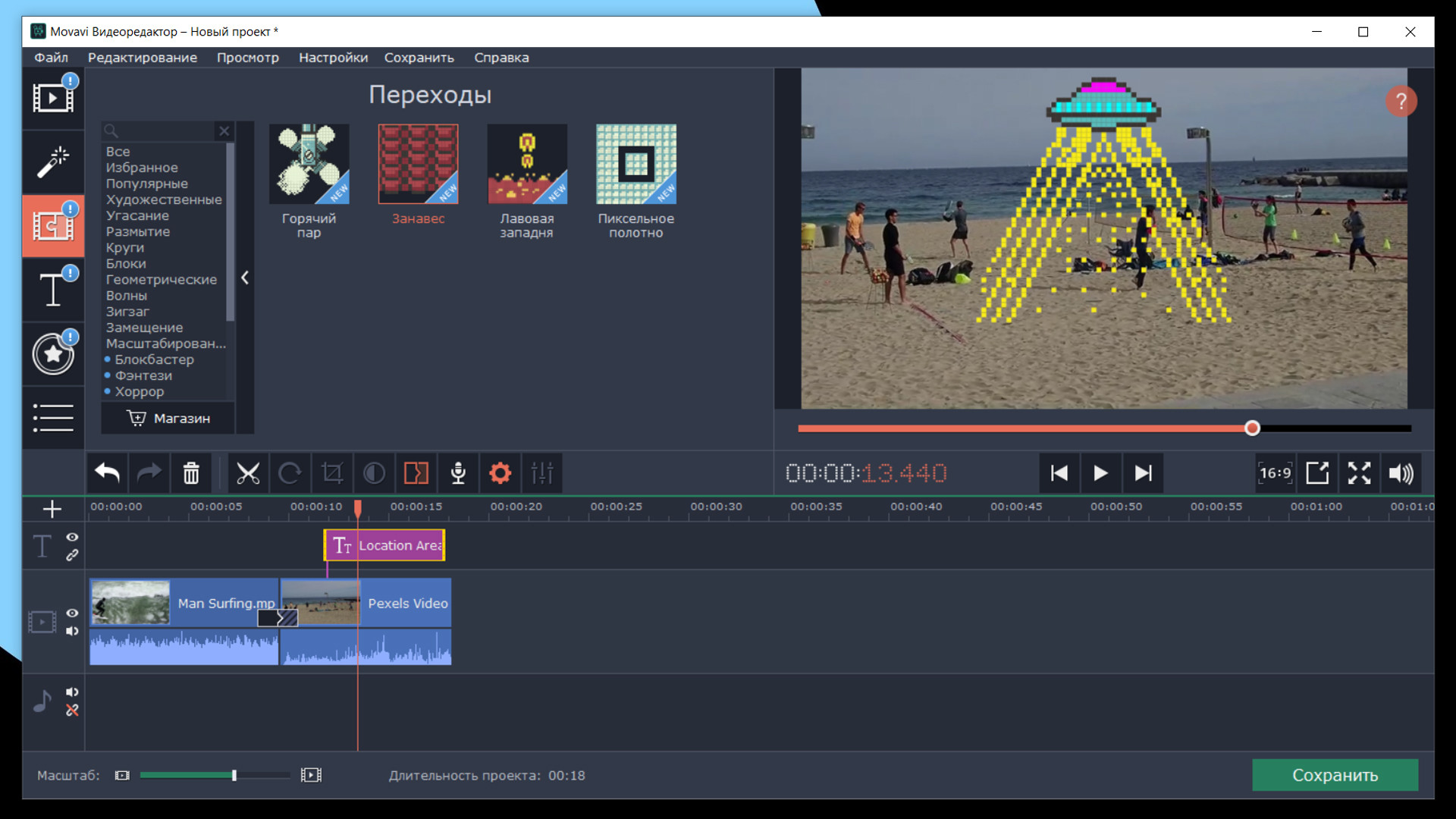 Movavi Video Editor Plus 2020 Effects. Pixel Age Pack