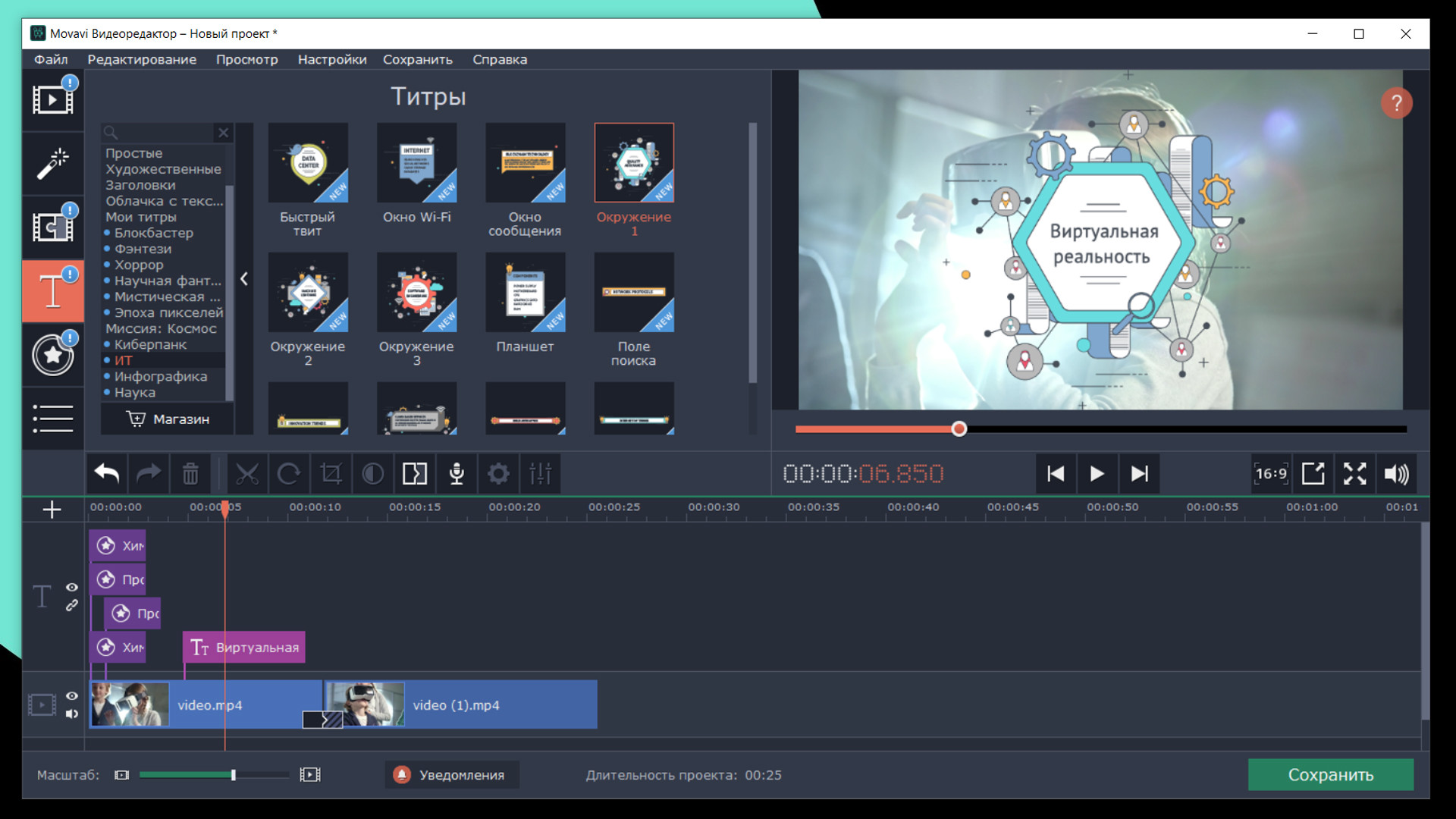 Будущее наступило. Добавляйте динамичные переходы и современные фоны в проекты про инновационные тренды. Анимированные стикеры сделают инструкции для пользователей нагляднее и удобнее. Улучшайте видео с помощью винтажных титров и уникальных мелодий.У вас блог, посвященный технике и технологиям? Сделайте его более интересным и понятным с помощью этих коллекций:КиберпанкИнфографикаИТНаукаНабор включает:70 титров26 стикеров22 фонов30 переходов12 мелодийЭтот DLC набор совместим с Movavi Video Editor Plus 2020. Далее
