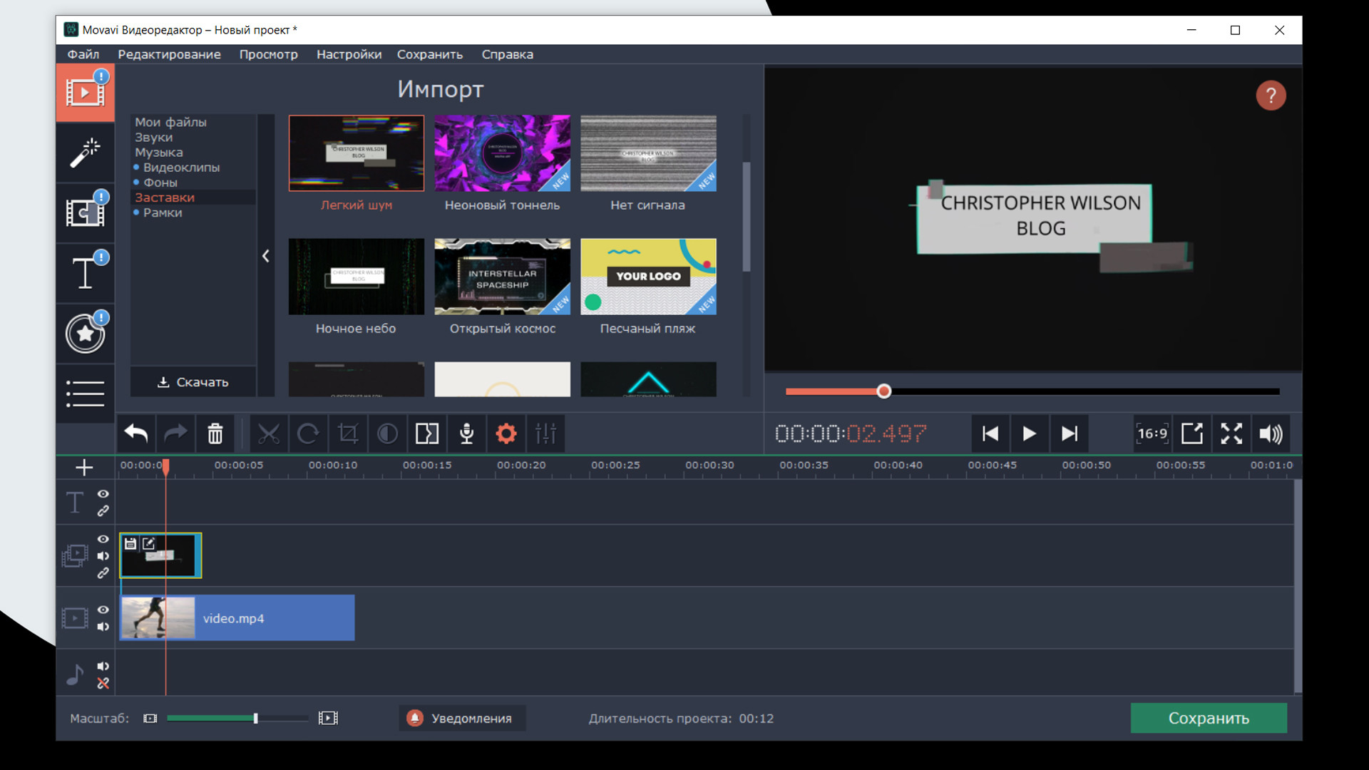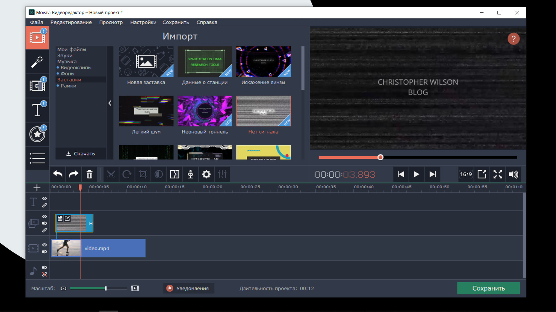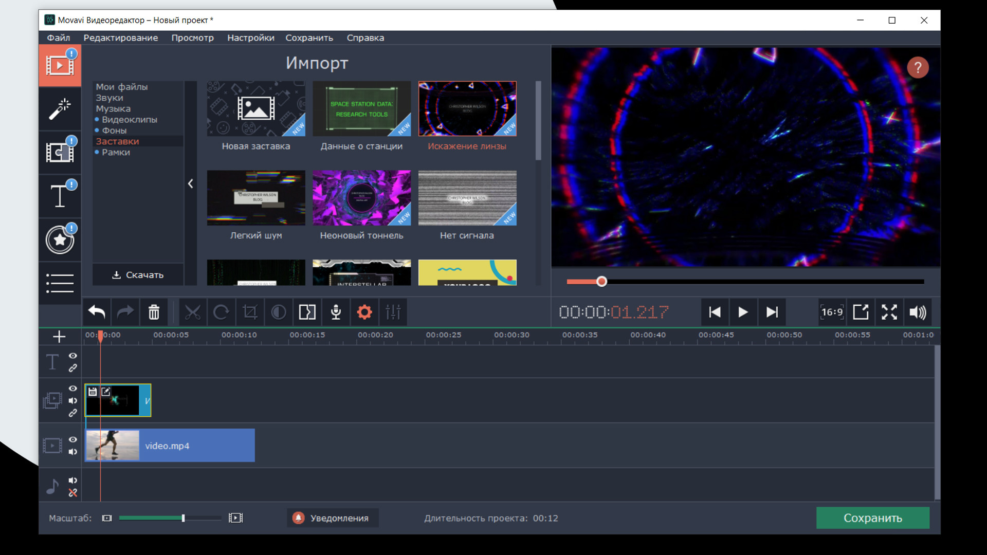 Movavi Video Editor Plus 2020 Effects. VHS Intro Pack