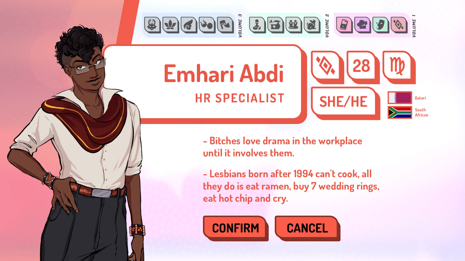 ValiDate is a visual novel about thirteen struggling singles navigating through soul-sucking 9-to-5s, quarter-life crises, and the harsh truths millennials learn as soon as they hit their 20's. Set in the Jercy City area, our cast of lovers trudge through the dregs of capitalism - a journey, a transition - a rite-of-passage that leads into uncertain mid-adulthood. In one side but not yet out on the other, 13 playable characters find romance amongst cosplay, trash mixtapes, and even poetry straight from the soul.With over 30 routes to choose from and hours of content, the lives of these singles are in your good (or bad!) decision-making hands.4 playable characters with 30+ routes (the remaining 9 playable characters will be in future volumes).The ability to choose horrible decisions and see the entertaining fallout.#OwnVoices narrative writing by an all people of color team.A beautiful array of artists of color's work to give each character their own individual feeling.Flawed characters undergoing narrative arcs handled with empathy and self-indulgence.Achievements for every single ending. Далее