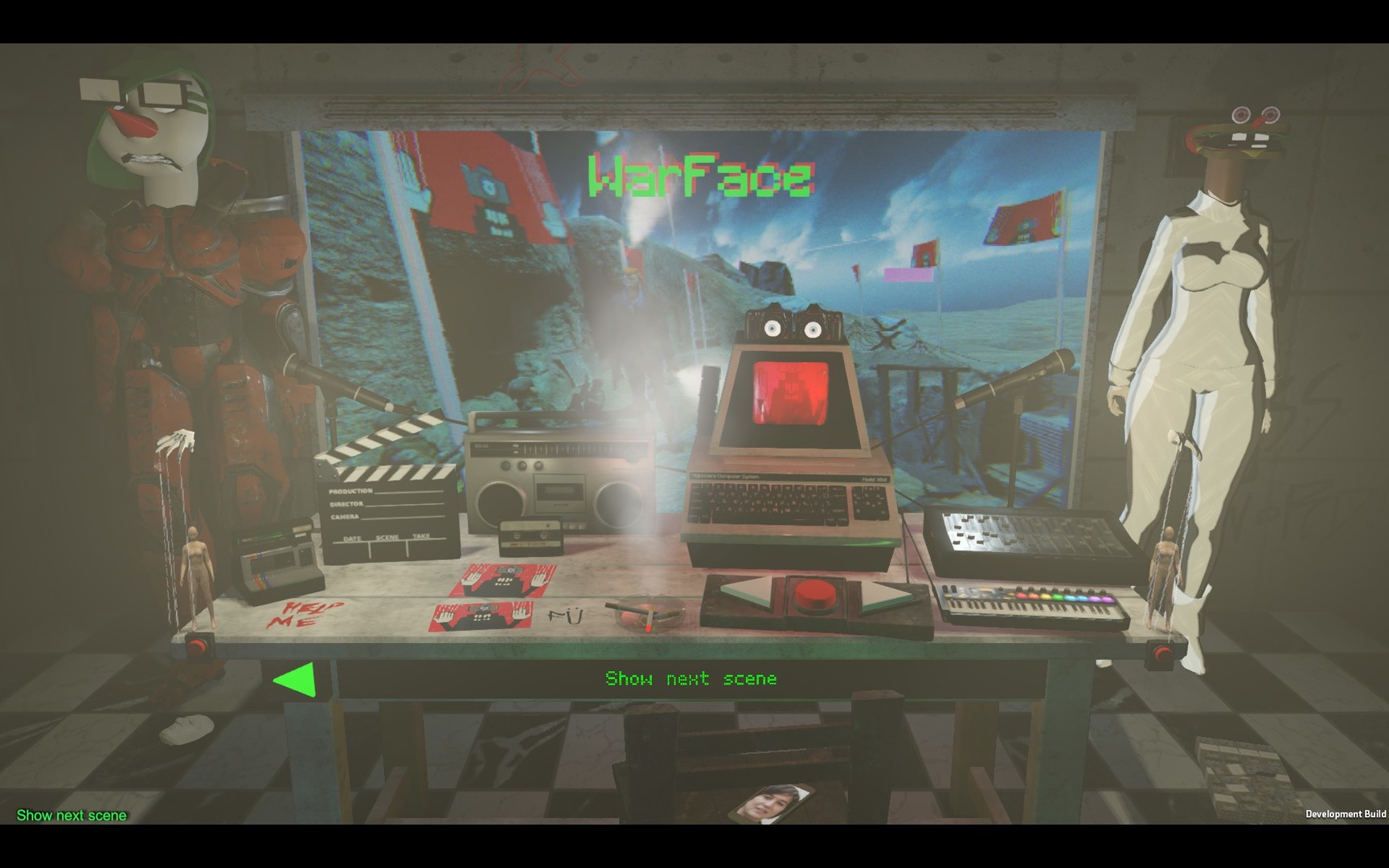 MAKE EVERYTHING STRANGER!. Make the weirdest animations in the world without having to live in a basement for twenty years to learn how!. A "game" only a filmmaker could make. Fun and easy to use strange animation tools designed by internationally renowned award winning animation filmmaker M dot StrangeInstantly and easily create attention getting original animations you can share with the world. Add your voice to the weirdo actors you design and puppeteer them in 48 different strange scenes. Add your own sounds, images and even videos to use in your new original animations!Every head in Nightmare Puppeteer does auto lip-sync, you can even add your OWN drawn faces and they will ALSO have lip-sync! Easily create attention getting gifs, music videos, or short films. You could even make a whole original movie with Nightmare Puppeteer!Most ALL of the gifs shown here were created by Nightmare Puppeteer's "TV Mode", a fully automated and procedural animation mode that created endless automatic original animations. Combine "TV Mode" with Nightmare Puppeteer's "Twitch Mode" and you can't imagine the madness you can enable!Hella Features. Lotsa Stuff- Includes 60 Scenes, 90 heads, 108 bodies, 90 props + lotsa eyes, teeth, noses, hair you can mix and match + add more stuff using Workshop! Keyboard Puppetry System- using a normal computer keyboard you puppeteer your actors, control the cameras, lights, even time itself and more! Craptacular Character Creator- create the most hilarious and disturbing characters imaginable + add tons of unnecessary props to them Lousy Level Editor- It's a level editor but it's pretty lousy. If it was in a game from 1995 it would be awesome, but its not 1995.. right? Visual Flavor Manager- choose the tastiest flavors for both your actor and the whole scene. Flavors include Krunchy, Wavey and Hyphy. Shut The Hell Up Auto-magic Lip Sync System- Actors will never stop talking using the recorded voices you add or use a live mic instead! Full Steam Workshop integration- Share everything including custom scenes made with the level editor, voice files, custom actors + more! Mediocre Media Compositing Manager- Add your own images, text, and video's(including green screen video) to be badly placed or composited into your scenes! Music Madness Machine- use auto beat detection or a Midi file to drive camera cuts, actor animations, even switching actor bodies and heads + more! Instant lyrics music videos- add a.srt subtitle file and Nightmare Puppeteer automatically displays the titles on screen. Add your own props- use your own models as props to be used by the actors OR drop them into the scene using the Lousy Level Editor! Twitch Mode- enable Twitch mode to allow the chat to control EVERYTHING including adding images, text and even video! HKLR Visual feedback system- taking visual feedback to a new level! Like what you see? Throw a heart! Hate it? Throw mud! + more(Only available in Twitch mode) Youtubrrr- add a randomized ai Youtubrrr to commentate on your scenes, our ai Youtubrrr's are much more interesting than biological ones. Remix Mode- Record your Nightmares including all key presses to remix yourself or share with friends on Workshop! Human Misery Organ- Use one of the presets or add your own sounds to play this evil audio instrument in your scenes. TV Mode- Random algorithms create entire procedural cartoons for you, just sit back and watch the madness and let people interact with them via Twitch chat. Rando's- add a selection of ai controlled chaos agents to your scene for EXTREME madness! Selections include Bear driving invisible car and Morbidly obese couple wielding dynamite and cigarettes 360 image capture- capture 360 images and 360 image sequences you can easily convert to videos(using other software) to share with the world. RR Support - REAL REALITY support, no expensive headset required. Render reality in amazing 9000k with farm raised free range organic eyeballs you already own. RR is the future and amazing and will make all your dreams come true. AND MORE- I can't list all the features because then you'd think I was lying, but there is more. Try the free demo and see for yourself if Nightmare Puppeteer will make all your nightmares come true. If it can be made.. it can be made STRANGER!. NOTHING is normal anymore. The worlds first cinematic animation maker and puppetry performance engine is here! Will you become the Puppeteer of Nightmares?We can't make your dreams come true, but we got your nightmares on lock.NOW YOU'RE PLAYING WITH NIGHTMARES!*NOTE* Any video/image you create with Nightmare Puppeteer is YOUR ORIGINAL CREATION, you are free to monetize it or do anything else you want with it.*NOTE* Nightmare Puppeteer DOES have built in video capture but it might cause audio sync issues on longer clips. Instead, use OBS or any other program used to capture gameplay videos and they work perfectly. *NOTE* Nightmare Puppeteer cannot create anything normal or mainstream, it can only create awkweird*, cringicidal** or hilurbing*** things. *Awkweird- Awkward + weird**Cringicidal- Cringy + homicidal***Hilurbing - Hilarious + disturbingIMAGINATION NOT INCLUDED. Model Attribution credits:Nightmare Puppeteer includes models by the following SketchFab users using the following licenseThanks to them for sharing their work!Biff by Koda Murray *(Using Body and head separately + modified materials)Cowboi by Zab *(Body only + modified materials) Fox Fem by AzulieZeiro *(Body only + modified materials) Lan Laffinty by Artofant *(Body only + modified materials) Lila Swimsuit by Ifraz01 *(Body only + modified materials) Retopoligized Horse by Hueeeee *(Body only + modified materials) Machoke by Braytendo *(Body only + modified materials) Awkward Look Monkey by Danyy59 *(Using Body and head separately) Doggo by GR.blend *(Using head + modified materials)Sasha by GR.blend *(Using Body and head separately + modified materials)King by GR.blend *(Using head + modified materials)