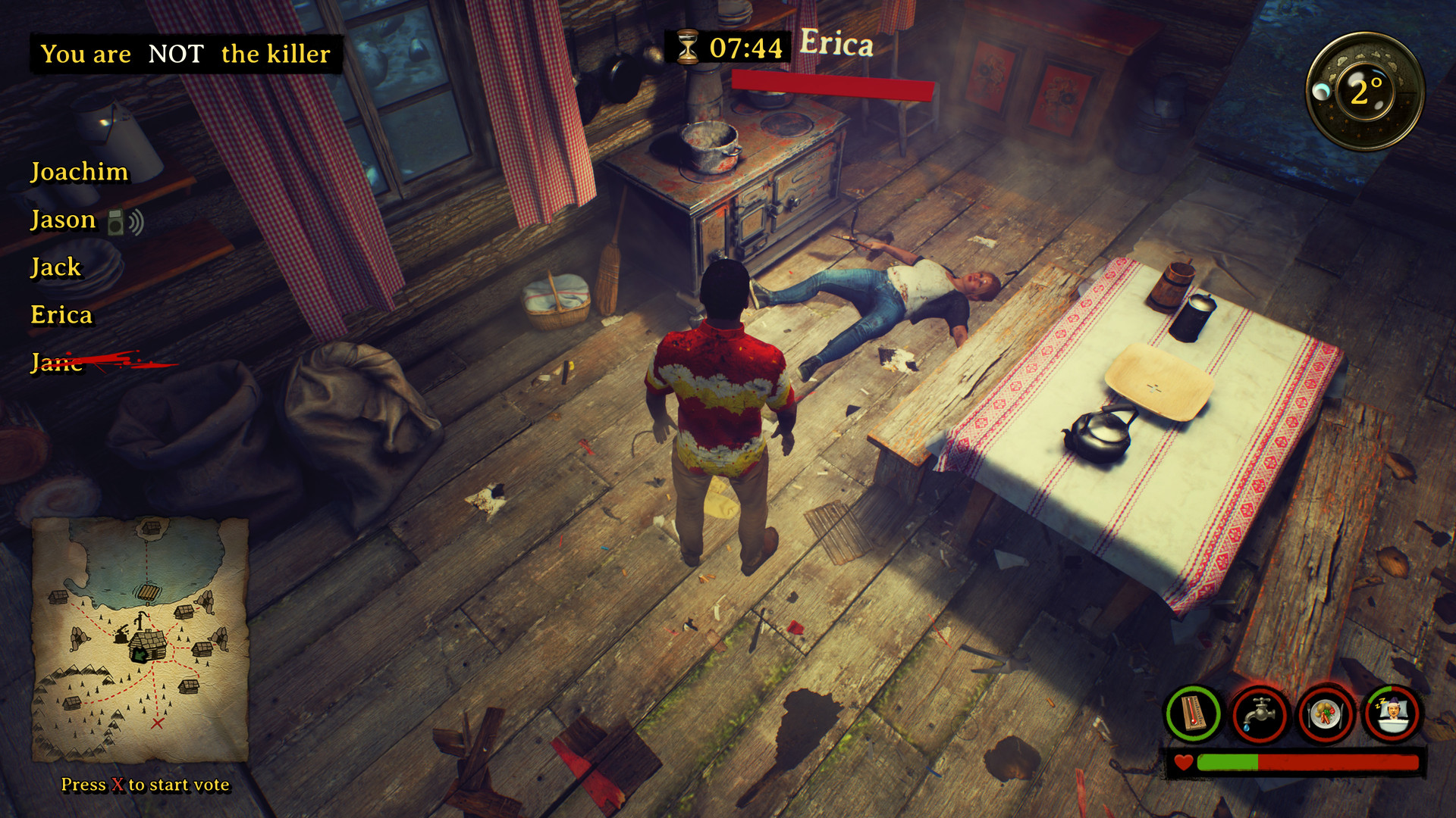 Stranded in the Norwegian mountains after a bus crash, unity is your only hope. Work together to find shelter, scavenge for resources, and conquer the elements. Surviving this ordeal requires teamwork, pooling skills and supplies. Trust your companions as you face the challenges ahead, knowing that only by collaborating can you make it out alive.In this treacherous game of survival, a killer lurks among your friends. Trust becomes a delicate balance. Assess motives and actions carefully as you navigate this deadly scenario. Will your companions be allies or adversaries? Unmasking the killer is a matter of life and death, but who can you truly trust?Search the wilderness for vital resources in your battle for survival. Collect what you can, for every item is precious. Share your finds with fellow survivors, pooling resources for meals, warmth, and sustenance. The key lies in collaboration, making the most of what you discover together.Nourishment, hydration, rest, and warmth are essential for survival. Find food to sustain yourselves, secure water sources, take moments to rest and recharge, and protect against the biting cold. These pillars of survival will determine your fate in this harsh mountain landscape. Далее