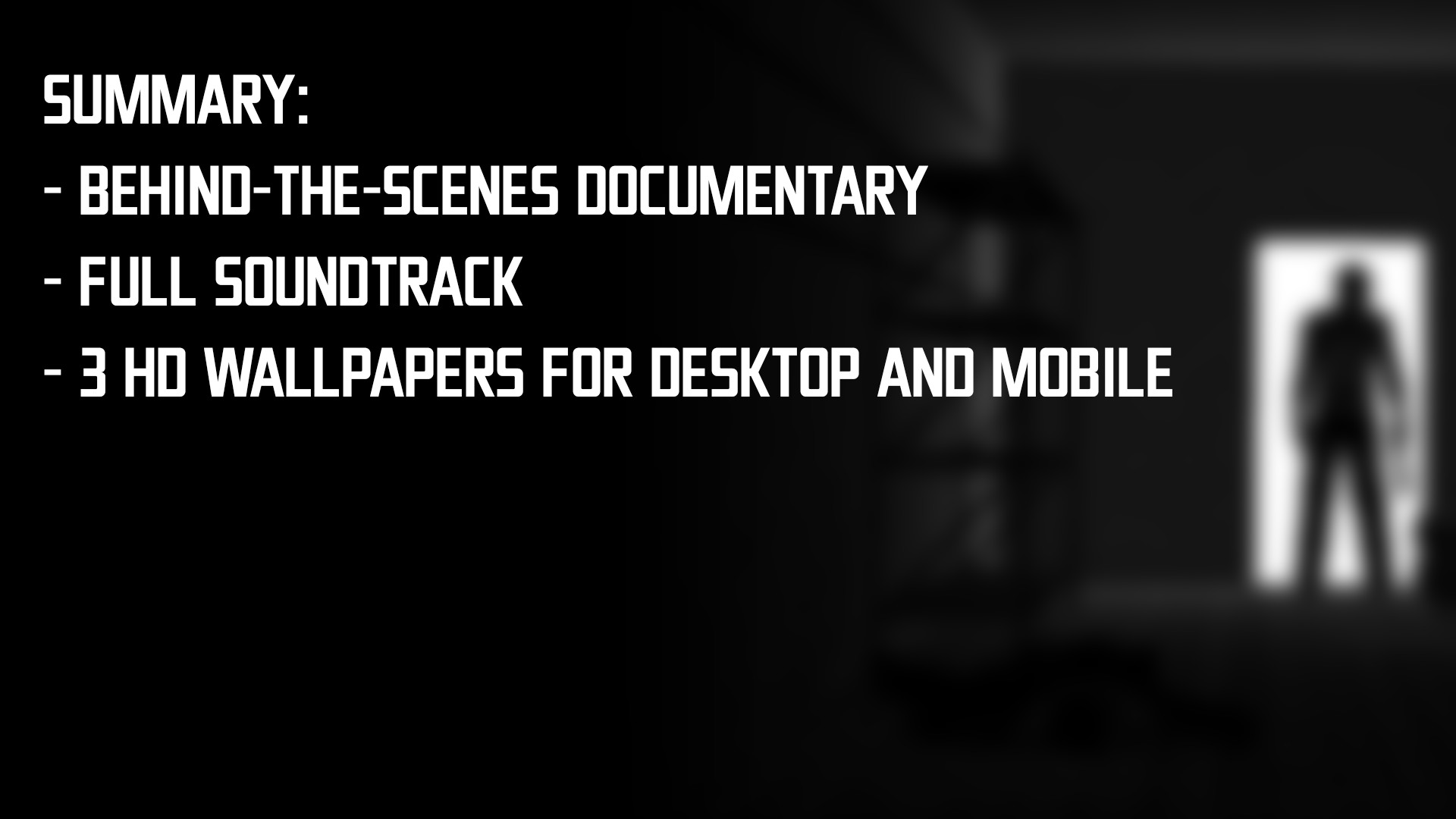 The official supporter pack for A Night In Berlin!THE OFFICIAL SOUNDTRACKAll 8 of Zotsky's heart pumping tracks featured in A Night In Berlin, in the best quality possible!HIGH-RESOLUTION WALLPAPERS3 HD wallpapers each for desktop and mobile.BEHIND THE SCENES DOCUMENTARYA 13-minute mini-documentary featuring a behind the scenes look at the development of A Night In Berlin. Including interviews with the developers and cast, as well as a look at early builds of the game.After purchasing and downloading the Supporter Pack, the OST will be playable in the Steam Music Player. To access the documentary and wallpapers, go into A Night In Berlin's Properties and find the "Browse Local Files" button. This will take you to A Night In Berlin's game directory, which will have the Supporter Pack included within it. Далее