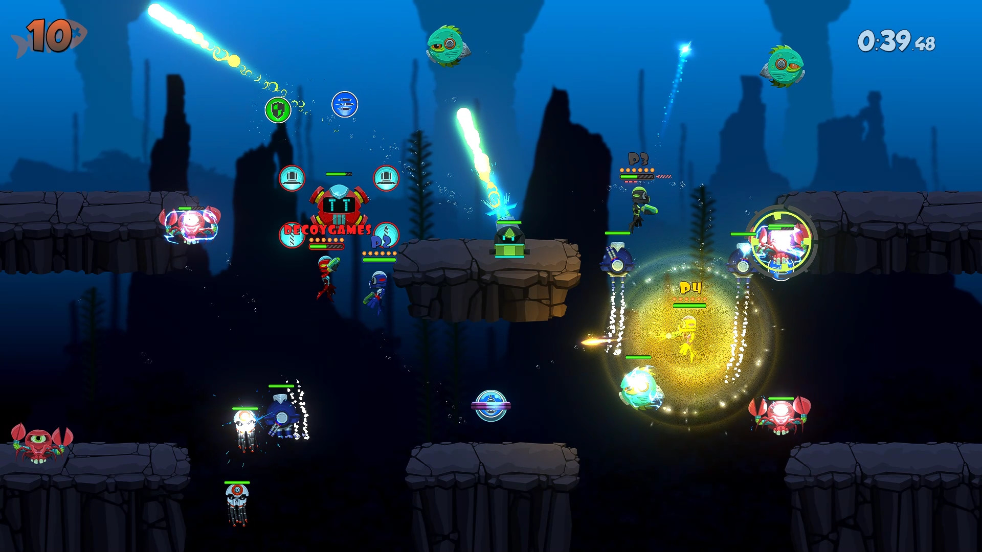 В новом дополнении к Swimsanity! вас ждут четыре новые подводные суперсилы!Суперсила «бот С Боеприпасами». С выходом нового дополнения Swimsanity! вам не придется жаловаться на нехватку боеприпасов в подводных сражениях, ведь Муба всегда сможет призвать бота с бесконечным запасом снарядов.Суперсила Восстановления. С выходом нового дополнения Swimsanity! Муба сможет окутывать себя целительной аурой, которая будет постепенно восстанавливать здоровье ему и его союзникам.Суперсила «дозорная Турель». С выходом нового дополнения Swimsanity! вы сможете использовать дозорную турель, чтобы оборонять зону на карте.Суперсила «шоковые Дроны». С выходом нового дополнения Swimsanity! вы сможете разместить в нужных местах шоковых дронов, которые оглушат ваших врагов. Далее