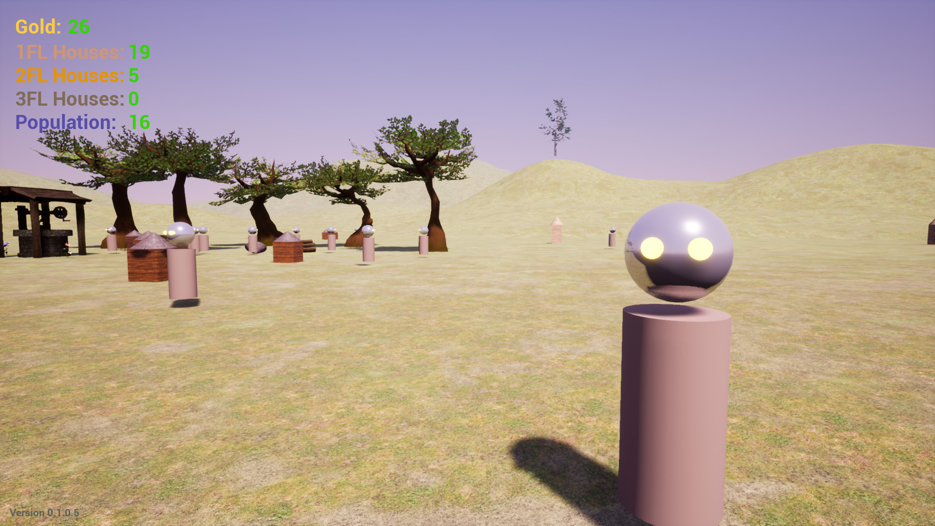 Thank you for your interest in Sponsor-A-Planet! Sponsor-A-Planet provides you a planet with life. It will try to survive, build and thrive, whether or not you decide to intervene. Gameplay: The core gameplay involves observing the AI characters as they go about their day doing what they do, and watching as they turn the somewhat sparse and barren landscape into a more lively and developed environment. The player has the option to spawn more AI (gold dependent) to increase development speed. There is only one way to spawn gold resources, a gold platform underneath the gazebo. Features: Currently implemented features include first-person movement using the WASD keys, Spacebar for jump, F key to fly, LeftShift to sprint, LeftCtrl to crouch, and E key to spawn AI characters. The AI characters will walk around and look for gold resources to purchases houses. AI characters have different modes and glowing eyes corresponding to the mode they are in. For instance, yellow eyes represents random wander mode, bright blue for gold pickup mode, dark blue for resting mode. Далее