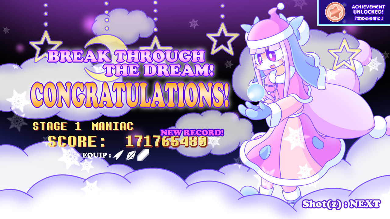 A new dreamy shoot 'em up game from Outside, the makers of other popular shooting games.Play through the game's unique combination of cute, colorful, whimsical visuals and bullet hell action.No need to be shy in this shooting game.The game is perfectly balanced so that everyone from absolute beginner to professional sniper can join in the fun. A dreamy pop-art shooting game. A young girl sets off on a journey across the universe driven by pure curiosity.Venture on as you face various hurdles, fierce foes, new friends, and difficult goodbyes.Just what sort of dazzling sights will you set your eyes on in this game?One snowy night, when relaxing in her room, a girl named Mu Yumegiri looked out her window to see a most puzzling sight..The children of the town were all floating up into the sky! But where could they be headed?Curiosity getting the best of her, Mu quickly changed her clothes and leaped from the window.She simply had to know why the children were flying and why she, too, could fly.Without an ounce of hesitation, the ever-dreaming Mu flew higher and further into the sky.・Customize the main character's skills to play to your liking.・81 total combinations..or even more?!・Play three different difficulty levels depending on your skill. Those who are really skilled can take on a fourth level.・When you complete a stage, the next stage will be unlocked. Make your way through all the stages little by little.・The hidden Trial Mode allows you to play with old-school arcade rules.・This game is based on a "Dream Level" offense and defense system.・Level up your Dream Gauge by collecting items.・Use Dream Level to activate your ultra-special Dream Magic move. You can also use Dream Level to cancel out any mistakes.・Get illustrations added to the Gallery as you make your way through the game. You may even get a better picture of what this game world is like!・Features a 40-achievement system. Do you have what it takes to earn them all?・Online ranking feature! (Note: requires connection to the internet.) Далее