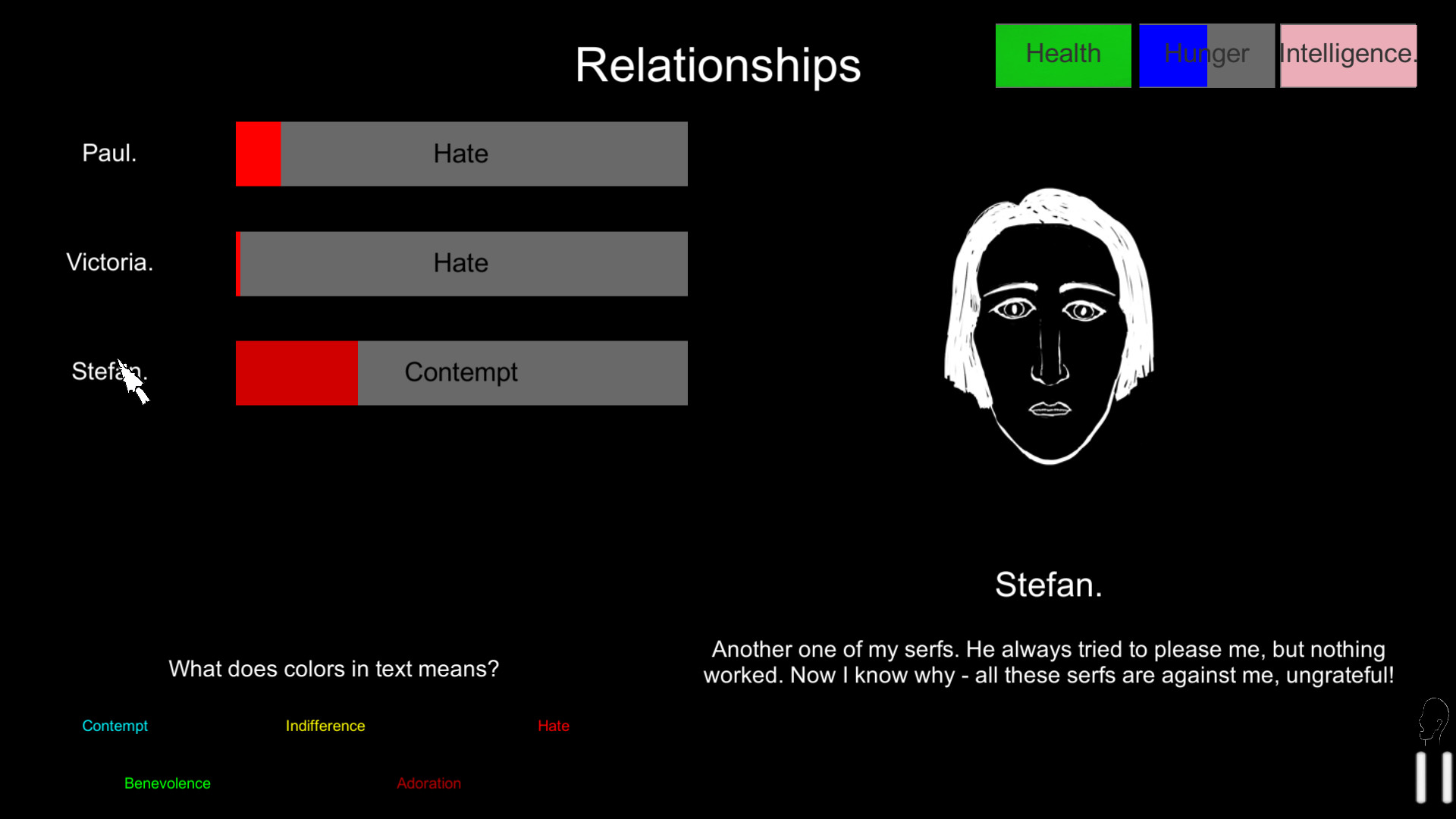 В этой визуальной новелле ты - голос в головах шизофреников династии Мюллеры. Ты переходишь из поколения в поколение и управляешь своим шизофреником, иногда разговаривая с ним. Главное чтобы ваш шизофреник не умер без потомства, иначе вы умрете вместе с ним.Вот почему эта игра так прекрасна:✔Ты голос в голове шизофреника;✔Все твои решения имеют ОГРОМНОЕ значение;✔Оригинальный сюжет, который ни на что не похож;✔Куча отсылок к истории, искусству, психологии, философии.✔Вы побываете в совершенно разных исторических эпохах;✔Черно-белый стиль;✔Интеллектуальная игра;✔Нет трэша;✔Новые истории после каждого БОЛЬШОГО ОБНОВЛЕНИЯ!!! Далее