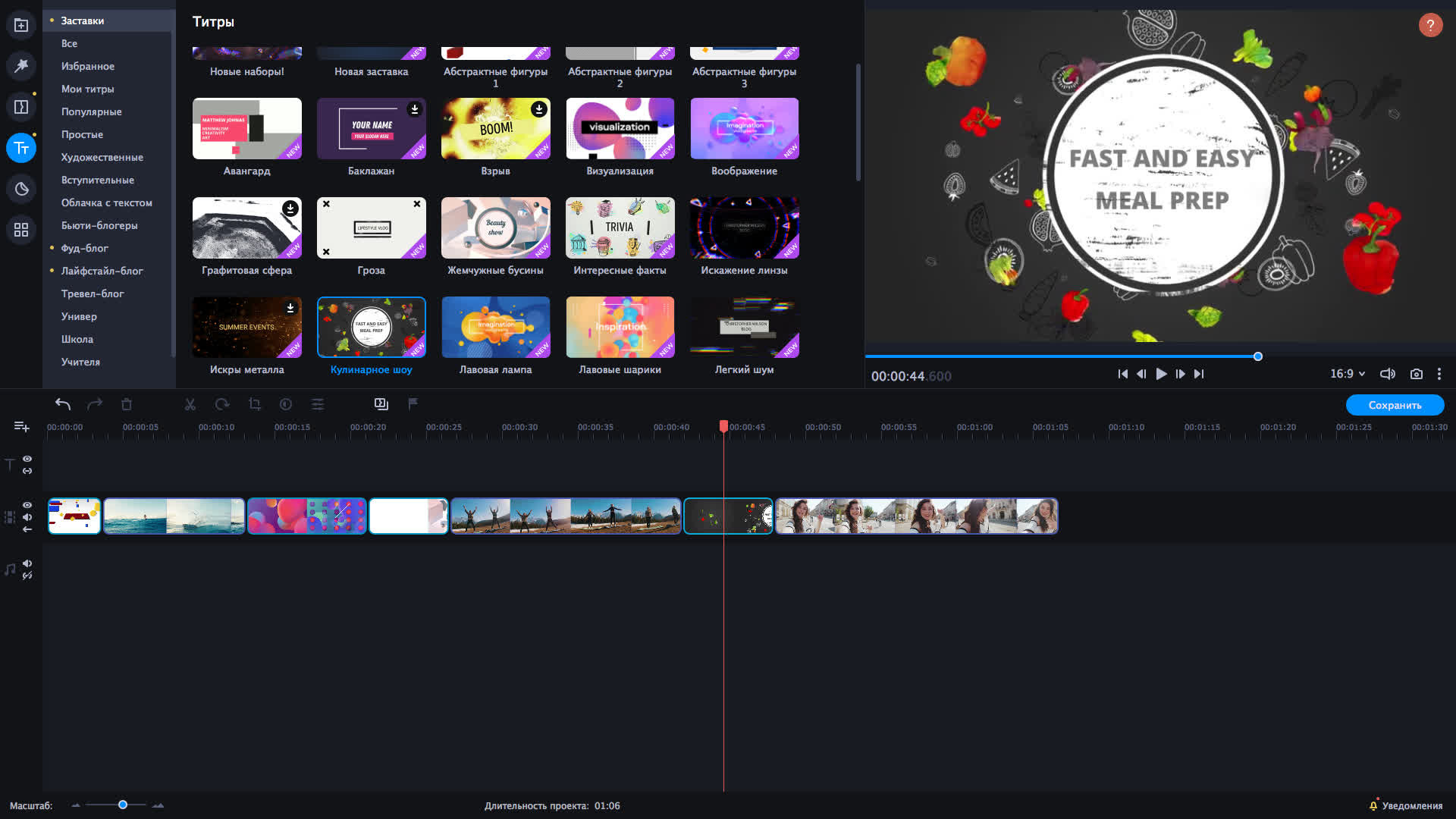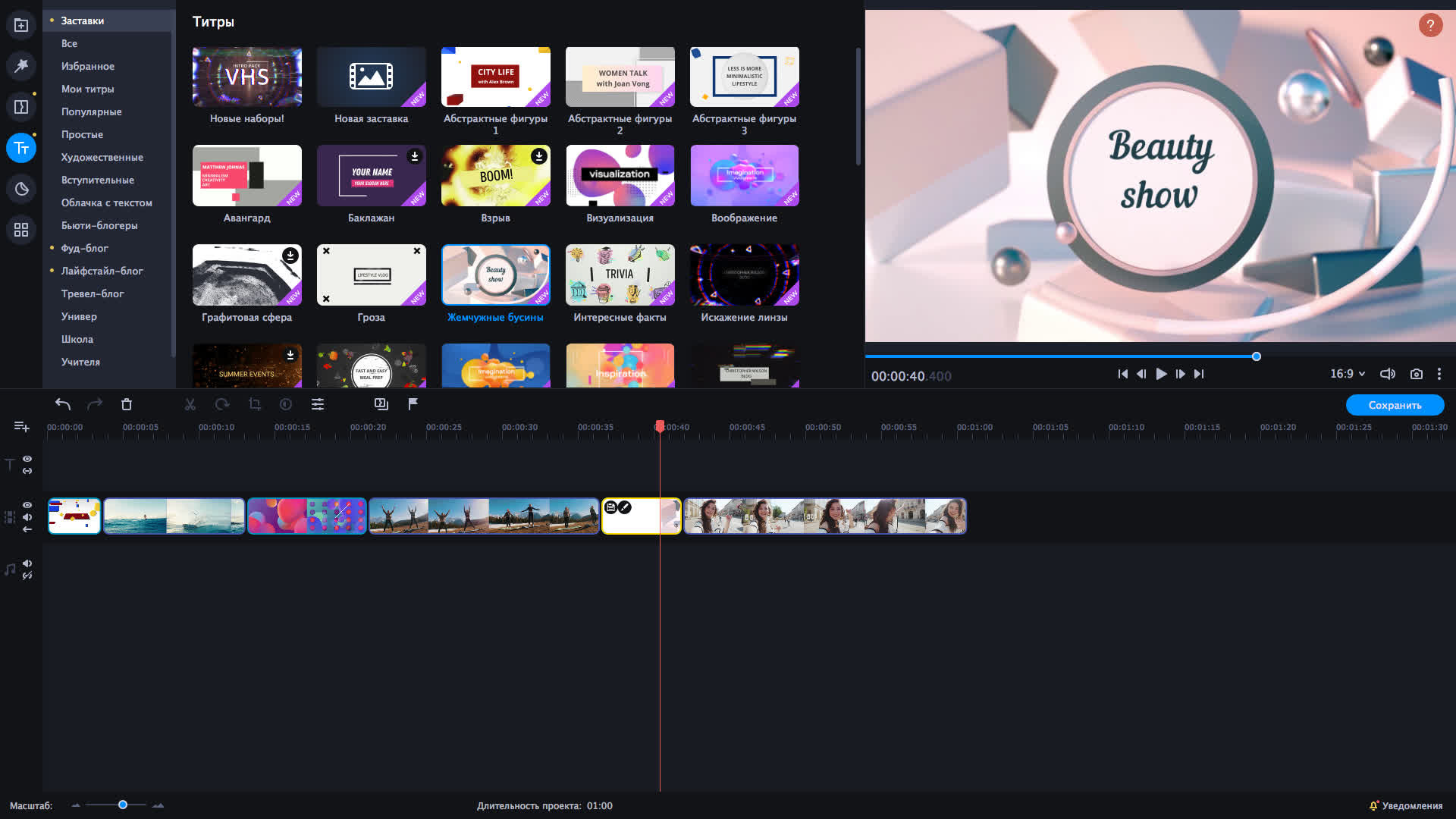 Ищете стильные заставки для своего влога? Мы взяли это на себя! Выберите подходящие трендовые заставки из нашей коллекции.Свет, камера, мотор! Динамичные интро уже ждут вас.Проявите свои таланты. Выбирайте из 31 динамичных интро и применяйте в клипах на разные темы. Заставки...Ищете стильные заставки для своего влога? Мы взяли это на себя! Выберите подходящие трендовые заставки из нашей коллекции.Свет, камера, мотор! Динамичные интро уже ждут вас.Проявите свои таланты. Выбирайте из 31 динамичных интро и применяйте в клипах на разные темы. Заставки VHS, ТВ-шоу, Стильный Влог и другие помогут создать захватывающие видео.В наборе 4 пакета заставок:VHSСтильный влогТВ-шоуЛаваDLC набор совместим с Movavi Video Editor Plus 2021.Далее