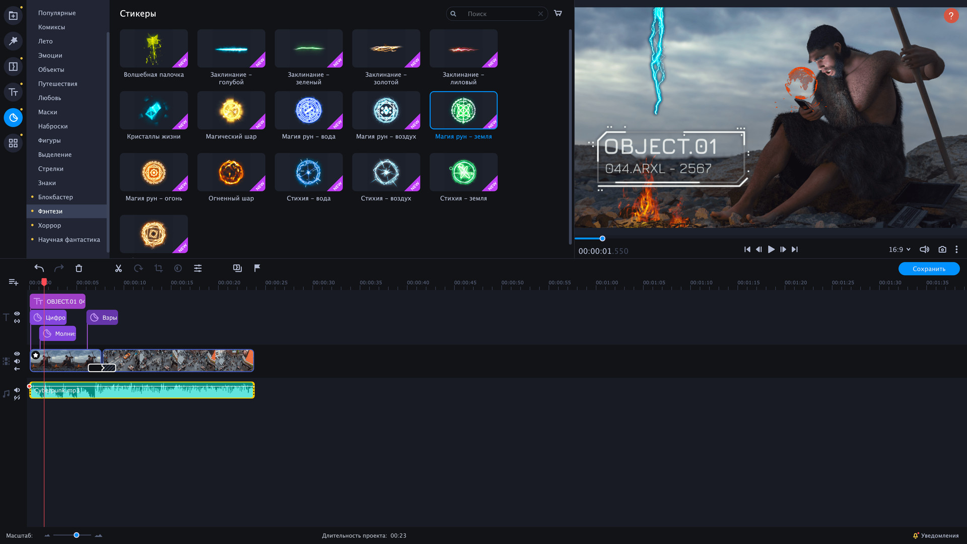 Создайте голливудский фильм с помощью взрывов, дымовых завес, сказочных фонов и футуристических переходов.В наборе 4 пака:БлокбастерФэнтезиНаучная фантастикаХоррорВыберите фон для эпичного сражения с инопланетянами или прикрепите магические элементы, чтобы сотворить заклинание. Добавьте пугающие маски в хоррор – так, чтобы кровь стыла в жилах.В наборе:14 титров 98 стикеров7 переходов16 фонов7 рамокЭтот DLC набор совместим с Movavi Video Editor Plus 2021. Далее