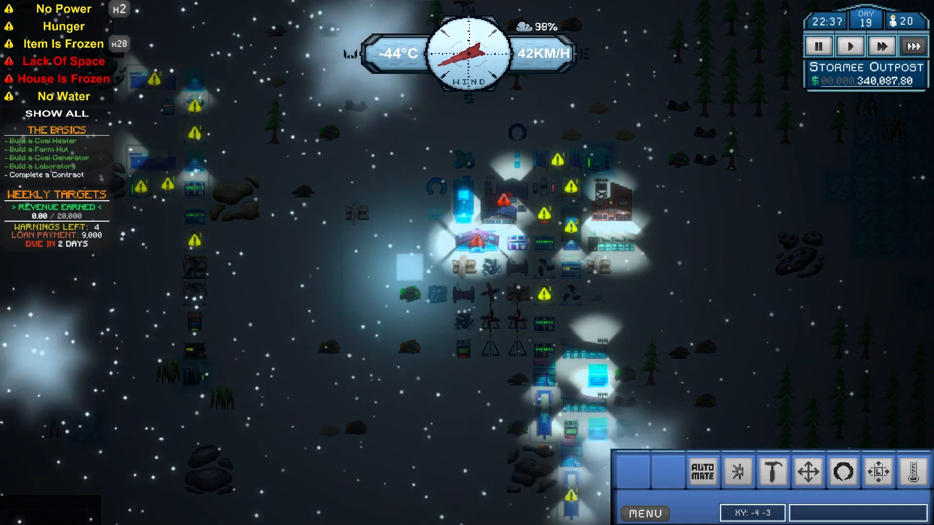After years of scorching heat, an incoming frost is on the horizon, putting half the planet into another Ice Age. Most of the land has been taken over by ice, which forced many cities to relocate. The mining industry has been severely impacted by the lack of space. With demand for more mining on the rise, you set out for the arctic to start your mining industry.Your goal is to build a colony of workers to mine resources and manufacture parts while surviving the harsh climate. Research new technologies, build up your industry and survive with limited resources.In Death By FrostByte, it's a constant arms race between you and mother nature. Build up an array of heaters and wind diverting walls to combat windshield. Research better tech while expanding a successful mining company. Throughout this journey, you will need to manage: Temperature & Other Weather Elements Workers Food Production Power and Water Systems Currency Contracts Research And More!Are you up to the challenge? Or will your company fall to the frost?As Death By FrostByte is currently in Early Access, here is a list of all the major mechanics and features already added to the game. Fog of War / Exploration - You will be given a drone to use to explore the map for resources. Uncover the fog to expand your starting area and grow your industry. Game Challenges - Challenge yourself by picking up to 5 different challenges. Objectives - Complete all 13 main objectives. Weather & Snow Storms - Make sure your base doesn't freeze over with the help of heaters, Unfreezing Crews and wind mitigation. Crafting - Craft components and Buildings to expand your industry. Market - Buy and Sell items when needed Utilities - Build up and maintain your Water & Power Grids. Laboratory - Research and Upgrade new tech for better items and better quality of life. Shift Management - Assign workers to either day or night shifts Workers Skills - Speed up production with higher level workers Contracts - Complete Contracts to earn currency and gain reputation Automation & Mining Resources And More!Death By FrostByte will have many new mechanics and features added throughout Early Access. Here is a list of new content that we will be adding next to the game.The list of future content may change during Early Access. They are to provide you an idea of the future roadmap of this game. Lore / Story Expand on late game items (power production, heaters, walls, etc) Expand on Automation (providing longer links, improving on the existing system) Quality of Life Improvements / Polishing And More! Далее