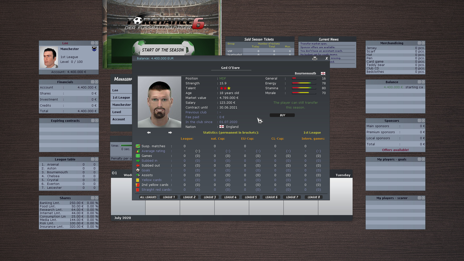 In Torchance 6, you take on the role of an aspiring football manager.Up to 4 players can take on the task of managing all aspects of a football club.Unlike other football management games, you can easily complete an entire season in less than 60 minutes if you wish. This makes this game ideal for a quick round or two when you only have a few spare minutes.It's your choice:Manage your own club and start in the 8th division.Take over an existing team from the European top leagues.Complete challenges.and lead your team to success.Torchance 6 returns to the virtues of classic football managers with an eye on the essentials.Back to the roots:Torchance 6 offers everything a good football manager needs.Be it advertising, merchandising, transfer market, statistics, stadium expansion, expansion of the stadium environment, youth development, training camps, training, tactics, etc.Torchance 6 offers numerous playing options:Play in international leagues, master challenges, watch the game, etc. in text mode and negotiate, train and manage in detail.Extensive league system:8 leagues including numerous championships in almost 200 countries.Extensive editor: With the editor, players and club names can be changed and adapted as required.With a face editor you can create your own player portraits.From fans for fans:Torchance 6 is developed by fans who can look back on 27 years of experience with football management games and who have a passion for football in their blood.Features:Playable in German and English1-4 players on one PCGerman and English languageDifferent game modes (found a club in the 8th league / take over club / accept challenges)5 different levels of difficulty196 countriesMatchday: text mode, scoreboard, 2D game modeComprehensive management: finances, squad planning, stadium expansion and construction, sponsors, training campsBecome a national coach and take part in European and World CupsLicensing requirements to play in higher leaguesNational and international cup competitionsFriendly matchesHi-Score and Online Hi-ScoreNewspaper Reports (can be switched off) Random eventsComprehensive editor Далее