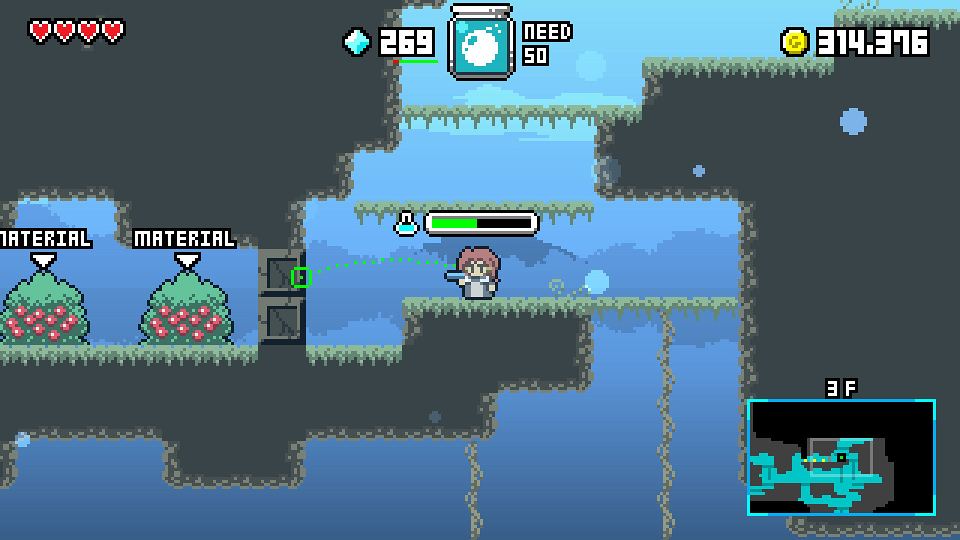 Overview. Magic Potion Millionaire is a side-scrolling action game focused on money-making.Enter the dungeon to gather materials, make potions, and sell them to make profit!Gold is everything here. Pastel can buy various things to upgrade herself.Become stronger, challenge harder dungeons, make more gold..until your competitor surrenders.Gameplay. 1. Enter the dungeon for materials!Enter and conquer procedurally generated dungeons with melee attacks, various ranged attacks and magic potions.You can create potions with the materials you find from enemies in the dungeon. Potions are not only limited to healing drinks, and you can make other kinds such as explosive potions (bombs).2. Brew potions to make money!Using the materials you gather in the dungeon, you can make potions the clients will order.Your potion shop will have many orders to fulfill, and much money to make.3. Buy stuff to become stronger!There are many uses for gold you have earned.Buy equipments to improve your stats, buy recipes for more potions, find new dungeons to explore, and so on.They will sure help you make more money!Story. In a forest on the outskirts of the town, there's a magic potion shop.Its owner Pastel, has a thriving business as there were no rivals around. One day she said.."Everything's going so well! I love being in this business, with no other game in town!"A strange-looking customer heard that, and told her.."That sounds like you're looking for a competitor, aren't you?".. One month later.A new magic potion shop has opened in the town, and it took all the customers Pastel had.Pastel reflects on her arrogance and decides to reopen her shop.. Далее