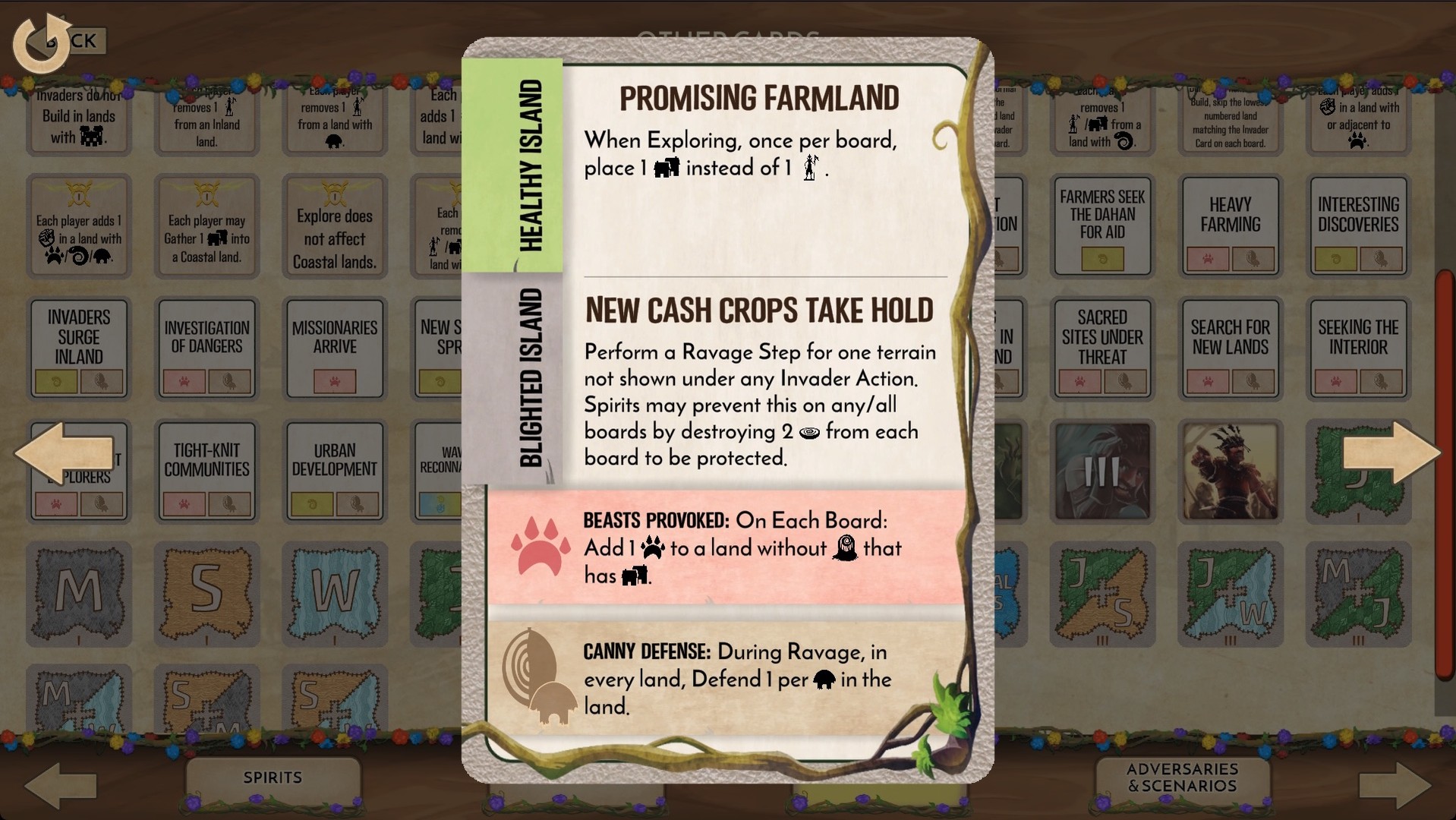 Branch & Claw brings the Island back to life with new Spirits, new ways to fight Invaders, new Adversaries & Scenarios, and more Powers! This adds a judicious spice of uncertainty for experienced players as well as creating both opportunities and hard choices for the Spirits!How can we Spirits drive the invaders back to their boats and off our island? We must grow, change, and find new paths - if we stay as we are, we shall die, and the Island with us. Bring forth the natural chaos, and let our new ways be of both Branch and Claw! We shall summon predators from the heart of the island, wilds from every patch of ground, illness from the twisting mists, and turn the hearts and minds of the invaders against one another. More Spirits answer the call, but the invaders redouble their efforts. Can you stop them in time?Branch and Claw includes: Spirit - Keeper of the Forbidden Wilds: Spread throughout Spirit Island are pockets of deep wilderness, untouched by human hands. A few have a spirit of sanctity about them. The leaves there whisper words of forbiddance, of warnings, of wrath for those who trespass. The Dahan know how to listen, and stay well away. A few spirit-speakers claim that these wild-spirits (powerful as they are) are merely custodians and wardens for others more powerful, spirits of ancient trees and deep roots who wake neither frequently nor easily. Nobody much cares to test the truth of the matter.Spirit - Sharp Fangs Behind the Leaves: A predator-spirit of the jungles, a stalker and hunter of animal and human alike. Wherever it lives, savage beasts emerge to hunt, and the jungle grows dark and ominous. Sharp Fangs doesn't bother talking with the Dahan. Sometimes it will hunt them, or run them off, but for the most part it ignores them. The Dahan's legends tell of a time when Sharp Fangs hunted them more actively, until a pair of warriors — twins, sister and brother — drove it off with traps and guile, then turned the tables and hunted it down. Since then, it has seen the Dahan as not-entirely-prey, which, for it, is something akin to respect.Adversary - the French Plantation colony: King Louis XIV, the longest ruling monarch in Europe, rules France with an iron fist but requires a constant stream of revenue to finance his wars on the continent. This Adversary combines the dynamics of rapid plantation (Town) development and 18th century French frontier exploration.52 new Major and Minor Power Cards, doing things no Powers have done beforeNew Powers and Spirits use four types of tokens to represent perils and hazards which hinder the Invaders. Beasts, Wilds, and Disease tokens are added to lands, and Strife is added to specific Invaders.15 new Fear Cards and 7 new Blight cards for added game-to-game varietyFour additional Scenarios offering new play experiencesA deck of Event Cards which bring the island to life, with Invaders, Dahan, and beasts acting on their own Далее