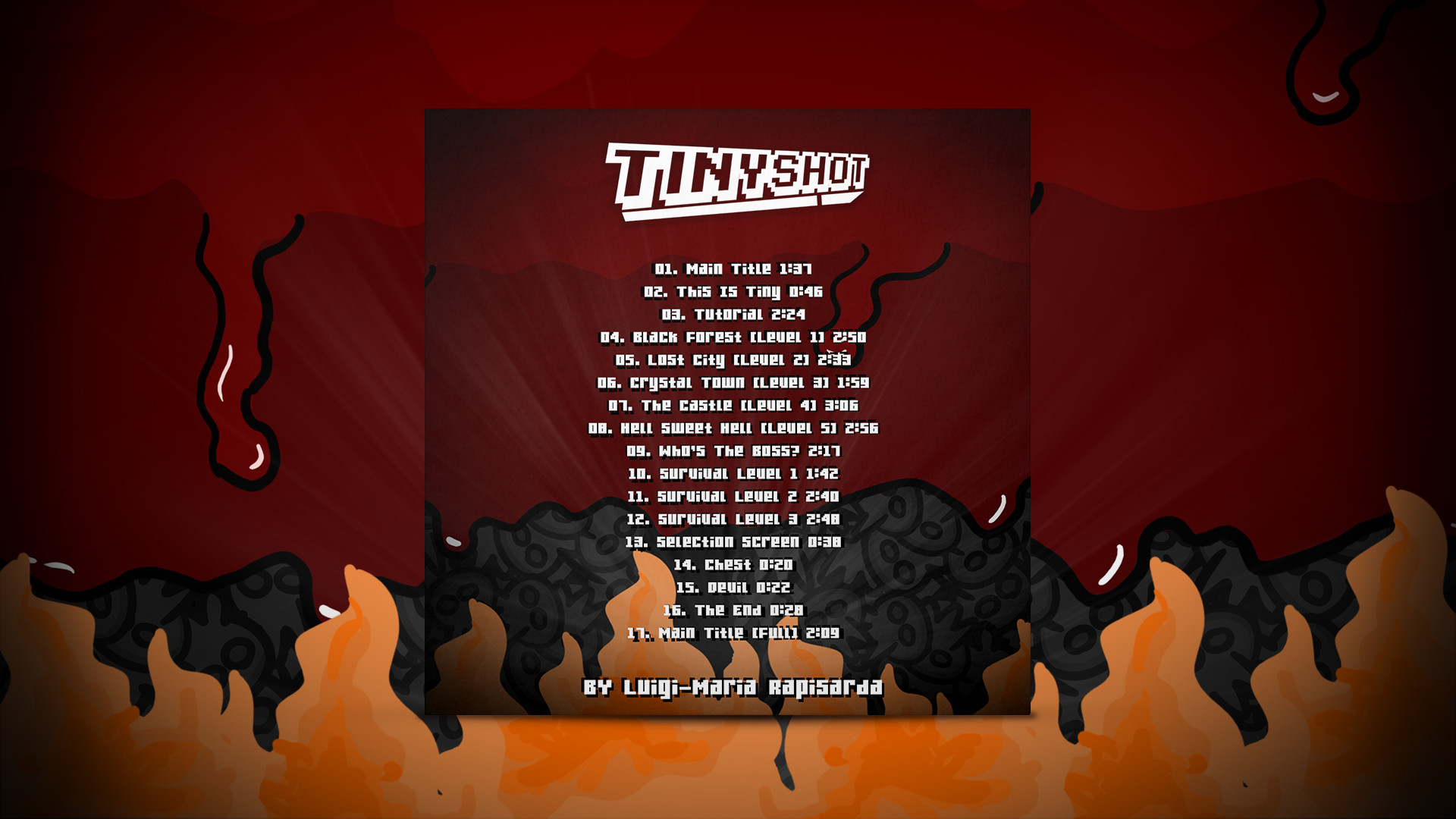Luigi-Maria Rapisarda, composer of the TinyShot soundtrack:"A fairy tale, a hero, the devil, his little minions and a marvelous story. Loud, glowing colors and a little hero who is battling through all of it to reach his treasure.An opera garbed in retro! Inspired by the grand masters of 16bit classics of the past years, the soundtrack for TinyShot came to life."