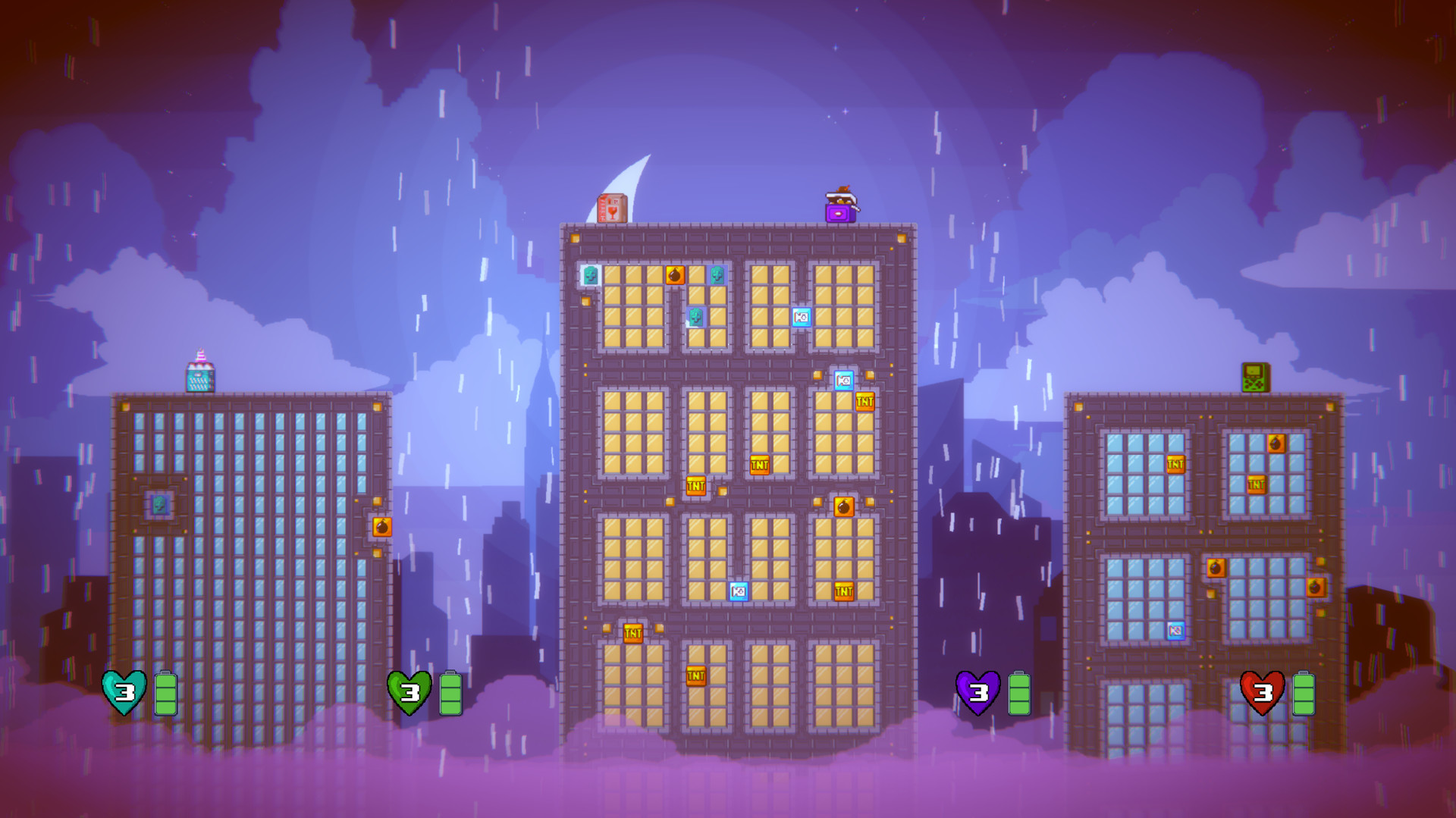 Smash Crates is a local/online fighting game of pure chaos. BUILD, DESTROY and MANIPULATE the battlefield to your advantage. Fight for glory with up to 4 friends as the Crates of myth and legend. Be there and be square!Key Features. 2 to 4 player battles locally or online using Remote Play. No Single Player. 3 Game modes: Battle Mode, Survival Mode and Zone Control Character Customisation 20 Completely destructible maps layouts Terrain manipulating power ups Great soundtrackBATTLE WITH FRIENDS. Battle with up to 4 friends.CHARACTER CUSTOMISATION. Show off your style with your hat selection.DESTROY EVERYTHING. Destroy the terrain to sculpt the battle field to your advantage.BUILD TO SURVIVE. As the battlefield shrinks build and defend your territory. Creators: Game Designer: Julian BeiboerPixel Artists: Jessica Lyon Animator: Jackie Cai Music Composer: Mikey O'Neil Далее