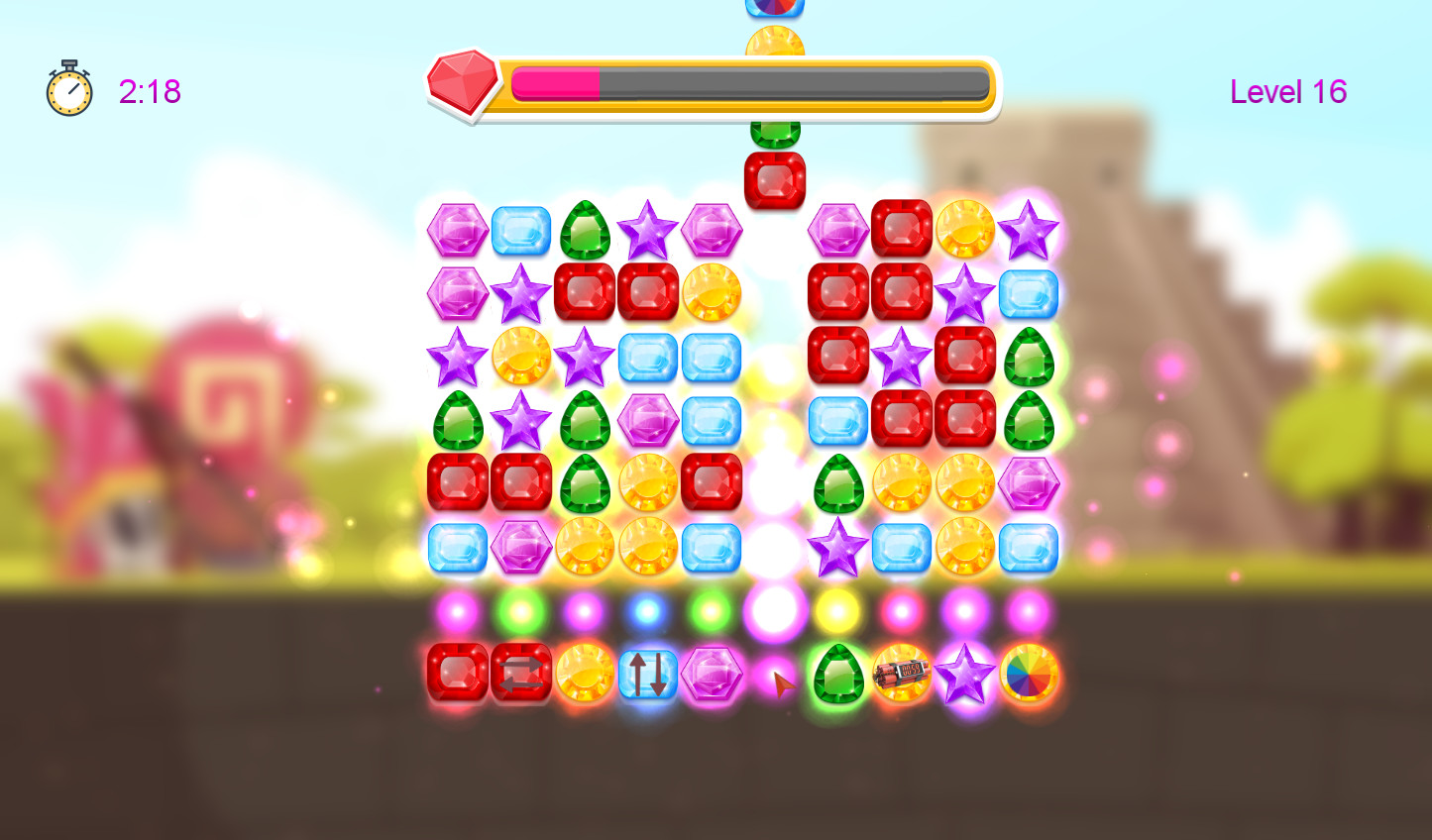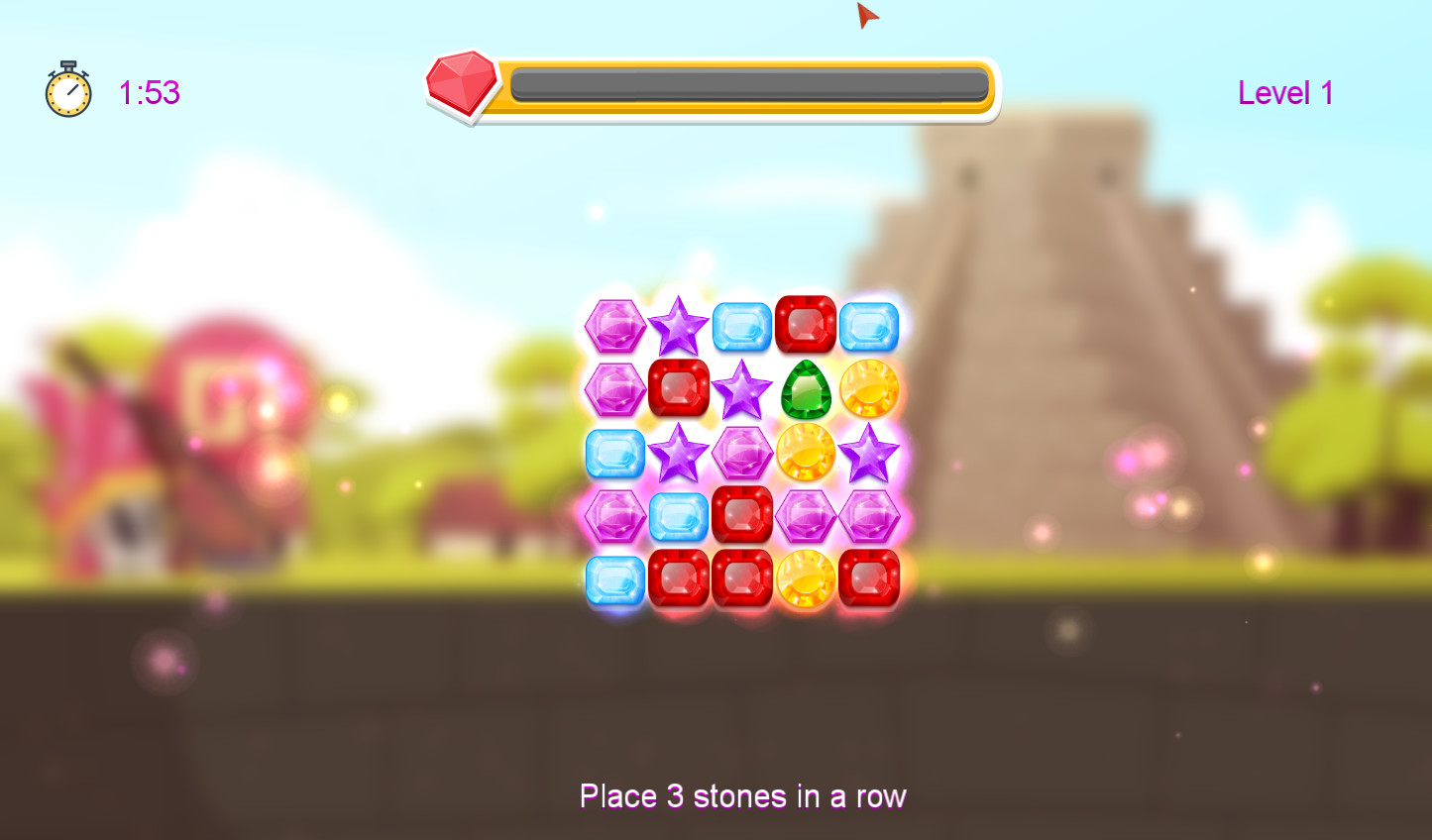 Maya Treasures - игра в известном жанре "три-в-ряд", выполненная в яркой рисованной графике.В этой игре есть 30 уровней, которые необходимо проходить набирая очки за счёт соединения драгоценностей в ряды из трёх и более одинаковых камней. Также, в ней присутствуют бустеры(динамит, самоцвет, убирание целого ряда), которые можно активировать, собрав с ними комбинацию. Они заметно ускорят набор очков на уровнях, ведь время надо ценить, оно ограничено. Далее