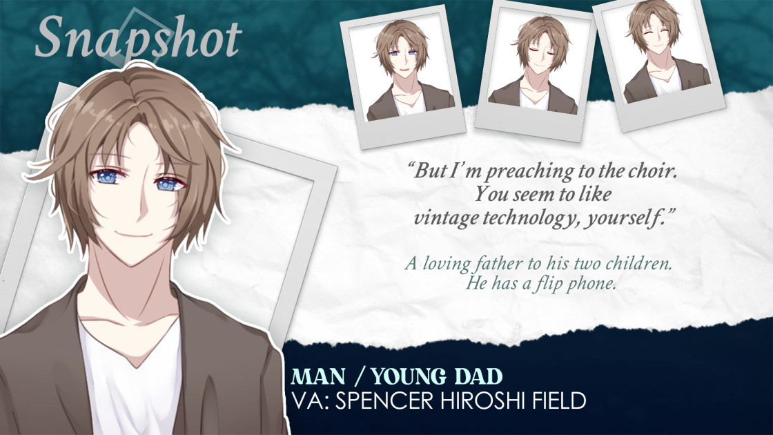 Based on a short story of the same name. This free short kinetic visual novel was developed for Magical Girl Game Jam 3. The heiress of an ancient magical family uses a special camera to uncover the past — both of history, and of herself.Scope. Kinetic novel — no routescoming of age, philosophical, science fantasy~7500 wordsSeven depicted characters — bust-up sprites, full voiceoverCast. Kelly GreenshieldNarrator / Defunct MagicianJames HallidayCambridge Student / British HipsterSpencer Hiroshi FieldMan / Young DadbunnyhoodieWoman / Young MomJenna LongBoy and Girl / Small KidsJosh PortilloEscort / Balding ScientistTeam. Madeleine ChaiProducer & Project ManagerTim MinDirector & WriterJustin HsuArtistic Consultant & Background ArtistEric LiTechnical Consultant & Supplemental ArtistLoiLoiSprite Artist & Character DesignerMadScientistGUI Designer & GUI ProgrammerMusic. Special thanks to Kevin MacLeod.Engine. Made with Ren'Py. Далее