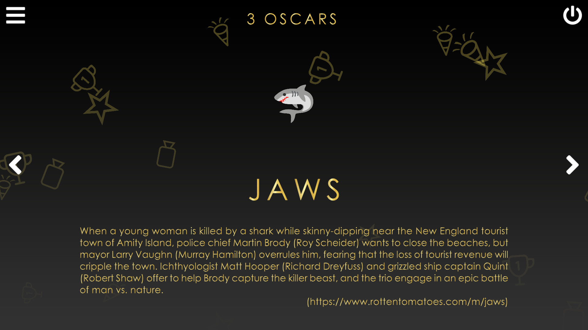 Test your deduction skills and your cinema knowledge. See plot summary of the movies. Some filmemojis are hard to guess. Features: 100 handcrafted filmemojis of a Oscar winner to guess. Has at least one film per Oscar's year. Type the answer with keyboard or click in buttons with mouse. Plot summary of the movies. It's pretty hard to guess alone all filmemojis. Has hidden achievments..