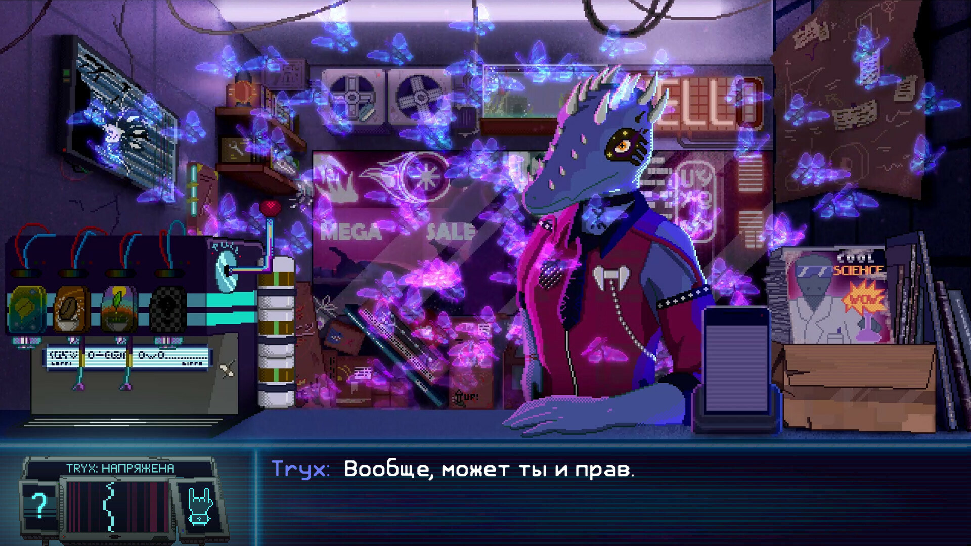 Dynopunk — это ироничное приключение в эстетике киберпанка в мире, где место людей заняли динозавры. Вам предстоит управлять ремонтной мастерской: чинить технику, искать подход к разным клиентам, беседуя с ними по душам и угощая напитками, — и одновременно разбираться с личными проблемами и пытаться осуществить свою мечту.Представьте, что на Землю так и не упал метеорит, динозавры не вымерли, а продолжили развиваться. Сейчас, спустя миллионы лет, они живут в высокотехнологичных мегаполисах. В том числе Крис, владелец ремонтной мастерской, который мечтает построить машину времени, чтобы вернуться впрошлое и найти свою любовь. Ведь он — последний тираннозавр в этом мире!Киберпанк с динозаврамиЛюбуйтесь пиксельной графикой в стиле ретро-игр 1990-х годов. Знакомьтесь с героями из альтернативного будущего, где миром правят хищные и травоядные динозавры. Продвигайтесь по сюжету под расслабляющие lo-fi треки, принимая множество решений, влияющих на повествование.Ремонтируйте техникуЗадайте нужные вопросы клиентам, чтобы выяснить причину неисправности, а затем устраните ее. Будьте внимательны и аккуратны, ведь от этого зависит ваша прибыль.Общайтесь с посетителямиПоговорите с клиентами по душам и предложите им напиток, исходя из их предпочтений. Стакан прохладной газировки или чашечка горячего кофе могут увеличить ваш шанс на достойные чаевые.Следуйте за мечтойВаш герой — последний тираннозавр на планете, поэтому он стремится построить машину времени, чтобы вернуться в прошлое и найти свою любовь. Удастся ли ему воплотить мечту?В Dynopunk вас ждут:Разветвленный сюжет, на развитие которого влияет не только общение с клиентами, но и качество вашей работы в мастерской.Обмен любезностями с необычным помощником, говорящим принтером, который так и норовит подколоть вас на тему маленьких лапок и дать парочку вредных советов по ведению бизнеса.Симулятор подачи напитков, от которых зависит не только настроение клиентов, но и чаевые.Оригинальный lo-fi саундтрек, пропитанный духом 80-х! Налейте себе чашечку горячего чая, устройтесь поудобнее и позвольте себе отдохнуть, погружаясь в сюжет.Знакомство со множеством героев, приходящих в мастерскую. У каждого из них уникальный характер, мечты и история, на которую вы можете повлиять своими решениями.Ироничные диалоги, море шуток, отсылок и пасхалок для поднятия настроения!Пиксельная графика в стиле ретро-игр 1990-х годов. Далее