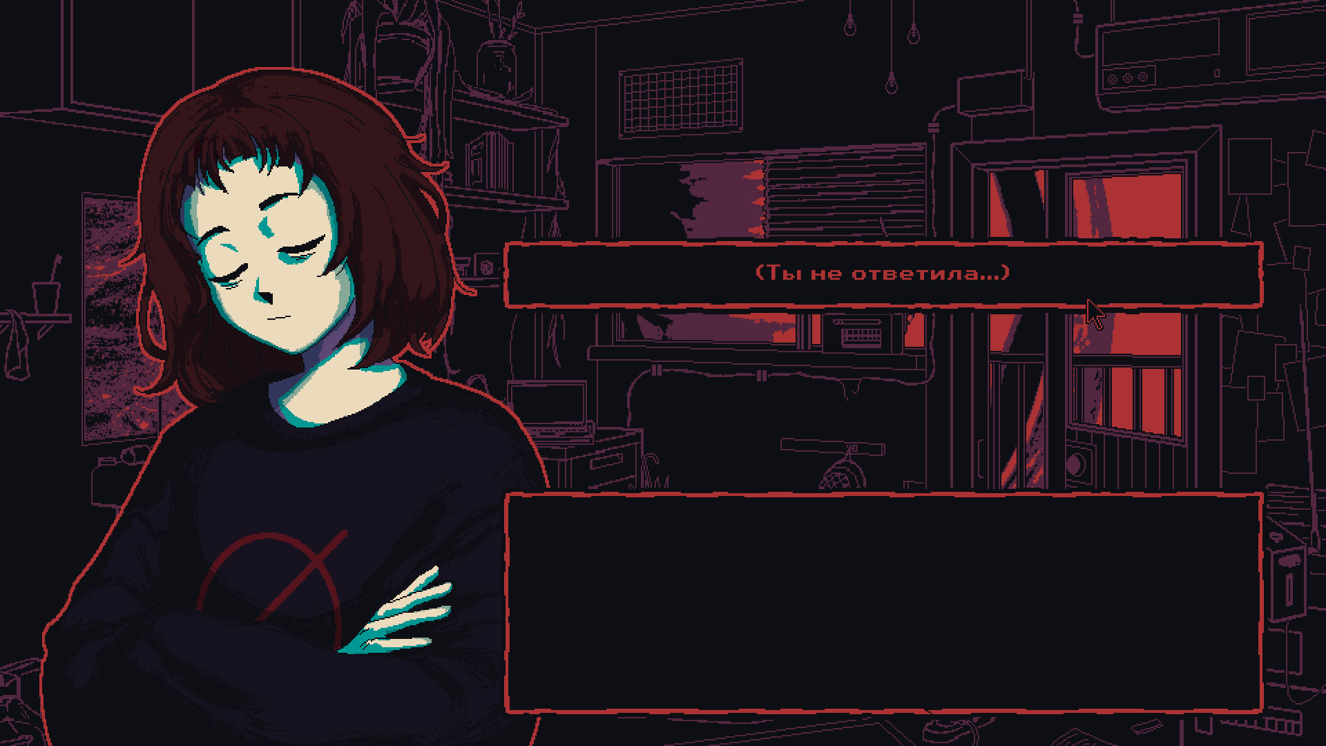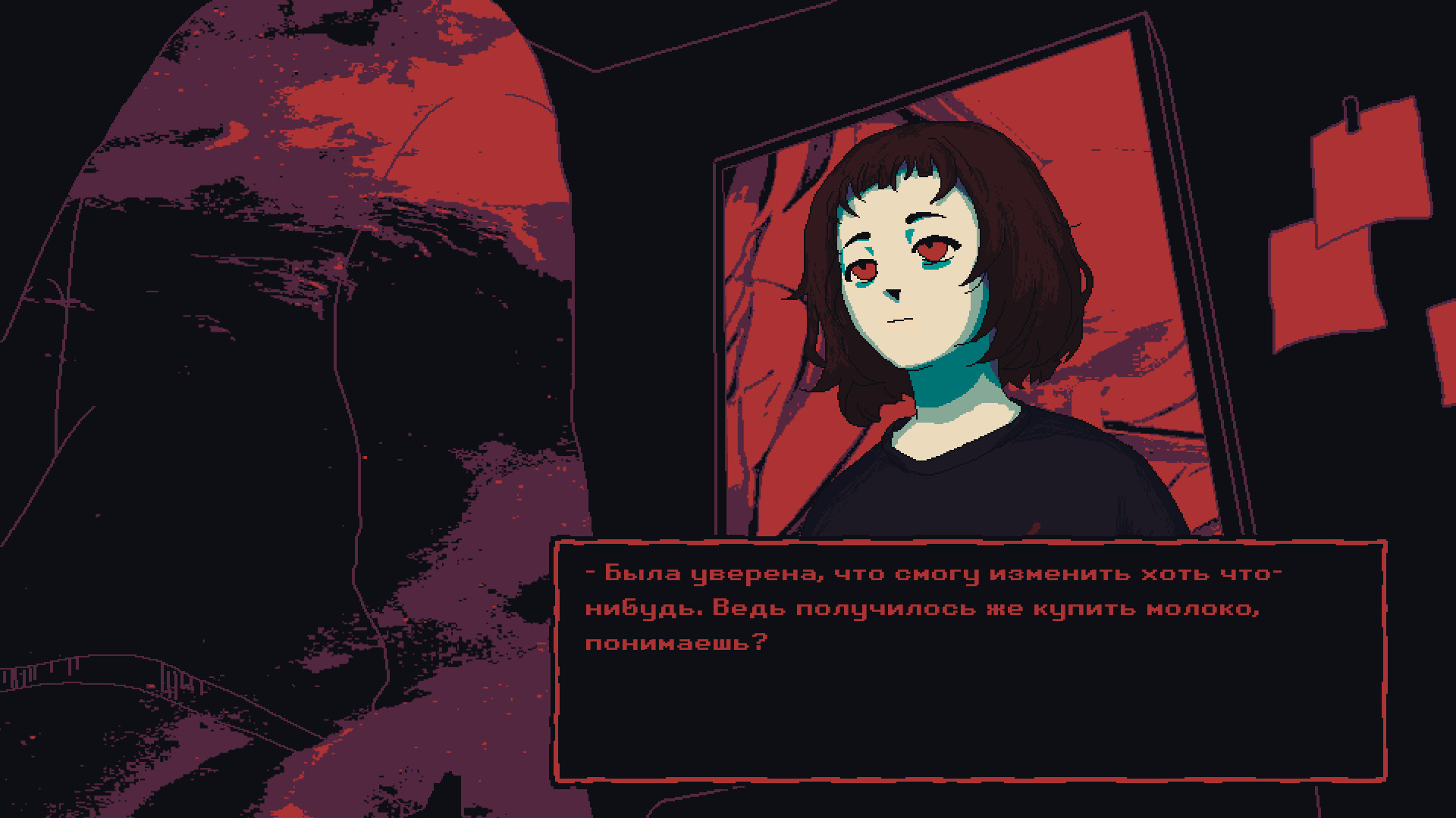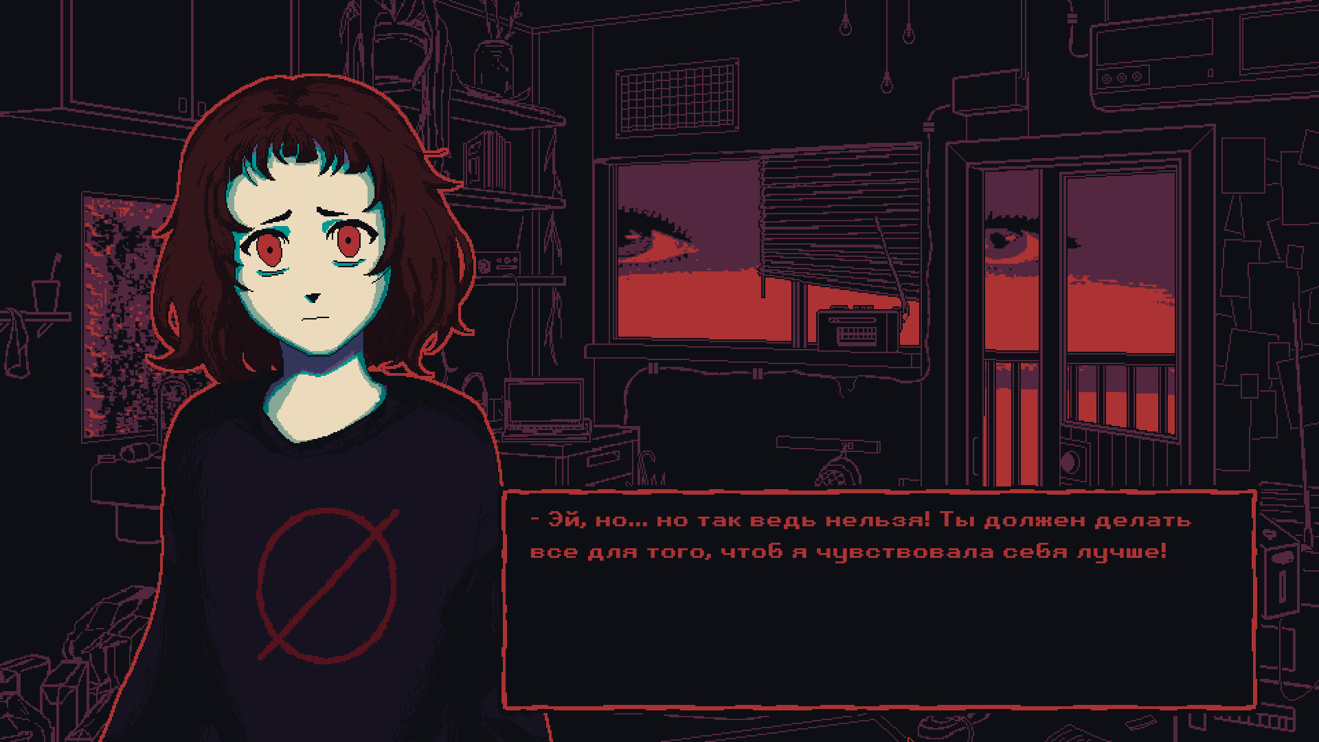 (Как ты себя чувствуешь?)- Я определенно себя чувствую. Иногда большего и не надо.(И все же, тебе тревожно. Я прав?) - Разумеется. Более того - я в абсолютном ужасе. Но разве это так заметно?(Ты смотришь куда угодно, но не вверх.) - Ах, это…- Я ведь тебе рассказывала, верно?(О чем?) - Да так, пустяки.(Разве могут пустяки вызывать ужас?) - Это… сложно описать.Я взбираюсь на металлические перила и свешиваю ноги вниз. Один за другим бросаю в бездну короткие взгляды - та отвечает мне рассерженным ледяным дыханием. Так мы и общаемся. Будто старинные друзья.- Иногда мне кажется, что весь мир притворяется ненормальным.- Он будто бы… будто бы хочет убедить меня в чем-то, чего на самом деле нет.(Странно, не находишь?)Эта игра является прямым продолжением Milk inside a bag of milk inside a bag of milk.События игры начинаются сразу после окончания Milk inside a bag of milk inside a bag of milk.ОСОБЕННОСТИ ИГРЫ: Психоделичный нарратив, полный пирамидальных словесных конструкций.Стилизованная пиксельная графика, отражающая искаженное восприятие мира главной героиней.Высокая вариативность: каждое прохождение уникально. При этом некоторые реплики, изображения и сцены имеют лишь небольшой шанс на появление. Вам придется по-настоящему сблизиться с героиней, чтобы узнать все, что она скрывает.Гнетущий и вязкий саундтрек.УПРАВЛЕНИЕ:ESC - меню паузыF - полный экран/оконный режим Далее