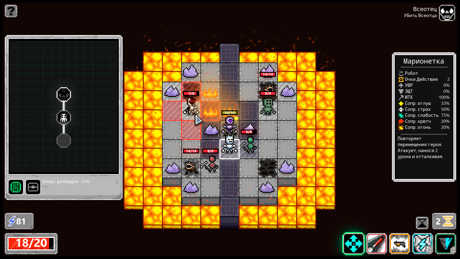 Мега корпорация восстановила проект по постройке запрещенного искусственного интеллекта "Всеотец". Тем самым, спровоцировав начало третей мировой войны. Вы выступаете за сверхтехнологичного киборга - Thermonuclear, созданного для противодействия во много раз превосходящего по силе врагу. Выполняйте стратегически важные задания, прокачивайте героя, открывайте новые навыки и артефакты, чтобы добраться до Всеотца и закончить войну.Ключевые особенности: * Влияние окружения: Выстраивайте свою тактику на основе окружения. Вытолкните противника в пропасть или воду, подожгите траву или потушите своего персонажа встав в лужу. Взрывайте бочки, скользите по льду чтобы сэкономить очки действия. Получите максимальную выгоду.* Разнообразные билды: Комбинируйте умения четырёх типов, артефакты, расходники и шрамы для прохождения миссий с различными условиями. Нужно находить компромисс между универсальными навыками и точечными инструменты против конкретных врагов.* Генерируемые задания: Выполняйте миссии в четырех точках по всему миру, наполненных различными противниками. От разрушенных городов, заполненных мутантами, до военных заводов, охраняемых солдатами и роботами. На каждой локации ценны разные характеристики. Далее