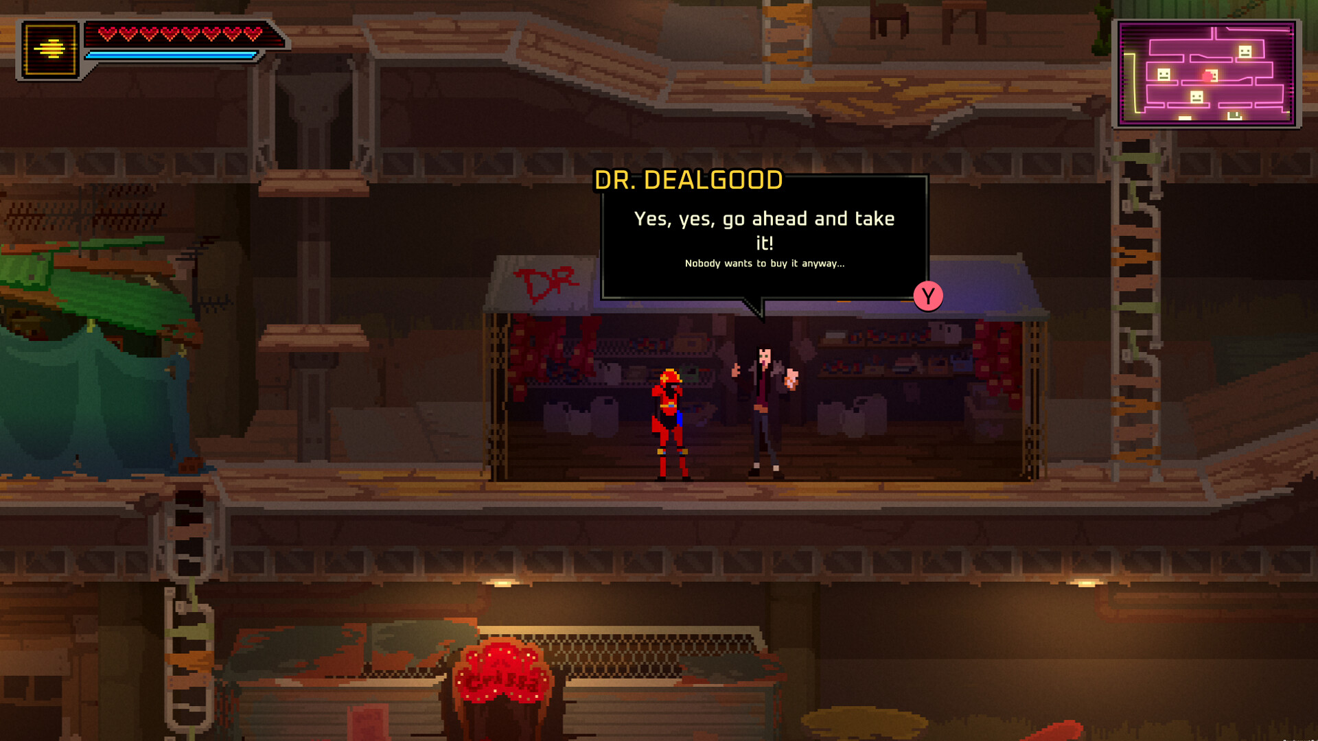 A BMX-powered pixel-art Metroidvania gore-fest based on the film Turbo Kid.You play as a lone warrior on a quest to cross a Wasteland riddled with scoundrels and creeps who you'll have to go through - literally - in order to survive. Run, crawl, jump, hang, and, for the very first time in a Metroidvania (don't research this), bike your way through the world! Ladies and gentlemen, we give you the height of human-powered transport technology: the all-terrain Bike! Your trusty BMX is one touch of a button away at any time. Move around the map faster, access new areas, launch it at enemies, and perform sick bike tricks to gain bonuses.Hack and slash your enemies with the obligatory machete or shoot them with the Kid's choc-full-of-mayhem Turbo Glove™. Turbo Blast, Electric Shocks, circular saws… use the array of weapons at your disposal to slash, rip apart, or explode enemies into hysterical and over-the-top splashes of gore!Our story begins immediately after the movie ends. On your journey, you will meet weirdos and oddballs, some friends, some foes, and some in-between, who will offer advice, quests, fights, and jokes (lots of jokes) in a heartfelt and hysterical story created in collaboration with the filmmakers behind the movie.Explore the different zones and defeat bosses in the order you see fit, make choices that will affect the course of the story, allowing for multiple playthroughs with different paths and outcomes.If you don't care about the story and you're only in it for the gameplay (speedrun afficionados, we're looking at you), all the dialogue is skippable.Many cutscenes can simply be ignored if you don't wish to interact with them. Далее