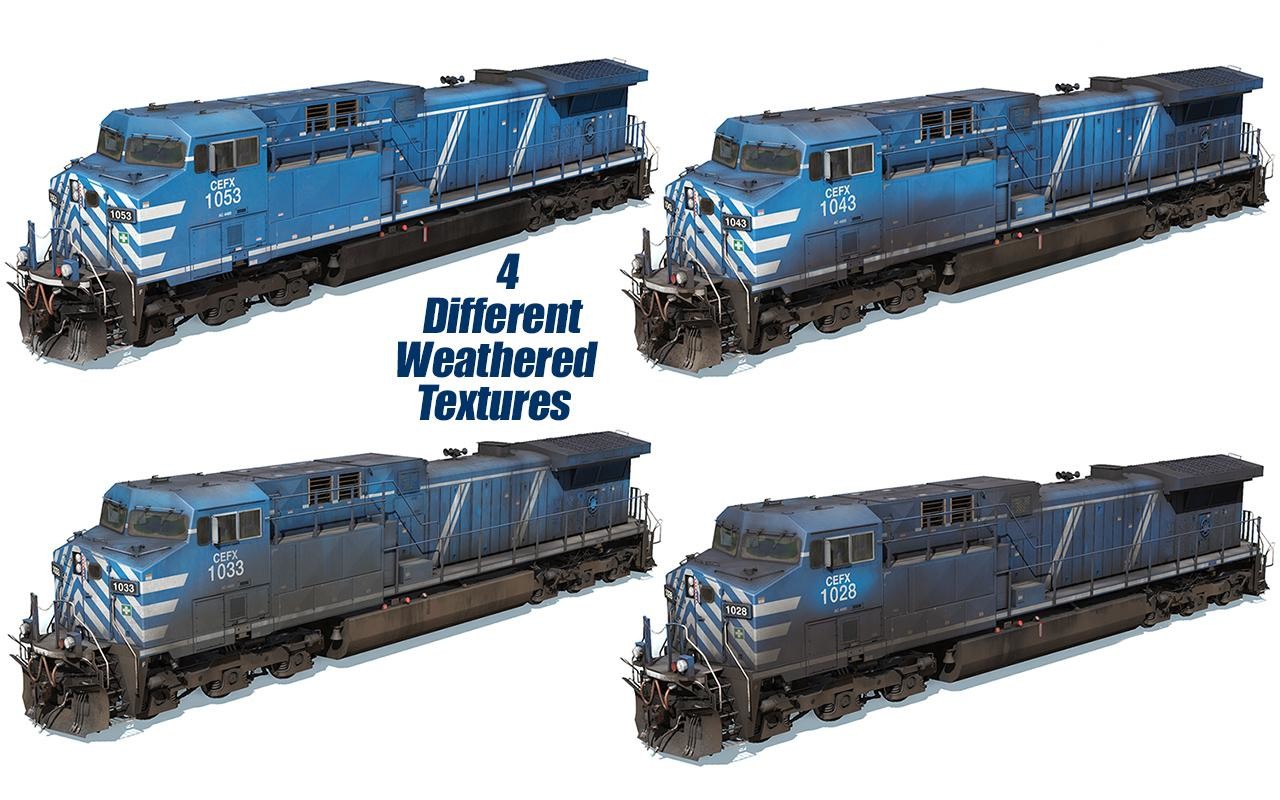 The 1026-1059 Series was delivered to CIT Group/Capital Finance between the years of 2004/2005. This delivery was based on the specifications very last CP AC4400CW order from GE. This model is a representation of this series between the years 2010 to current with the repainted simplified no beaver paint scheme. Cabs are exactly created to prototype. Features… 4 different skins Realistic Specular/normal map texture effects Air Hoses and MU Cables Functioning and interactive computer screen...The 1026-1059 Series was delivered to CIT Group/Capital Finance between the years of 2004/2005. This delivery was based on the specifications very last CP AC4400CW order from GE. This model is a representation of this series between the years 2010 to current with the repainted simplified no beaver paint scheme. Cabs are exactly created to prototype. Features… 4 different skins Realistic Specular/normal map texture effects Air Hoses and MU Cables Functioning and interactive computer screen Functioning dynamic brakes Auto Running Numbers Road specific highly detailed cab view Scripted cab functions Realistic in-cab sounds Openable engine compartment doors, Openable Front and Rear cab doors, Highest qualify GE 7FDL engine sound recording in TrainzДалее