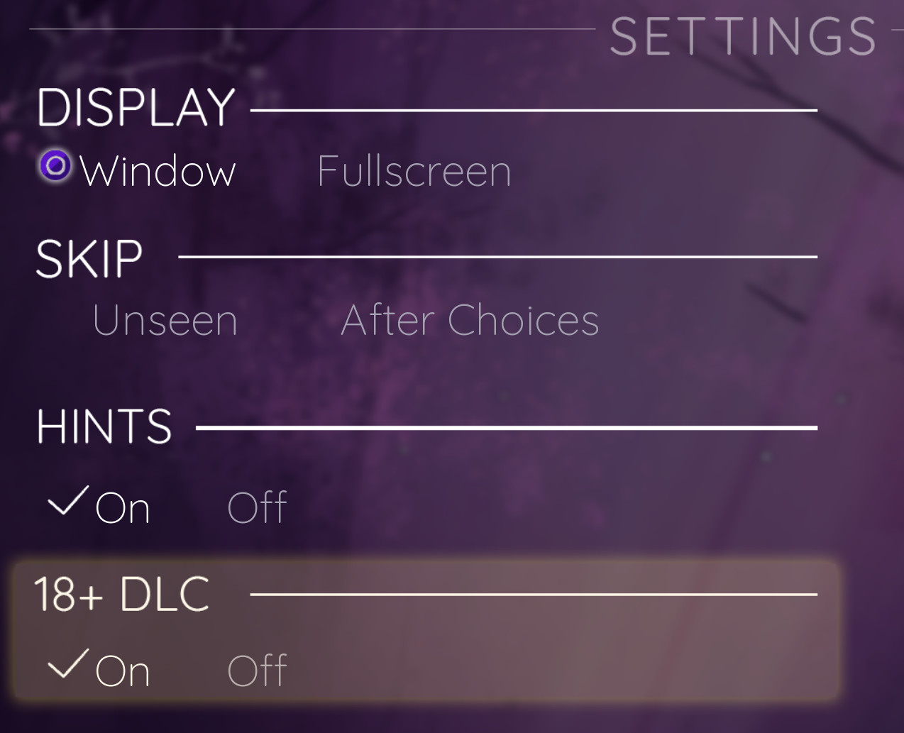 Unlocks optional 18+ adult-only content which consists of 4 uncensored scenes of depictions of consensual, realistic sexual acts among adult women characters.