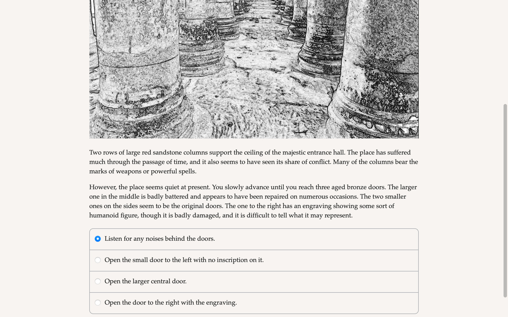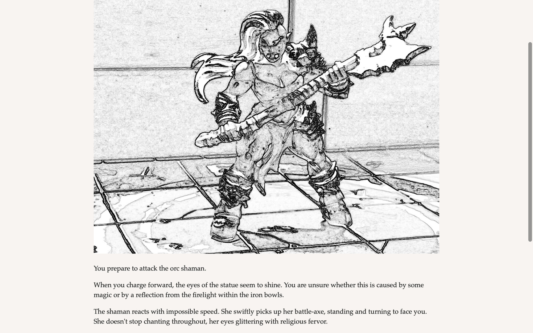 The orc tribes of Icepeak Mountains are threatening human settlements. Do you have the courage and determination to defeat their clans? Try to survive deadly dungeons and level up as an adventurer.Raiders of the Icepeak Mountains is a 140,000 word interactive gamebook by Adrao, where a combination of your choices and the roll of dice will determine your destiny. The game is text-based, with artwork allowing you the chance to actually see the exotic locations and dungeons you will visit on your journey.You will start as a novice adventurer, either a fighter, cleric, wizard or rogue, and level up through a series of quests, either those related to the main story of the game, or other side adventures. The dungeons you will visit have some element of randomness to them, ensuring that even if you play multiple times you will still discover some new secret rooms and monsters. You will have to carefully choose between the abilities and spells at your disposal, and manage well the treasure you loot to buy a variety of objects that can help you in your quests. A gamebook similar to those written in the 1980s and 1990s. A dice-based RPG with Roguelike elements. No two games will be the same. Detailed branching narrative system. Play as male, female, or nonbinary. Choose from among several romance options. Four character classes to choose from: fighter, wizard, cleric or rogue. Over 30 different spells to choose from. Will you use a vampiric ray to absorb the energy of your enemies and heal yourself, or the invisibility spell to pass by them without being noticed? Multiple types of melee attacks and abilities to use. Cripple your enemies with powerful blows, or adopt a defence stance. Dozens of magic objects to use, from magic weapons to potions or scrolls. Hordes of enemies to fight, each with their own characteristics and weak points. Will you manage to defeat orc warlords, overcome powerful elementals, and slay mighty dragons? Several illustrations to enhance your experience. Try several different difficulty settings. Play as a mighty invincible hero, or struggle to defeat the game on the harder modes. What is the maximum score you can reach? Далее