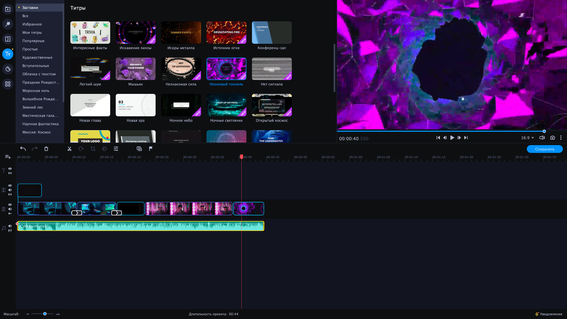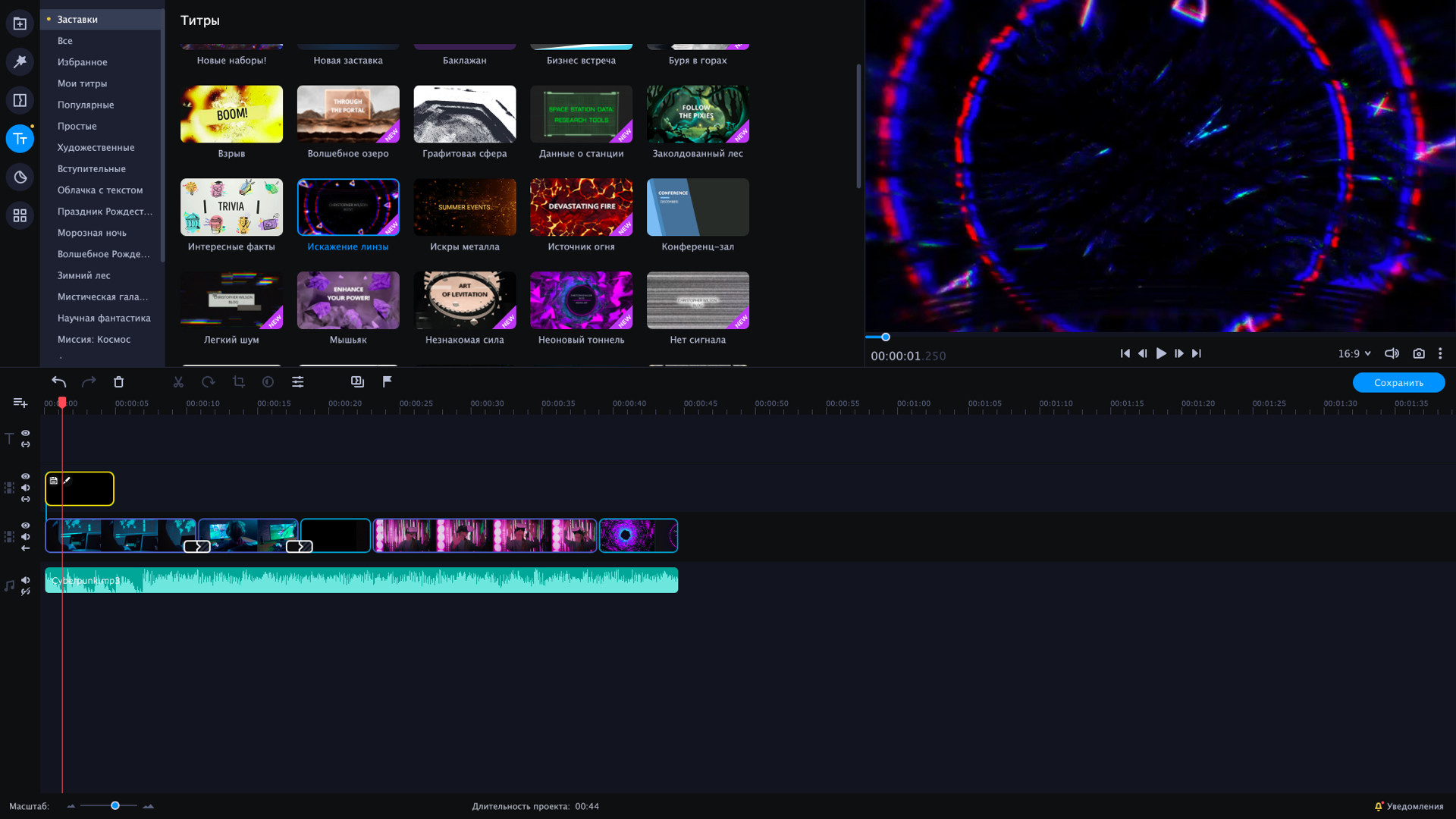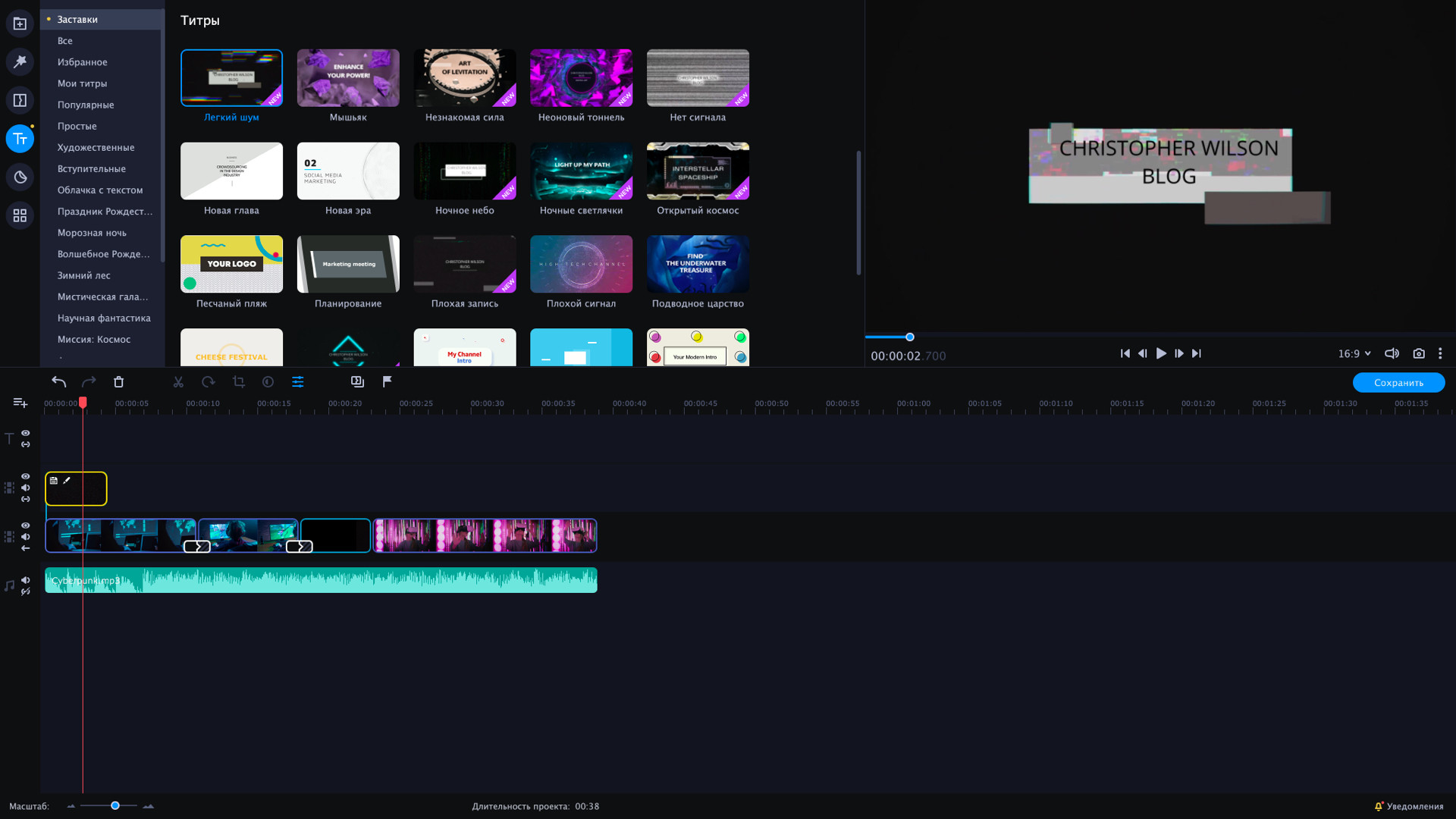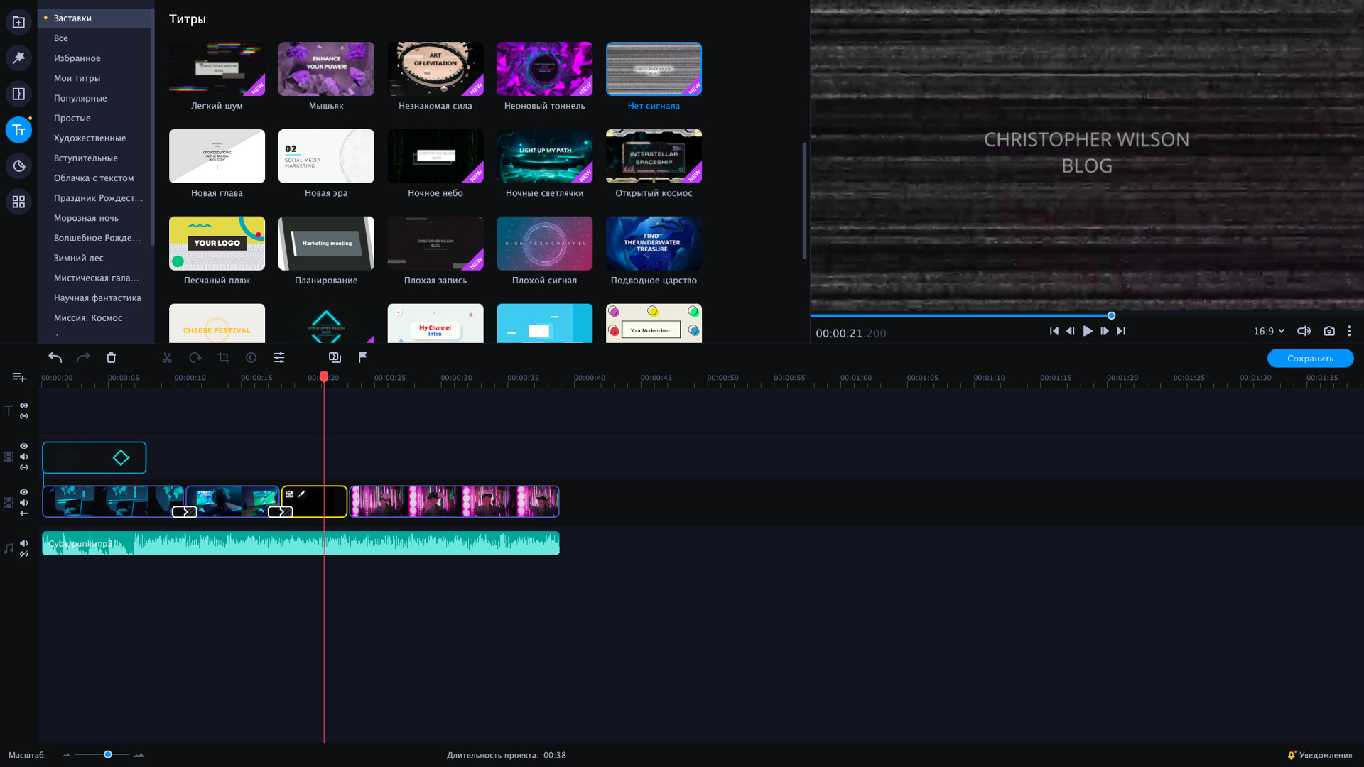 Добро пожаловать в Матрицу. Интро в стиле киберпанк превратят ваш клип в фантастический фильм. Исследуйте новую реальность с набором заставок VHS. Динамичные переходы создадут новую реальность и привлекут внимание зрителей. В наборе 8 видеозаставок. Этот DLC набор совместим с Movavi Video Suite 2022 Steam Edition. Далее