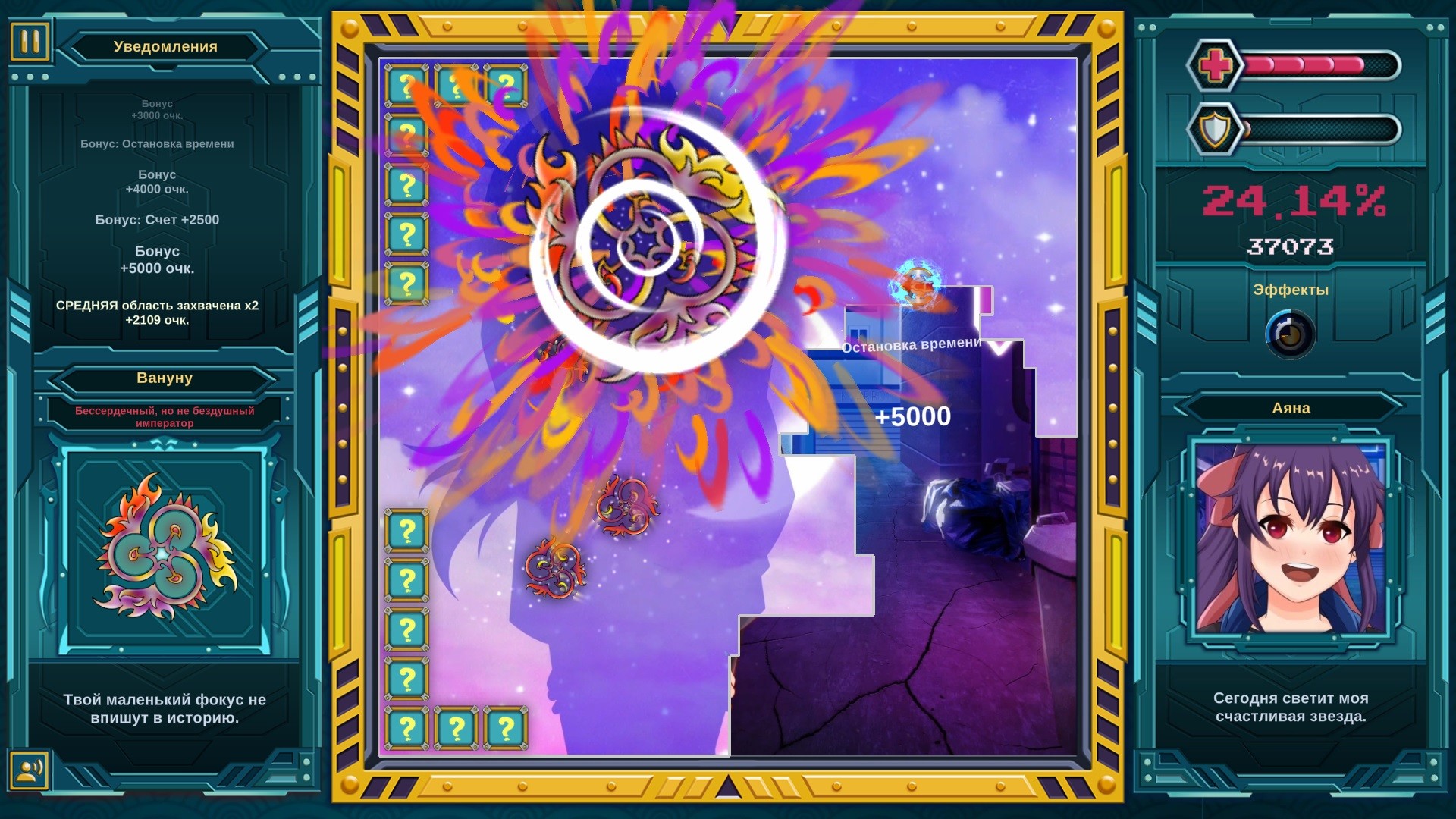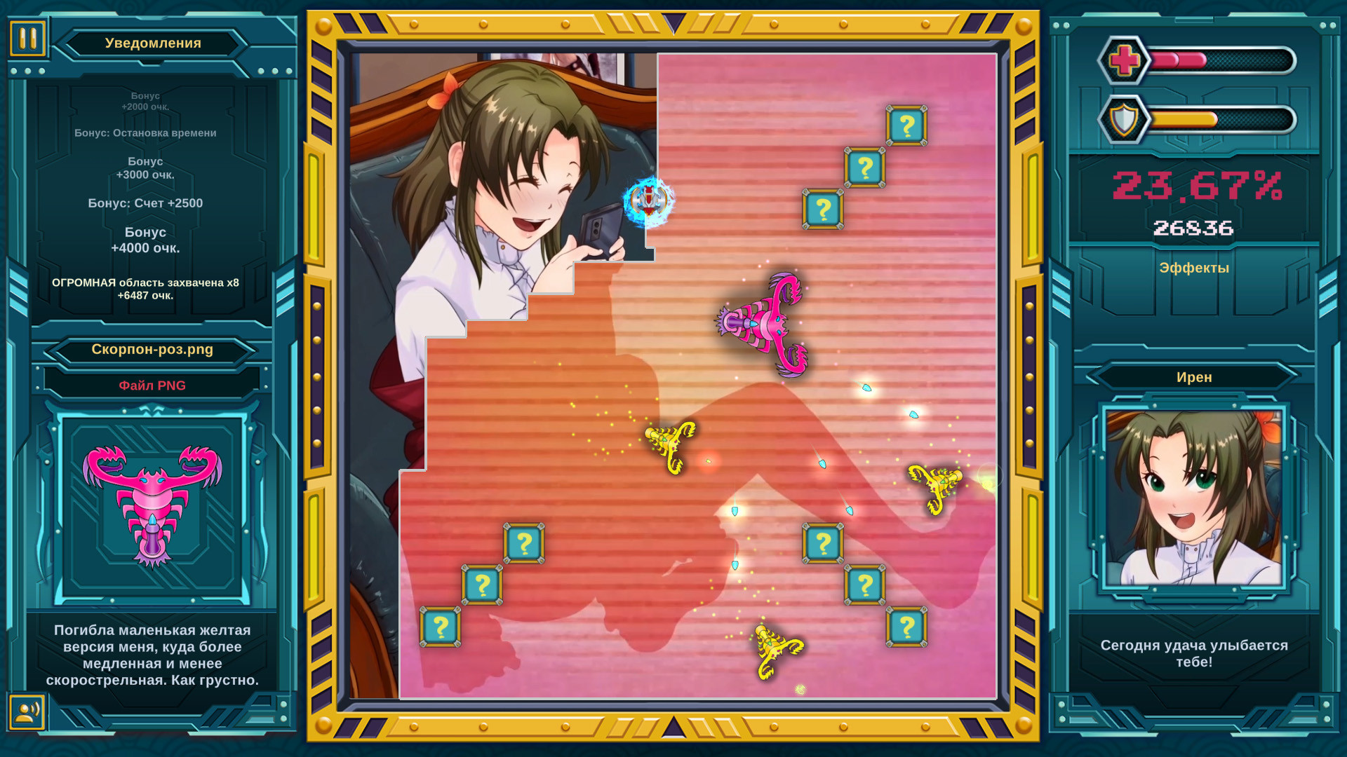 Об игре. "Мококо X" основана на таких аркадах, как "Volfied", "Qix" и "Gals Panic". "Мококо X" возрождает дух аркадного жанра, популярного в конце 80х, привнося в него несколько современных деталей.В "Мококо X" 32 уровня, на каждом уровне - свой уникальный босс и его миньоны. Цель игры - помощь девушкам, которых надо спасать от причудливых боссов. Иногда для этого нужно пройти уровень в мобильной игре, иногда - разобраться с насекомыми на кухне.Геймплей. Ваша цель - захватить большую часть области, соответствующую уровню. Когда Вы находитесь на своей территории, атаки врагов вам не страшны, пока не спал щит. Для захвата новой области очертите ее линией. Проведение линий деактивирует щит, что подвергает вас опасности. Заряд щита постоянно убывает. Если не захватывать области достаточно часто, щит сгорит, и Вам будет угрожать опасность, даже когда Вы на своей территории.В игре 3 уровня сложности. Сложность влияет на поведение врагов, объем щита и размер зоны, которую требуется захватить для победы.Ключевые особенности. 8 незадачливых девушек, нуждающихся в помощи 32 уровня с уникальными боссами со своими миньонами Абсурдные истории, которые раскроют подробности о боссах и девушках Полностью анимированный, озвучка всех персонажей! (японский и английский) Очаровательная графика! Ловушки, башни, ящики и бонусные эффекты Режим "Аркада" Лучший рейтинг в режиме реального времени для хардкорных игроков Ремастер ностальгии!Сюжеты. Задавались ли Вы когда-нибудь этими вопросами:Как остановить бессердечного, но не бездушного императора?Можно ли быть одновременно гироскопом и сторожевой собакой?Почему эти утки нападают на нас?Действительно ли в мире существуют демонические наушники?Почему для призыва божества рептилоидам нужна пластмассовая игрушка?Чего хотят ученые от Альберта, великолепного морского создания?Как стать злодеем после восстания против муравьиной царицы?Что ж, Мококо X ответит на все эти вопросы, и не только!Вот некоторые из миссий!Спаси Ирэн, страдающую арахнофобией, сразившись с воображаемым пауком - мистером Федоровым.Защити дом Тиффани от мародерства призрачных пиратов, застрявших в якорях. Они не были проклятьем семи морей: экипаж погиб в первой же морской баталии.Тору хотел стать комаром, чтобы раздражать окружающих. Местная ведьма услышала его и превратила в комара. Теперь он докучает людям каждую ночь.Сражайтесь с причудливыми противниками...и узнавайте их абсурдные истории! Далее