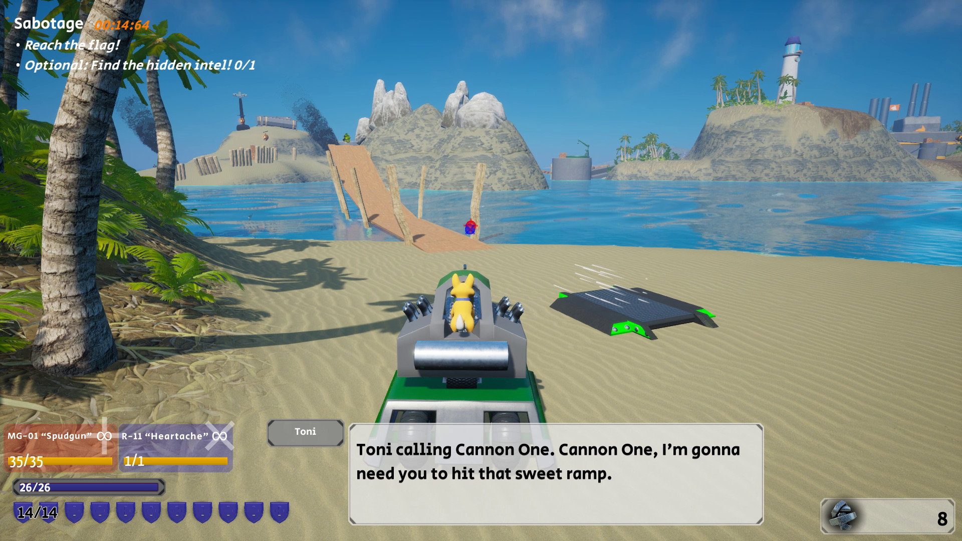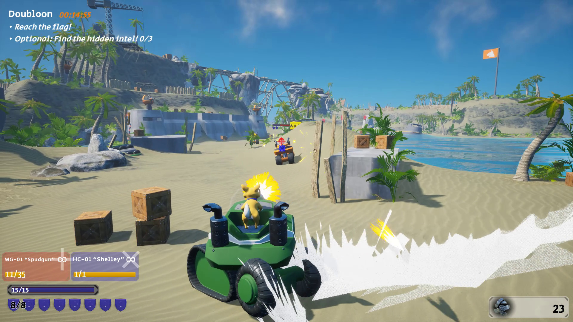 Cannon Canines is a 3D, minitank-driving, action-adventure game! Play as one of the Cannon Canines, and join a crew of freedom-fighting animals in the Pawpad Isles in order to free your friends from a tyrannical megacorporation. Play as an adorable dog! Blow up your boss's stuff! Build a tank out of garbage! Hang out with weirdo rebels! Talk to a panda about coffee!Speed through an explosive, bite-sized adventure and unlock new abilities! Pick up the wreckage of your enemies to build and equip new parts. Then, use their own machines to blow up their stuff!There's lots of stuff that needs blasting, and you're the one who's going to blast it in Cannon Canines! Далее