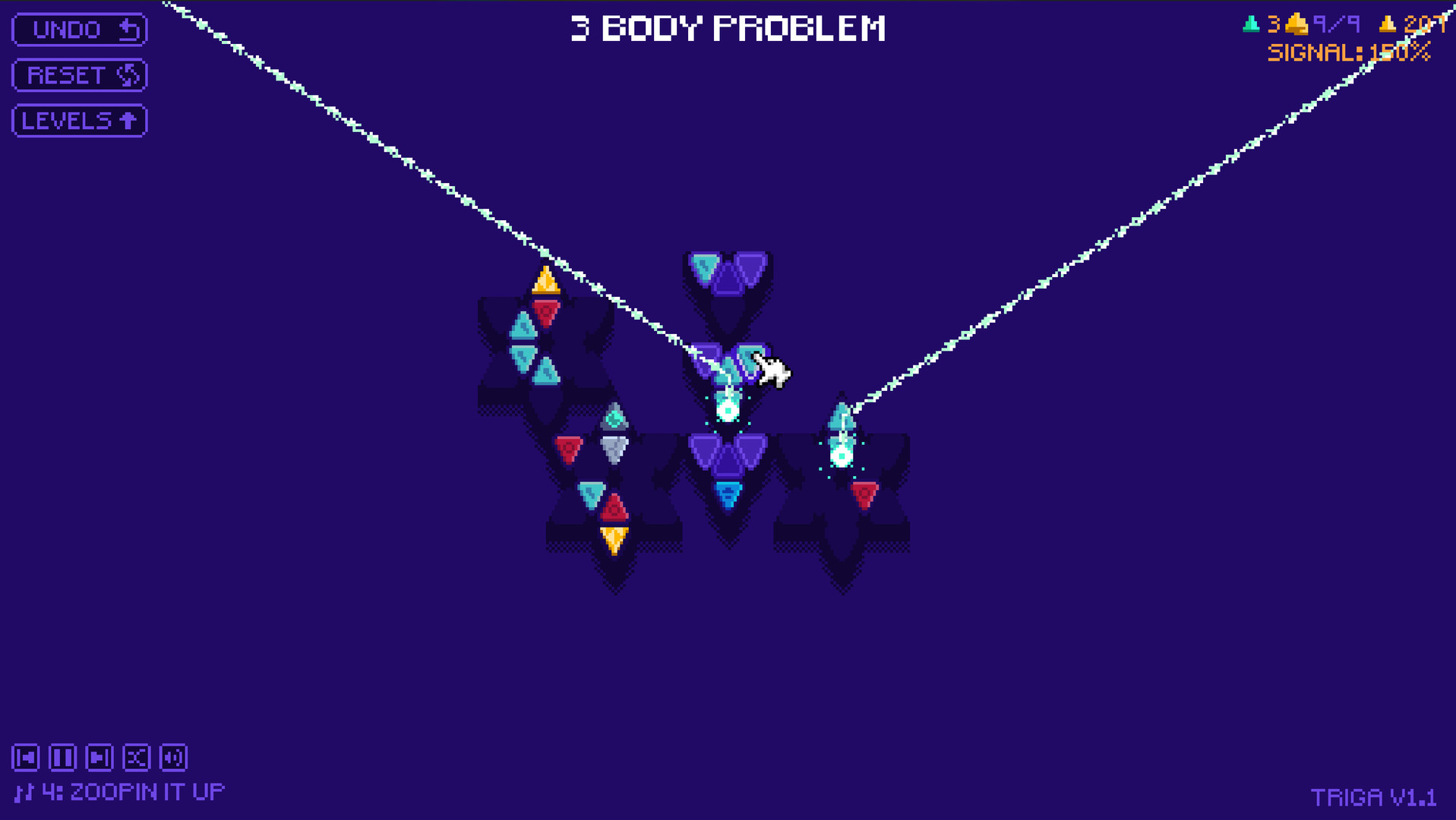 Triga is a funky, out of this world, short and sweet puzzle experience for everyone from casual thinkists looking for a bit of fun, to extreme puzzlists looking for a challenge. The game is go at your own pace and beat with your own style: If you get stuck on a puzzle, you can simply leave and come back later, or continue to advance through other levels that suit your thinky style instead!In Triga, each level has a few golden triangles. Your goal is to destroy or knock any number of them off the board (See if you can go for 100%)! You are given a set of triangular tools, each type has a unique effect when placed on the board such as causing a destructive explosion or pushing adjacent tiles away. Try to create chain reactions in order to pull off more complex maneuvers. It is not as easy as it sounds though, as the triangular board spaces make for some interesting and unexpected motion, and obstacles abound in each increasingly difficult level!Triga is part of the CosmOS 9 bundle. Далее