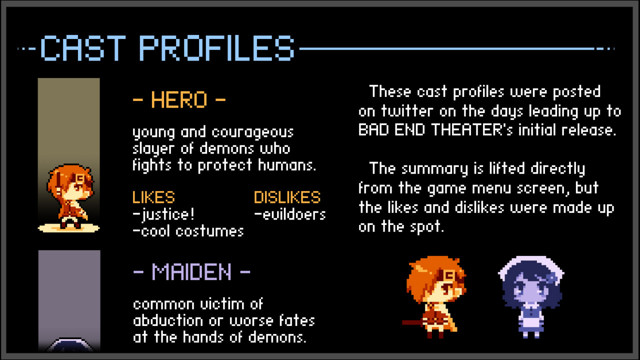 this is the digital art collection for BAD END THEATER!32 page pdf includes:all in-game artworkconcept artrough sketchesadditional drawingsdeveloper commentary (english only)HOW TO ACCESS. right-click BAD END THEATER in your steam libraryManage > Browse Local Fileslook for the art collection directory